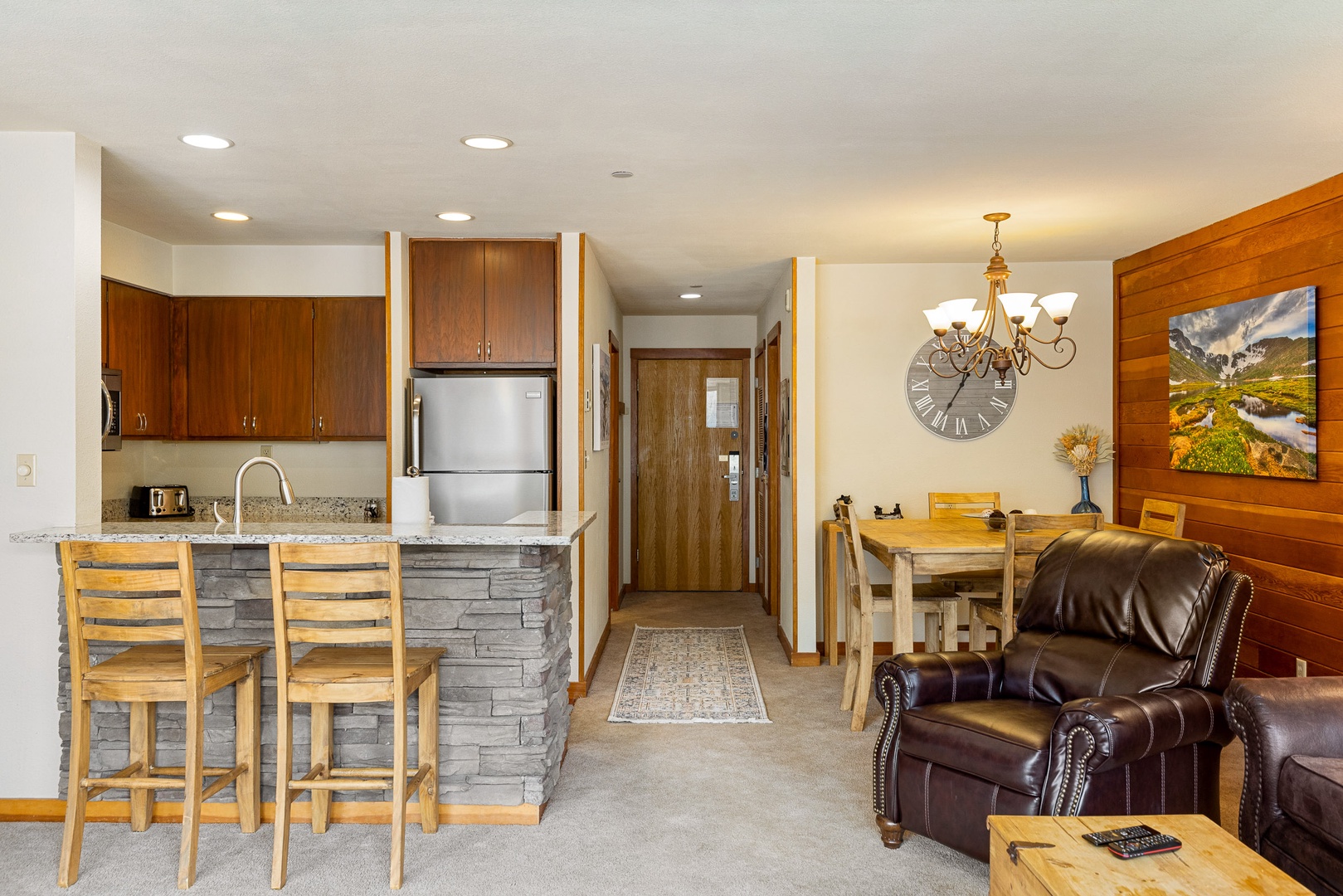 1483 Lakeside 1483 Lakeside A balcony with two wicker chairs overlooks a serene lake and a backdrop of forested mountains on a sunny day. A living room with a leather couch, armchairs, a wooden coffee table, a fireplace, and a television. Large windows provide a view of the mountains and let in natural light. Outdoor pool area featuring a large pool and a hot tub with several blue umbrellas and lounge chairs. A multi-story building with balconies is in the background, surrounded by tall trees. A tiled steam room with bench seating, recessed lighting, and a glass door. Open Gallery A balcony with two wicker chairs overlooks a serene lake and a backdrop of forested mountains on a sunny day. A living room with a leather couch, armchairs, a wooden coffee table, a fireplace, and a television. Large windows provide a view of the mountains and let in natural light. Outdoor pool area featuring a large pool and a hot tub with several blue umbrellas and lounge chairs. A multi-story building with balconies is in the background, surrounded by tall trees. A tiled steam room with bench seating, recessed lighting, and a glass door. A modern gym with various exercise machines including treadmills, stationary bikes, weight machines, and free weights, well-lit with overhead lighting. A hallway leads to a bathroom and a living room with carpeted floors, wooden trim, and a patterned rug. The living room features large windows and a seating area. Paintings adorn the walls. A living room with wood-paneled walls featuring a sofa, two armchairs, a coffee table, a lamp, a wall painting, and large windows offering a mountain view. A daybed is situated under the windows. A dining area with a wooden table and chairs under a chandelier. The room opens to a kitchen with wooden cabinets and stainless steel appliances. A large wall clock and paintings decorate the walls. A cozy living and dining area with wooden walls and furniture, leather seating, a chandelier, pictures on the wall, and large windows with a mountain view. A modern kitchen with stainless steel appliances, granite countertops, a double sink, wooden cabinets, and a tile floor. A modern kitchen with wooden cabinets, stainless steel appliances, a stone kitchen island with two wooden stools, and an adjoining living area. A hallway and bedroom are visible in the background. Open-concept living area with a kitchen and bar counter, dining table, leather recliner, and wall-mounted decor. The kitchen features wooden cabinets and stainless steel appliances. A balcony with two chairs overlooks a serene lake with a backdrop of tree-covered hills under a partly cloudy sky. A lakeside view featuring a dock with paddle boats, a sandy beach area, surrounding buildings, and a forested hill in the background under a partly cloudy sky. A sunlit room with a cushioned daybed, several pillows, large windows displaying a scenic lake and mountain view, and a stone fireplace on the right. A small lakeside town with a dock, seating area, modern buildings, and wooded hills in the background under a bright blue sky with scattered clouds. A bedroom with wooden furnishings features a bed, TV, dresser, and large windows opening to a balcony with mountain views. An adjoining room with seating is visible through an open door. A bedroom with wooden furniture, including a bed with gray bedding, a dresser with a TV, and two bedside tables. Natural light enters through two windows, and there are three doors in the room. A cozy bedroom with a large wooden bed, nightstands, a dresser with a TV, large windows, and a balcony offering mountain views. A landscape painting hangs above the bed. Scenic view of a calm lake surrounded by mountains and trees, with a fountain in the water and buildings along the shore. Paddleboats are docked near a wooden pier. A balcony with wicker chairs overlooks a canal and modern buildings under a blue sky with clouds. Inside, a wooden bed and nightstand are visible through a sliding door. A modern, multi-story building stands by a scenic lake with a dock and outdoor seating area. In the background, forested hills and a bright blue sky with scattered clouds are visible. The image shows a bathroom with a toilet, a shower-tub combo with a glass door, and a view into a sink area with wooden cabinets and a mirror. A bathroom with a large mirror, wooden cabinets, a white countertop with a sink, two framed pictures above towel racks holding white towels, and toiletries on the counter. A laundry room with a sink, two washing machines, and a dryer next to a window. There is a counter on the left and a trash bin on the right. Outdoor swimming pool area surrounded by trees and a multi-story building in the background. Lounge chairs with blue umbrellas are placed poolside on the tiled deck. Indoor spa area with a hot tub on a wooden deck, surrounded by loungers and potted plants. Large windows display an outdoor pool area with blue umbrellas. Exposed wooden ceiling beams add to the decor. Interior of a wooden sauna room with a sign labeled "Sauna" on the wall outside. Two lights illuminate the space, which features wooden benches and walls. Outdoor swimming pool area with lounge chairs, blue umbrellas, and surrounded by trees and mountains in the background on a sunny day. Gallery View Keystone, CO 1 Bedrooms 1 full Baths 6 Guests 923 sq. ft. (4.9) Description Rooms Amenities Reviews Calendar Location Welcome to Lakeside 1483! This huge, recently upgraded 1 bedroom is in the heart of Lakeside Village - where you can enjoy paddle boating in the summer and ice skating in the winter. This unit is one of the largest one bedrooms in Keystone at 923 square feet. The bright and airy living room features a wood burning fireplace, flat screen TV, leather furniture, and large floor to ceiling windows with stunning views. The kitchen is fully equipped for making meals from home, and you can serve your family at the dining table which seats 4 people comfortably with an additional 2 sea