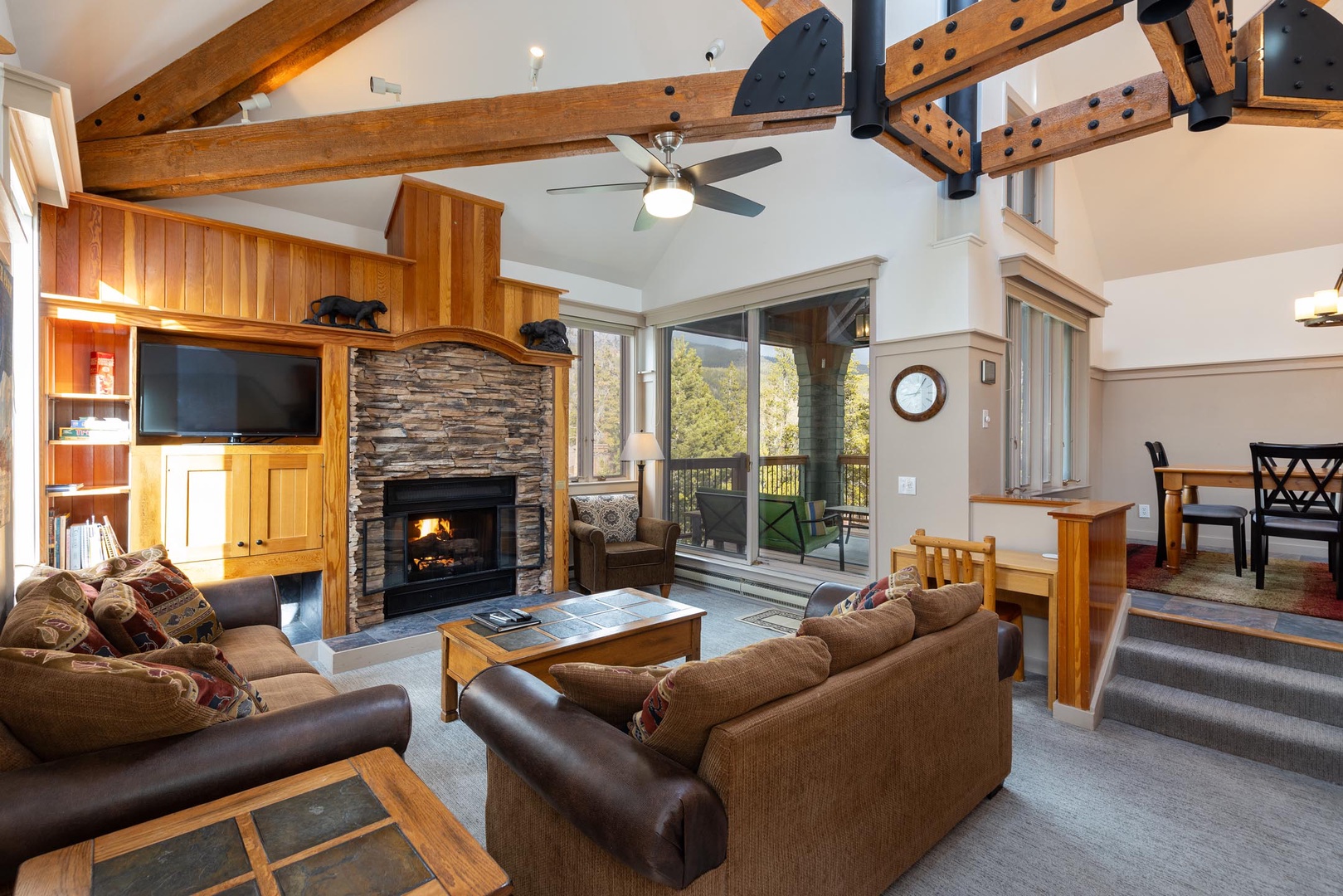 1903 Soda Springs I 1903 Soda Springs I A spacious living room with wooden beams, a stone fireplace, sofas, a television, and large windows overlooking a forest. A dining area with a table and chairs is visible in the background. A wooden patio with green cushioned chairs, a coffee table, and a rug overlooks a scenic view of trees, mountains, and a cloudy sky. Outdoor swimming pool with clear blue water, surrounded by a concrete deck, lounge chairs, and trees. A green-roofed pavilion is visible in the background against a backdrop of wooded hills. Pathway leading to the entrance of multiple green wooden cabins nestled among trees in a forested area. Open Gallery A spacious living room with wooden beams, a stone fireplace, sofas, a television, and large windows overlooking a forest. A dining area with a table and chairs is visible in the background. A wooden patio with green cushioned chairs, a coffee table, and a rug overlooks a scenic view of trees, mountains, and a cloudy sky. Outdoor swimming pool with clear blue water, surrounded by a concrete deck, lounge chairs, and trees. A green-roofed pavilion is visible in the background against a backdrop of wooded hills. Pathway leading to the entrance of multiple green wooden cabins nestled among trees in a forested area. Bedroom with a bunk bed and a single bed, wooden furniture, a table lamp, and a TV. Natural light coming from the door with a window. Light beige walls and carpeting. A bedroom featuring a bunk bed and a queen-sized bed, a dresser with a TV, a bedside lamp, and a view of an adjacent bathroom with a sink and mirror. A bedroom with a ceiling fan, a bed with brown bedding, a wooden dresser with a lamp and mirror, a desk with a chair, and two doors; one to a bathroom and another closed door. A bathroom with a granite countertop, wooden cabinets, a large mirror, a toilet, a bathtub with a sliding glass door, and tiled walls. Towels hang on a wall rack and a glass door. Bathroom with wooden cabinets, granite countertop, double sinks, mounted hairdryer, and large mirror. Adjoining room features a toilet and shower with glass doors. A bedroom is visible in the background. Bathroom with a toilet, a bathtub-shower combo enclosed by glass sliding doors, a wall-mounted towel rack with a white towel, beige tile walls, and two hooks on the side wall. A cozy living room with wooden beams, a stone fireplace, brown sofas, wall-mounted skis, and nature-themed posters. A ceiling fan is hanging above, and sunlight enters through large windows. A spacious living room with exposed wooden beams, two leather sofas, a wooden coffee table, a fireplace, and a sliding door leading to an outdoor deck with seating. A kitchen area is visible in the background. A patio area with green cushioned chairs and a glass table. The patio leads into a living room with a ceiling fan, sofa, and wall art. Large windows and sliding glass doors provide natural light. A dining room with a wooden table and six black chairs, a chandelier overhead, and natural light coming through a window. The room has a two-tone wall, exposed wooden beams, and an area rug. A spacious dining room with a wooden table, six black chairs, large windows, a chandelier, and an attached open kitchen with wooden cabinets. A modern kitchen with wooden cabinets, granite countertops, a black stove, microwave, toaster, coffee maker, and a dishwasher under a large window. The space features exposed wooden beams. A modern kitchen with wooden beams, granite countertops, stainless steel appliances, and a central island. The dining area is visible in the background. A view from a balcony shows pine trees, snow patches, a nearby road, a multi-story building, and mountains under a cloudy sky. A bubbling indoor hot tub with a handrail is located in a corner room with large windows that overlook an outdoor pool area and trees. Two chairs and a small table are placed by the window. Outdoor view of green-shingled condos with snowy ground and paved walkways, surrounded by trees and a sign indicating unit numbers 1942-1909. Snow-covered residential building and pathway, surrounded by trees. A sign indicates unit numbers 1900-1913 to the left and 1914-1919 to the right. Gallery View Keystone, CO 2 Bedrooms 2 full Baths 8 Guests 1240 sq. ft. (4.9) Description Rooms Amenities Reviews Calendar Location This lovely spacious 2-bedroom condo in Wild Irishman has many great updated features and amenities. The living room features a wood fireplace, large comfy sectional, and a flat screen TV. The private patio is situated off of the living room, and features seating so you can take your morning coffee outside. With the open concept floor plan, the fully equipped kitchen flows into the living area. The large kitchen features updated countertops, stainless steel appliances, and a breakfast bar with 2 stools. The primary bedroom features a queen sized bed, private patio entrance and a connecting bathroom. The guest bedroom features a queen sized bed and a double bed as well as a connecting bathroom. Located in a beautiful, wooded neighborhood right on the free Keystone shuttle line to the slopes with easy access to hiking/biking trails. After your big day out, an outdoor heated pool, hot tub, and sauna await. There is also ski lockers, and an outdoor BBQ and picnic area for your convenience. PROPERTY FEATURES: -- 2 bedroom/2 bath -- Sleeps: 6 -- Lifts: free shuttle or 5 minute drive -- Town: free shuttle to river run village -- Views: Forest and mountain views -- Hot Tub/Pool: Outdoor shared hot tub and pool -- Outdoor Space: Private deck with seating -- Living Room: Wood fireplace, large sectional, flat screen TV -- Dining: Seating for 4 at the table and 2 at the bar -- Laundry: Shared washer/dryer in building -- Parking: 1 car allowed -- Standard Amenities: High speed Internet, linens provided -- No Pets/No Smoking -- Must be 25 Years of Age -- Air Conditioning: NO. Due to the mild high alpine climate, many properties 