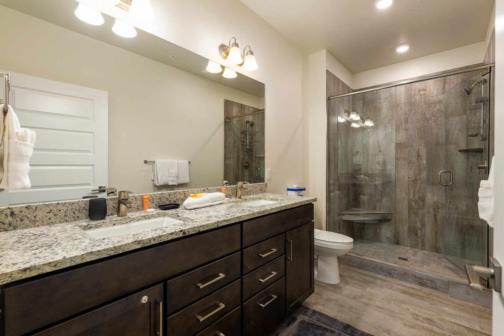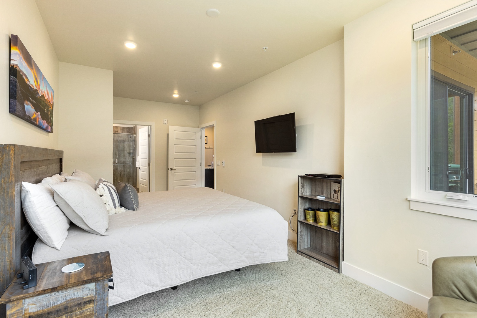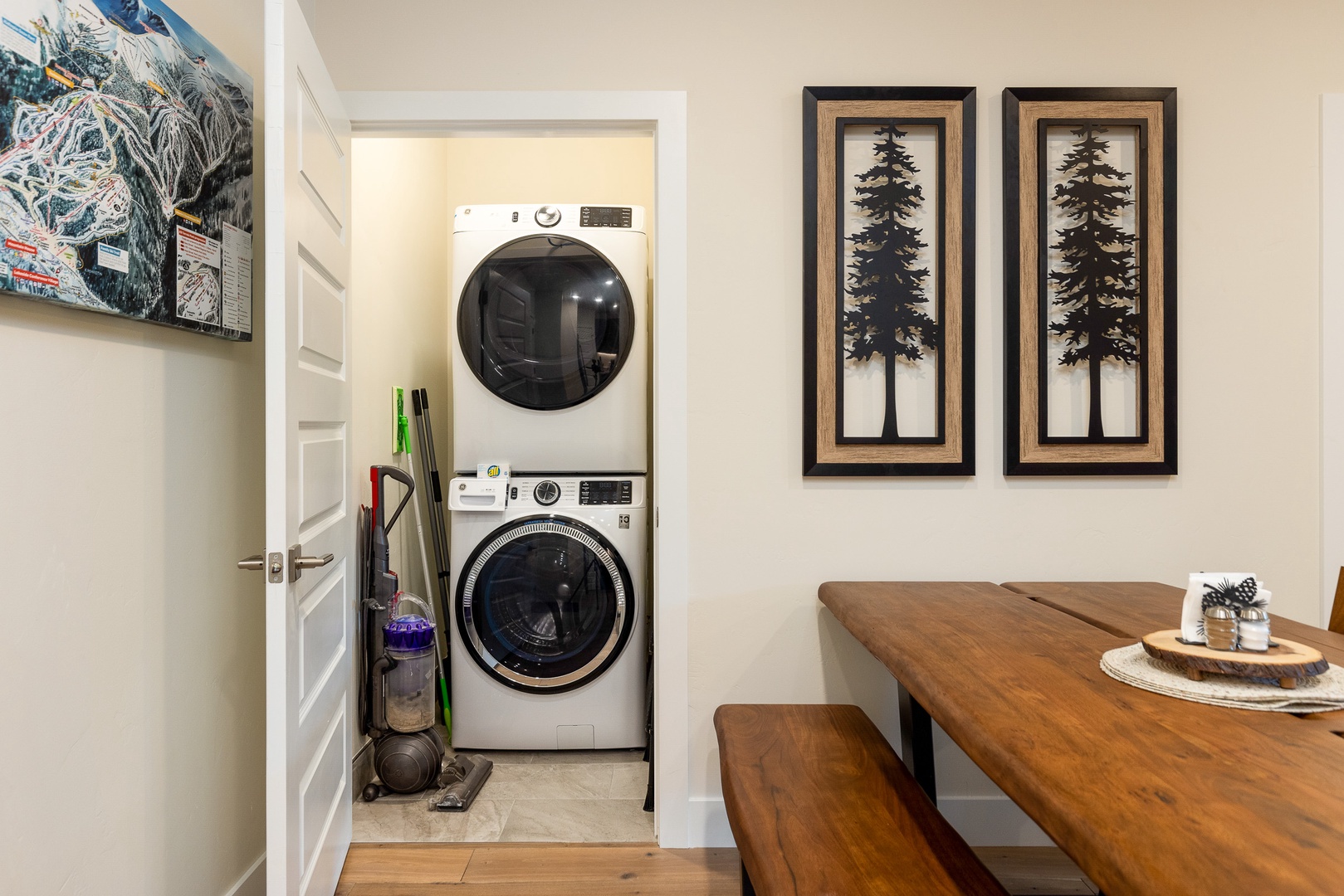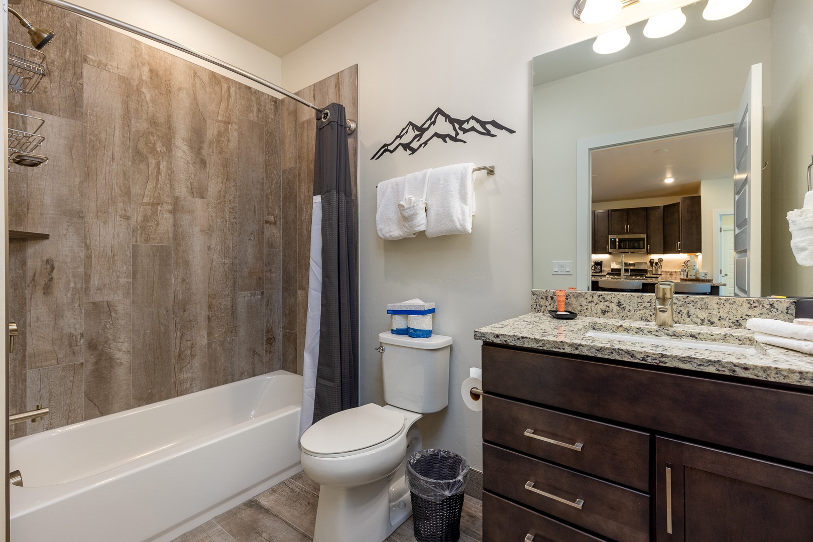 202 Clearwater Lofts 202 Clearwater Lofts A cozy living room with a sectional leather sofa, a round coffee table, a hanging chair, a fireplace with a TV above it, and a large sliding glass door leading to an outdoor patio with a forest view. A fenced outdoor hot tub on a wooden deck in front of multi-story residential buildings with mountains and trees in the background. A covered outdoor patio with a black table and chairs, a barbecue grill, and a scenic view of trees and hills in the background. A scenic landscape featuring a river winding through a lush, green valley with forested mountains in the background under a clear blue sky. A road runs along the valley floor. Open Gallery A cozy living room with a sectional leather sofa, a round coffee table, a hanging chair, a fireplace with a TV above it, and a large sliding glass door leading to an outdoor patio with a forest view. A fenced outdoor hot tub on a wooden deck in front of multi-story residential buildings with mountains and trees in the background. A covered outdoor patio with a black table and chairs, a barbecue grill, and a scenic view of trees and hills in the background. A scenic landscape featuring a river winding through a lush, green valley with forested mountains in the background under a clear blue sky. A road runs along the valley floor. A modern living room with a hanging chair, black leather couches, a coffee table, a fireplace, wall art, and a TV. A sliding glass door leads to a balcony with a scenic view outside. A modern living room with wooden flooring, leather sofas, a hanging chair, a coffee table, a fireplace, and a view into an open kitchen in the background. Modern open-concept kitchen with granite countertops, stainless steel appliances, and wood cabinets, leading into a living area with a fireplace and a view of an outdoor patio. Open-concept living area featuring a kitchen with a large island, bar stools, dining table, and a living room with a hanging chair, couch, and wall-mounted TV. Sliding doors lead to an outdoor space. Modern kitchen with granite countertops, dark wood cabinets, stainless steel appliances, and a central island with four barstools. Adjacent are a dining area and entryway with a white front door. A modern kitchen and dining room with wooden furniture, stainless steel appliances, dark cabinets, and a window view of a green outdoors. A balcony with a table and chairs overlooks a scenic view of buildings and pine trees with mountains in the background. Indoors, a couch and framed picture are visible through a sliding glass door. A bedroom with a large bed, two cushioned chairs near a window, a wall-mounted TV, and a nature-themed painting above the bed. A bedroom with a neatly made bed, a wall-mounted TV, an open door, a window, and a small shelving unit with storage baskets. The room is well-lit with recessed lighting and has a beige color scheme. Two green armchairs with a small wooden table in between are positioned by large windows overlooking a forested landscape. A modern bathroom featuring a double-sink vanity with granite countertop, a large mirror, a glass-enclosed shower with tile walls, and overhead lighting. A bedroom with wooden bunk beds, a black bean bag, a wall-mounted TV, a window with a forest view, a nightstand with a lamp, skis on the wall, and a sign that reads "Adventure Awaits. A bedroom with a bunk bed featuring a double bed on the bottom and a single bed on top. The room has light-colored walls and a door leading to an adjacent room with a wooden table and chairs. A modern bathroom with a bathtub, toilet, dark wood vanity with granite countertop, and a wall mirror. Towels, toiletries, and a wall decoration are visible. A compact laundry area with a stacked washer and dryer is located behind a partially open door. Two framed pictures of trees and a wooden dining table can be seen in the adjacent room. A modern multi-story apartment building with balconies, situated in a mountainous area, with a garage in front and several parked cars nearby. Aerial view of a landscape featuring a mix of dense trees, a winding river through wetland-like vegetation, a few paths, and buildings in the background near a lake. Gallery View Keystone, CO 2 Bedrooms 2 full Baths 8 Guests 1110 sq. ft. Description Rooms Amenities Reviews Calendar Location Welcome to 202 Clearwater lofts! This property is brand new with high-end luxury finishes, mountain views, and quick access to the slopes via shuttle or a short drive. The entryway features a bench and built in hooks to make storing gear a breeze. Just past the entryway is a laundry closet with a full size washer and dryer. The living room has a large flat screen TV, queen sleeper sofa couch and a gas fireplace. Just off the living room is a large balcony with amazing mountain views. The gourmet kitchen has all essentials stocked and features brand new high-end appliances. There is seating for 3 at the kitchen bar and 6 at the dining room table. The primary bedroom features a king sized bed and full en suite bathroom. The guest bedroom features a queen over queen bunk bed. Clearwater Lofts at Keystone are luxury condominiums that offer outdoor recreation all year long – minutes to the Keystone Lake, a short shuttle to the slopes, the Summit County Recreation Path with miles of riding and walking and the Snake River Wetlands right out your door. Building amenities include: hot tub area, ski locker room, underground heated parking garage. PROPERTY FEATURES: -- 2 bedroom/2 bath -- Sleeps: 8 -- Lifts: 5 minute shuttle ride -- Views: Mountain, forest -- Hot Tub: Outdoor shared hot tub -- Outdoor Space: Private deck -- Living Room: Fireplace, large flat screen TV, sleeper sofa -- Dining: Seating for 6 at table and 3 at kitchen bar -- Laundry: Private in-home washer/dryer -- Parking: 1 car allowed in underground garage; unassigned first come first serve parking in front of building (not guaranteed) -- Standard Amenities: High speed Internet, li