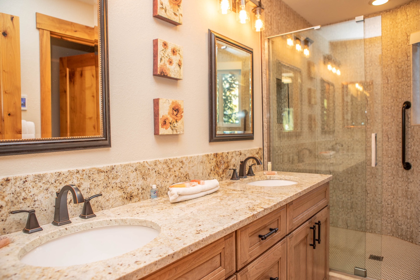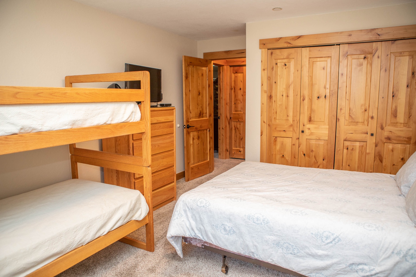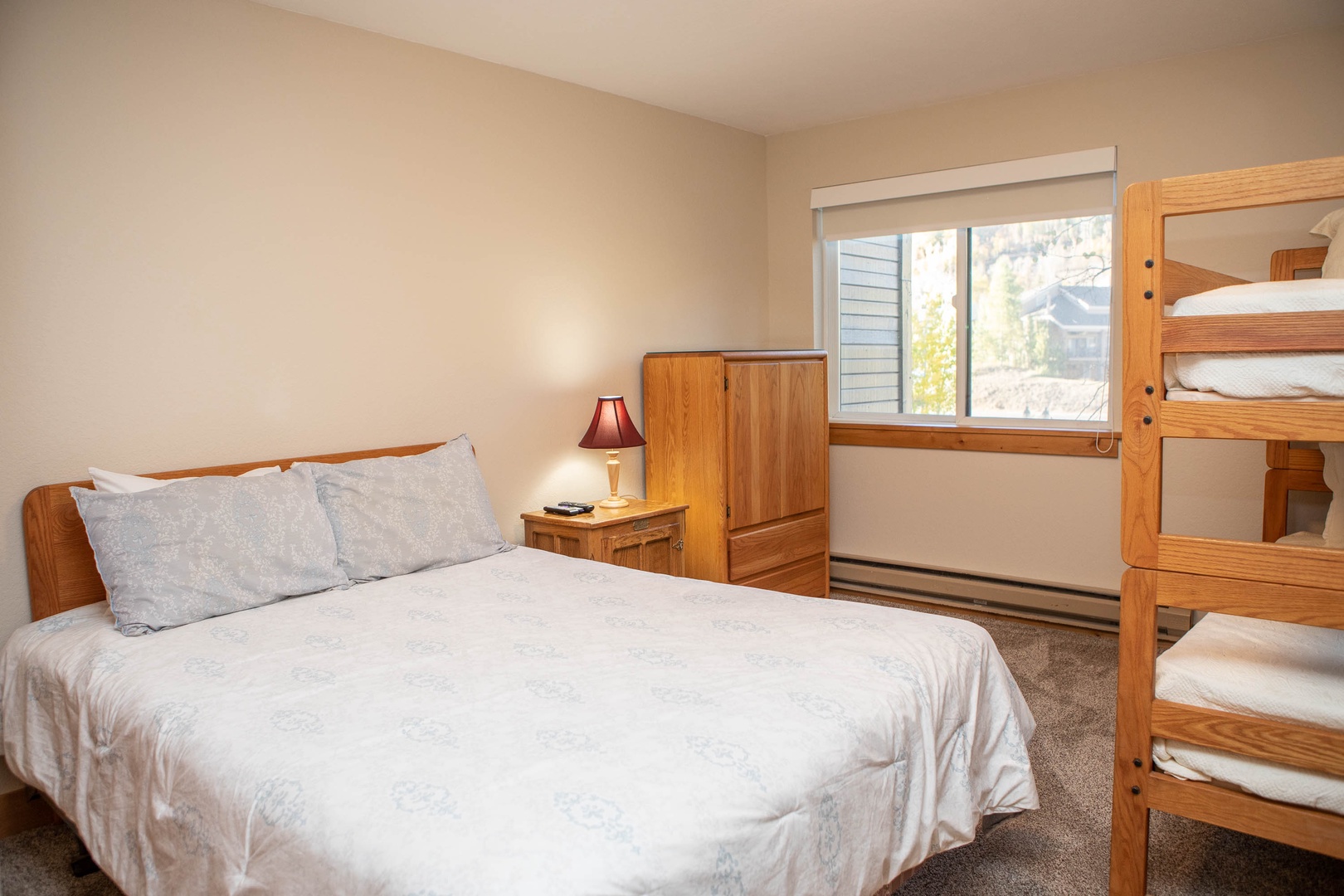 232 Cinnamon Ridge 232 Cinnamon Ridge A cozy living room with a stone fireplace, a sectional sofa, a coffee table, and carpeted flooring. A dining area is visible in the background with a wooden table and chairs. Decor includes wooden panels and skis. A scenic landscape featuring a small pond surrounded by autumn foliage with evergreen trees and mountains in the background under a clear blue sky. A wooden balcony with two chairs overlooks a scenic view of trees, hills, and buildings under a clear blue sky. A modern kitchen with wooden cabinets, stainless steel appliances, granite countertops, and a window above the sink. Open Gallery A cozy living room with a stone fireplace, a sectional sofa, a coffee table, and carpeted flooring. A dining area is visible in the background with a wooden table and chairs. Decor includes wooden panels and skis. A scenic landscape featuring a small pond surrounded by autumn foliage with evergreen trees and mountains in the background under a clear blue sky. A wooden balcony with two chairs overlooks a scenic view of trees, hills, and buildings under a clear blue sky. A modern kitchen with wooden cabinets, stainless steel appliances, granite countertops, and a window above the sink. A modern kitchen with wooden cabinets, stainless steel refrigerator and dishwasher, granite countertops, and a window above the sink. Modern kitchen with wooden cabinets, stainless steel appliances including a fridge and microwave, granite countertops, and a kitchen island. Doorway and hallway visible in the background. A modern kitchen with wooden cabinets, granite countertops, stainless steel appliances, a small window above the sink, and a breakfast bar with two padded stools. A dining area with a glass table and upholstered chairs in front of sliding glass doors, leading to a balcony that overlooks a forested hill. The room has a chandelier and neutral-colored walls. A cozy living room with a curved sectional sofa, stone fireplace, wall-mounted TV, and an open kitchen in the background. Shelves above the fireplace hold decorative items. Living room with a stone fireplace, wooden mantel with books and plants, skis on the wall, TV on a stand, couch, and coffee table. A bedroom with a large bed, two bedside tables with lamps, a wooden door, a window, a mirror above a wooden desk with a chair, and a painting above the bed. The room has beige walls and carpeted flooring. A bedroom features a large bed with patterned bedding, flanked by wooden nightstands with lamps. There is another smaller bed with red striped bedding near a window. Framed pictures hang on the walls. Bedroom with a double bed, a daybed, a wooden dresser, and a chest of drawers. A blue vase with flowers sits on the dresser. Large window with a view and a partially open wooden door are visible. A modern bathroom features a granite countertop with dual sinks, framed mirrors, and a glass-enclosed shower. Warm lighting and floral wall art add decorative elements to the space. Bathroom with an open door leading to a carpeted room containing a wooden dresser. The bathroom features a toilet, sink with marble countertop, lighted mirror, and a potted plant on the wall. A bedroom with a queen-sized bed, a nightstand with a lamp, a chest of drawers, and a set of bunk beds. A window is on the right side of the room. A bedroom with a bunk bed and a single bed. The room features wooden furniture including a dresser, closed closet doors, and a wall-mounted TV. A bathroom with a granite countertop, a black faucet, and a large mirror. A doorway leads to a hall with carpet, and a painting hangs on the wall. Laundry area with stacked washer and dryer unit next to a wooden door. A box of Fab detergent is placed on the washer. A hallway and partially visible room in the background. Gallery View Keystone, CO 2 Bedrooms 2 full Baths 8 Guests 1750 sq. ft. (4.8) Description Rooms Amenities Reviews Calendar Location This newly remodeled 2-bedroom condo is amenity rich and within walking distance to the slopes! The condo features breathtaking views of the Snake River Basin and Keystone Mountain, which is lit up at night! Enter into the spacious living room which features a flat screen TV, a warm wood fireplace and you'll always find a half cord of wood on the private patio. The fully equipped, newly updated kitchen is perfect for the chef of the family. Serve up to 6 people comfortably at the table with an additional 2 seats at the breakfast bar. There is also a private washer and dryer in the condo for your convenience. The primary bedroom features a king sized bed and a double futon. The en suite primary bathroom features a dual sink vanity and a walk in shower. The guest bedroom features a queen sized bed and a twin bunk bed. There is also a queen sleeper sofa in the living room to accommodate additional guests. This condo features a private dry sauna that seats up to four people inside the condo. Cinnamon Ridge is a short 6 minute walk to the lifts. The Keystone free shuttle bus will also pick up every 15 minutes on the outer corner of the parking lot, and can take you to River Run or anywhere else in Keystone, where you can enjoy all of the dining, shopping, and night life. Property Owner extremely allergic to animals. If you'll be traveling with a Support Animal please notify Skyrun Vacation Rentals immediately. PROPERTY FEATURES: -- 2 bedroom/2 bath -- Sleeps: 8 -- Lifts: 6 minute walk to the lifts -- Views: Mountain and river -- Outdoor Space: Private deck -- Living Room: Wood fireplace, large flat screen TV, queen sleeper sofa -- Dining: Seating for 6 at the table and 2 at the breakfast bar -- Laundry: Private in-home washer/dryer -- Parking: 2 cars allowed -- Standard Amenities: High speed Internet, linens provided -- No Pets/No Smoking -- Must be 25 Years of Age -- Air Conditioning: NO. Due to the mild high alpine climate, many properties are not equipped with air conditioning. THE SKYRUN ADVANTAGE: All SkyRun Keystone propertie