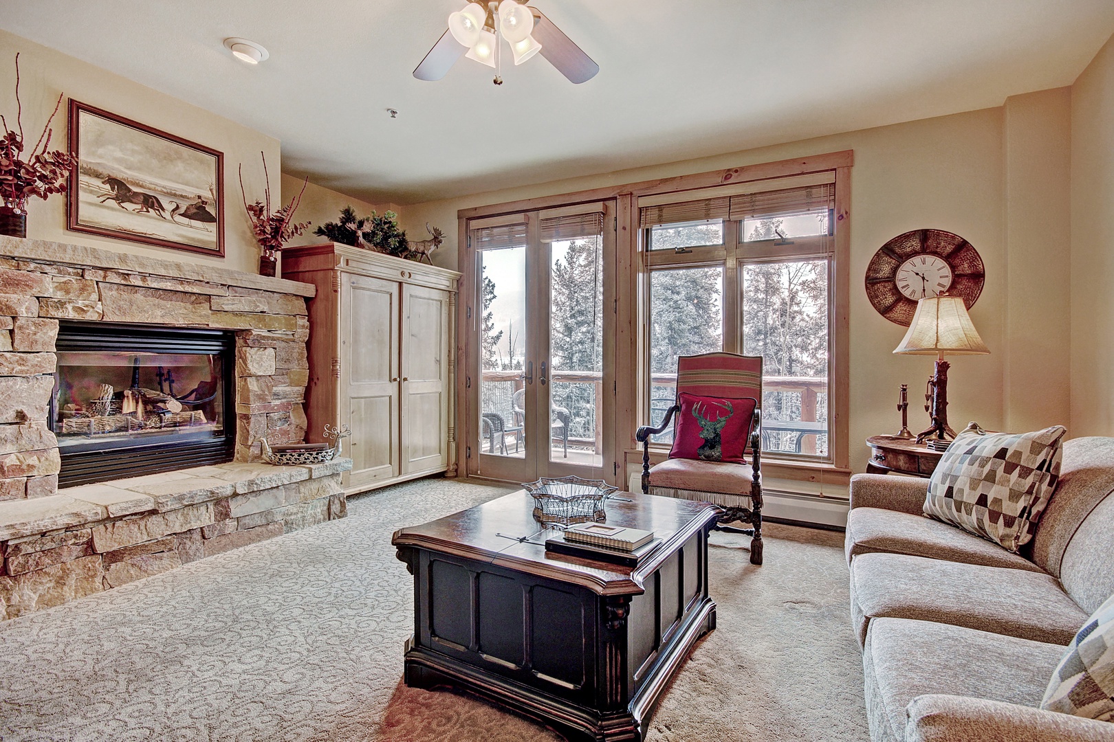 3069 Timbers 3069 Timbers A cozy living room features a stone fireplace, wooden coffee table, sofa, armchair, ceiling fan, and large windows with a view of trees. A lamp and a wall-mounted clock adorn the space. Outdoor patio with brick flooring, featuring a round dining table with umbrellas, cushioned chairs, a BBQ grill, a hot tub, and a swimming pool. Surrounding area includes trees and a stone wall. A snowy balcony with wooden railings and metal chairs overlooks a forest of tall pine trees. A bedroom with a striped bedspread, wooden furniture, two table lamps, a ceiling fan, and large windows with a view of trees outside. Open Gallery A cozy living room features a stone fireplace, wooden coffee table, sofa, armchair, ceiling fan, and large windows with a view of trees. A lamp and a wall-mounted clock adorn the space. Outdoor patio with brick flooring, featuring a round dining table with umbrellas, cushioned chairs, a BBQ grill, a hot tub, and a swimming pool. Surrounding area includes trees and a stone wall. A snowy balcony with wooden railings and metal chairs overlooks a forest of tall pine trees. A bedroom with a striped bedspread, wooden furniture, two table lamps, a ceiling fan, and large windows with a view of trees outside. A modern kitchen with wooden cabinets, stainless steel appliances, granite countertops, an island with a sink, and three bar stools. Recessed lighting illuminates the space. A kitchen with wooden cabinets, stainless steel appliances, a granite countertop island with seating, a red bench, and a hallway leading to a wooden door. Modern kitchen with stainless steel appliances, wood cabinets, granite countertops, an island with bar seating, and tiled floor. A modern kitchen with wooden cabinets, stainless steel appliances including a microwave, oven, and dishwasher, granite countertops, and a tiled floor. A mirror hangs above the sink. A modern kitchen with wooden cabinets, stainless steel appliances, a double sink, gas stove, microwave, and an assortment of small appliances on the countertop. Adjacent living area visible in the background. Spacious kitchen with granite countertops opens to a cozy living room that features a stone fireplace, ceiling fan, and large windows with a view. The room includes wooden doors and various decor. A kitchen and dining area with wooden cabinets, a central island, a wooden dining table with chairs, and a wrought iron chandelier. The space includes a refrigerator, microwave, and decorative items. A dining room with a wooden table and eight chairs is adjacent to a kitchen with a wooden island and three stools. A chandelier hangs above the table, and a framed picture is on the wall. A cozy dining and living area featuring a wooden dining table with decorative chairs, a stone fireplace, and large windows with outdoor views. The room is adorned with warm lighting and rustic decor. A cozy living room with a rustic theme featuring a stone fireplace, wooden dining table with six chairs, sofa, coffee table, ceiling fan, large windows, and decorative wall art. A cozy living room with a beige sofa, wooden coffee table, armchair, ceiling fan, and large windows overlooking snowy trees. Decor includes a wall clock and framed picture. A furnished living area with a sofa, armchairs, a coffee table, and two lamps. Behind are a dining table and chairs, and a kitchen with wooden cabinets, stainless steel appliances, and a ceiling fan. A cozy living room with a ceiling fan, sofa, wooden coffee table, stone fireplace, and an open kitchen in the background with wooden cabinets and a dining table with chairs. Snow-covered outdoor balcony with a table, four chairs, and a view of snow-laden trees. Snow is seen accumulating on the balcony and the nearby forest scenery. A tidy bathroom with a pedestal sink, toilet, and framed mirror. Towel racks hold folded towels and a hand towel. Framed photo on the wall and a tissue box on the toilet tank. A cozy bedroom with a striped bedspread, two bedside tables with lamps, a dresser, a ceiling fan, and large windows with a view of snowy trees. A bedroom with a double bed featuring striped bedding, wooden furniture, a ceiling fan, a dresser, a TV, and a view of an adjoining bathroom and hallway. A cozy bedroom with a striped bedspread, wooden furniture, a flat-screen TV on a dresser, a window with a snowy forest view, and a ceiling fan with lights. A bathroom with a double sink vanity, bathtub, wall clock, framed pictures, towel rack with a towel, and a small bench on tiled flooring. A rug is placed in front of the sink. A bathroom with a large bathtub, glass-enclosed shower, wooden window frame, towel rack with two white towels, and a cushioned stool. A small bedroom featuring rustic wooden bunk beds with plaid bedding, a wooden dresser with a lamp, a window with a view of trees, and a wooden cabinet with a TV on top. A rustic bedroom with wooden bunk beds on each side, a wooden dresser with a lamp in the center, plaid bedding on the beds, and a window at the back. A small bathroom features a wooden vanity, toilet, mirror, and a bathtub with a tiled surround and a patterned shower curtain. A toilet paper roll hangs from a holder, and towels are on a wall rack. A fitness center featuring several exercise machines including treadmills, ellipticals, and a stationary bike, with a small indoor hot tub in the foreground. An indoor hot tub with wood-framed windows and doors, tiled walls, and a small step ladder. Sunlight streams through the windows. Outdoor area of a luxury lodge with a hot tub and pool surrounded by lounge chairs, parasols, and tall pine trees in the background. A small, circular outdoor hot tub with a stone waterfall feature and metal handrail. Outdoor swimming pool surrounded by stone walls and brick flooring, adjacent to a multi-story building with wooden siding and large windows, shaded by tall trees. A tiled steam shower room with built-in bench seating and a stainless steel handrail on the left w