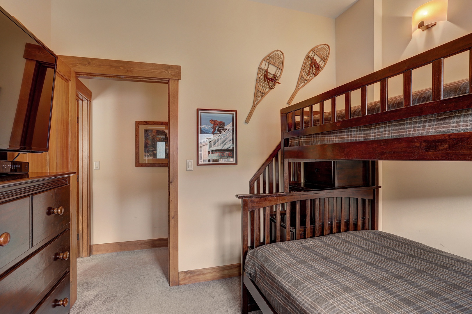 8912 The Springs Home Colorado Keystone 8912 The Springs 8912 The Springs A cozy living room with a stone fireplace, mounted TV, sectional sofa, wooden coffee table, and a window with a view of the mountains. Outdoor heated pool area at a ski resort, featuring lounge chairs, rock formations, and a gazebo, with snow-covered slopes and trees in the background under a blue sky with scattered clouds. A stone hot tub with bubbling water is surrounded by evergreen trees and set against a rustic wooden building. A balcony with a metal table and chairs overlooks a mountainous landscape, pine trees, and buildings below on a clear day. Open Gallery A cozy living room with a stone fireplace, mounted TV, sectional sofa, wooden coffee table, and a window with a view of the mountains. Outdoor heated pool area at a ski resort, featuring lounge chairs, rock formations, and a gazebo, with snow-covered slopes and trees in the background under a blue sky with scattered clouds. A stone hot tub with bubbling water is surrounded by evergreen trees and set against a rustic wooden building. A balcony with a metal table and chairs overlooks a mountainous landscape, pine trees, and buildings below on a clear day. A small gym room with various exercise equipment including an elliptical, stationary bike, and weight machine facing a large mirror and windows. A recreation room with a pool table, lounge seating, and a kitchenette. The room features wood accents, wall murals, exposed rock details, and a nearby exit sign. A living room with stone fireplace, wall-mounted TV, brown sectional sofa, wooden coffee table, and large windows with mountain views. There's a hallway to the right leading to other rooms. Open-concept living room with a large sectional sofa, wooden coffee table, and ceiling fans. The room extends to a kitchen with wooden cabinetry and stainless steel appliances. A cozy living room with stone walls and a fireplace, featuring a mounted TV, ceiling fans, and large windows. The room opens to a kitchen with a granite island and stainless steel appliances. A rooftop deck with wooden siding, metal railings, several tables, and chairs, adjacent to a sloped roofed building with large windows. A kitchen and dining area with wooden cabinets, stainless steel appliances, an island with four bar stools, and a dining table with four chairs under a chandelier. Modern kitchen with wooden cabinets, stainless steel appliances, a double sink with granite countertops, and a tiled backsplash. A potted plant is placed on top of the cabinets. A kitchen with wooden cabinets, stainless steel appliances, and a stone-faced island, adjoining a dining area with a chandelier and a table with chairs. Dining room with a wooden table, six wicker chairs, a chandelier, and two framed nature pictures on orange-brown walls. A dining area with a rectangular wooden table, wicker chairs, a chandelier, and a mountain landscape painting on a beige wall. A kitchen with wooden cabinets and a microwave is visible in the background. A bedroom with a patterned bedspread, decorative pillows, wooden doors, framed artwork on the walls, a ceiling fan, and a wall-mounted TV. Bathroom with wooden cabinetry and double sinks, a large mirror with overhead lights, a towel holder, and a patterned shower curtain next to a wooden door. A bedroom with a large bed featuring patterned bedding and multiple pillows, a dresser, and a window with a view of a mountainous landscape. A bedroom with patterned bedding, a lamp on a side table, artwork on the wall, a wooden dresser, and a wooden closet door. The attached bathroom has a vanity with a large mirror and lights above. A bathroom with a wooden double-sink vanity, a large rectangular mirror, overhead lighting, and wall-mounted hair dryer. A small bedroom featuring a wooden bunk bed with plaid bedding, a window with a view of nearby buildings, a wooden dresser, and a mounted TV on the wall. The room is lit by wall-mounted lights. A bedroom with a wooden bunk bed, plaid bedding, a dresser with a TV, wall-mounted snowshoes, and framed pictures. The room has carpeted floors and wooden door frames. A bathroom with a bathtub, white and brown tile walls, a showerhead, a wavy pattern shower curtain, a white towel on a towel rack, folded towels and soap on the tub edge, and framed artwork on the wall. A bathroom with a bathtub, toilet, vanity with sink, wall mirror, towel, and two wall lights. Two framed pictures are on the wall, and a louvered door is on the right. A mountainous area with skiing infrastructure, including ski lifts and a base lodge, surrounded by trees and a parking lot filled with vehicles at the bottom. A row of closed beige lockers in a locker room, accompanied by a wooden bench. Fluorescent light fixtures are visible in the ceiling above. Outdoor swimming pool with a slide and rock features in front of a multi-story wooden hotel building, surrounded by trees and mountains under a clear blue sky. A small tiled room with a square sunken tub, frosted glass window, and a ceiling light fixture. The walls and ceiling are covered in grey and brown tiles. A home theater room with brown recliner chairs, a wooden coffee table, and a large TV screen displaying a scenic image. The walls and ceiling are painted green. A recreational room with wooden furniture, including round tables and chairs, a pool table with overhead lighting, wall-mounted lights, and a mural on one wall. Doorways lead to additional rooms. A cozy living room with a stone fireplace, wooden mantel, two armchairs, a coffee table with newspapers, and floral decorations. A large window lets in natural light. Walls feature nature-themed artwork. A large, cozy living room with a wooden ceiling, stone accents, and a floor-to-ceiling window overlooking a forest. The space features leather couches, a stone fireplace, and a rock water feature. A children's playroom with a nature-themed mural, a small playhouse structure, a red rocking chair, and large win