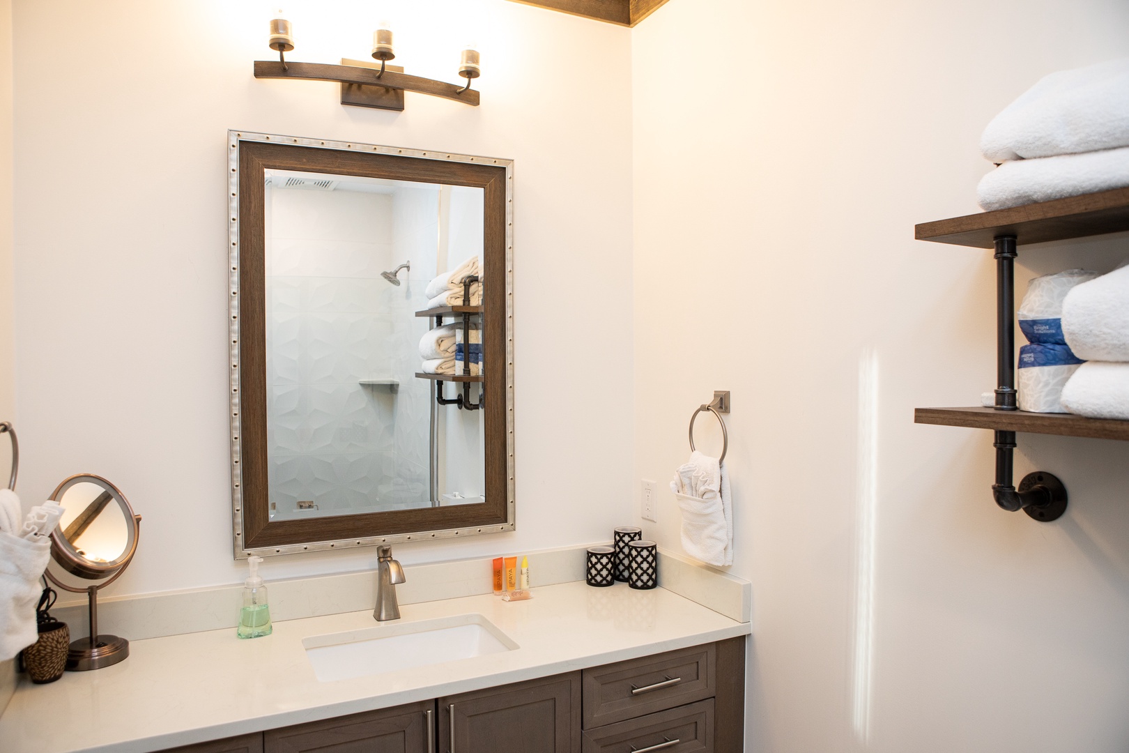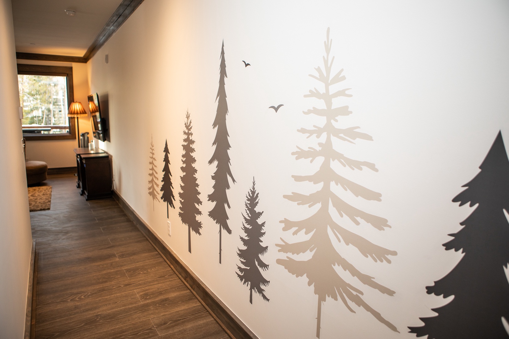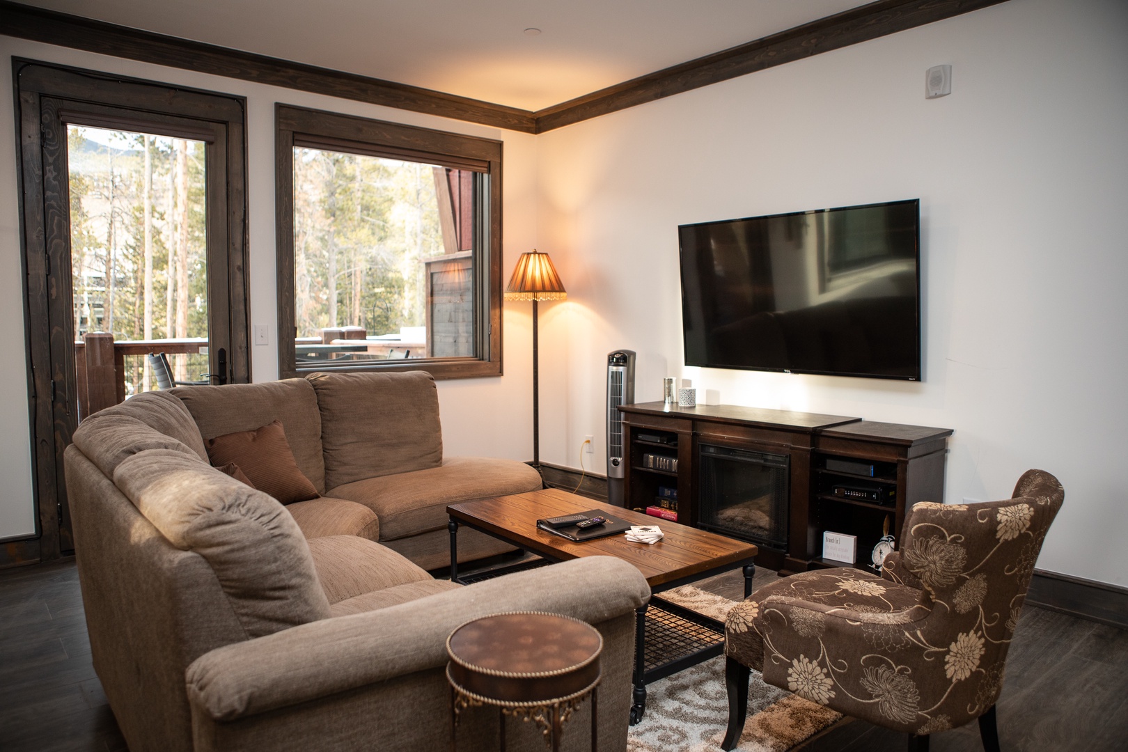 The Seasons 1818 – PRIVATE HOT TUB The Seasons 1818 - PRIVATE HOT TUB A red and yellow wooden house with steep roofs, covered in snow and icicles, set against a clear blue sky. A wooden cabin entrance features a stone foundation and steps, set amidst a snowy landscape with pine trees and a nearby road. A cozy living room featuring a sectional sofa, an armchair, a coffee table, a wall-mounted TV, and large windows with views of trees. A modern kitchen and dining area with white cabinets, marble backsplash, dining table with four upholstered chairs, black stove hood, island with stools, and a stone fireplace with a candle holder. Open Gallery A red and yellow wooden house with steep roofs, covered in snow and icicles, set against a clear blue sky. A wooden cabin entrance features a stone foundation and steps, set amidst a snowy landscape with pine trees and a nearby road. A cozy living room featuring a sectional sofa, an armchair, a coffee table, a wall-mounted TV, and large windows with views of trees. A modern kitchen and dining area with white cabinets, marble backsplash, dining table with four upholstered chairs, black stove hood, island with stools, and a stone fireplace with a candle holder. A modern kitchen with white cabinets, stainless steel appliances, a marble backsplash, and a white island countertop with a vase of red flowers. Two pendant lights hang over the island. Modern kitchen with stainless steel gas stove, white cabinetry, marble backsplash, coffee maker, toaster oven, and sink beneath a large window overlooking a wooded area. A modern kitchen with white cabinets, stainless steel appliances, a marble backsplash, and a vase of red flowers on the island countertop. Modern kitchen with a stainless steel stovetop and range hood, white marble backsplash, and black countertop. Coffee maker, knife set, and small kitchen items are placed on the counter. Modern kitchen with stainless steel sink, black countertop, white cabinets, paper towel roll on the counter, and a window above the sink showcasing an outdoor staircase. Modern kitchen and dining area with a central island, pendant lights, white cabinets, a fireplace, large windows offering outdoor views, and a vase of tulips on the island. Dining area with a wooden table, upholstered chairs, a fireplace, a window with a view of trees outside, and a modern light fixture above the table. A modern living room with a beige sofa, wooden coffee table, and brown armchair. The open kitchen area has white cabinets, stainless steel appliances, and an island with bar stools. A living room featuring a sectional sofa, a patterned armchair, a coffee table, a TV mounted on the wall, and a floor lamp next to a window. The decor is modern with wooden accents. A cozy living room with a wall-mounted TV, a wooden coffee table, a couch, and an armchair. There is a console below the TV and tree wall decals are visible in the hallway. A modern open-concept living room and kitchen with dark wood accents, a gray sofa, patterned armchair, stainless steel appliances, dark double doors, and a small entryway visible in the background. A hallway with wooden flooring and tree silhouette decals on the wall. A window with a view of trees is at the end of the hall, next to a brown chair and a drawer. Two birds are in flight in the decal. A bedroom with a checkered bedspread, two lamps on nightstands, and framed artworks on the walls. Two windows allow natural light into the room. A bedroom with a white bed, plaid bedding, two nightstands with lamps, framed artwork on the walls, and two windows with wooden frames. A small black device and an alarm clock are on the left nightstand. Bedroom with a checkered bedspread, wall-mounted TV, white dresser, and an open door leading to a bathroom. Another door, partially visible, leads to the hallway. A bathroom with a sink, mirror, light fixture, and shelves holding towels. The countertop has a soap dispenser and toiletries. Modern bathroom with a large mirror, sink, and storage cabinet below. Towels are neatly stacked on floating shelves, and toiletries are placed near the sink. The space is well-lit with contemporary fixtures. A tiled shower with a geometric pattern on the walls, featuring a small corner shelf and a square showerhead mounted on the upper corner. A neatly made bed with a colorful patchwork quilt is flanked by two wooden nightstands, each with a lamp. A framed picture hangs above the bed, and a window on the left allows natural light to enter. A neatly made wooden bed with a patchwork quilt, fluffy pillows, a nightstand with a lamp, a dresser with decor, and framed wall art in a bright bedroom. A bedroom with a wooden bed frame featuring a colorful patchwork quilt, two side tables with lamps, a window with a tree view, and wall art above the bed. A shower corner with gray subway tile walls, a showerhead, and a small corner shelf. Modern bathroom with gray tiled bathtub and shower, white toilet and vanity, metal shelves with folded towels, soap dispenser, mirror, and wall-mounted decor. A laundry closet with a stacked washer and dryer, cleaning supplies on the door rack, and a glimpse of a bedroom on the left. Outdoor hot tub on a wooden deck in a snowy setting surrounded by trees, with yellow caution signs on the supporting wooden posts. Outdoor patio featuring a hot tub, wooden dining table with chairs, and a ladder leading to an upper deck. The patio is adjacent to a red-paneled house with sliding glass doors. Outdoor patio with a wooden table and black chairs, overlooking a snowy landscape with pine trees and mountains in the background. A wooden deck overlooks a snowy landscape with tall trees and a mountain in the background. The road is visible just beyond the trees. A wooden door with a keypad lock is set into a red wall. Above the door light, there is a sign displaying the number "1818. A small entryway with a wooden bench, cubby storage with baskets above, a wooden door with windows, a colorful