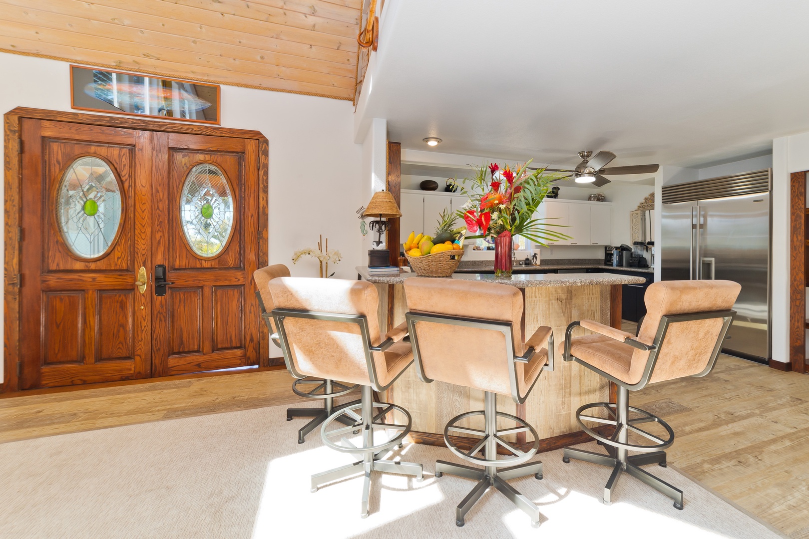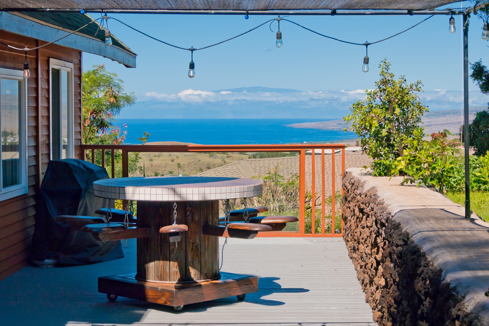 Lua Hoana Place Home Hawaii Kona Coast Lua Hoana Place Lua Hoana Place Upstairs Primary Bedroom (king bed). Enjoy a morning cup of Kona coffee from the lanai while taking in the incredible views of Maui. There is also a desk, printer /scanner. Perfect for working remotely. Foyer looking towards kitchen and staircase to upstairs primary guest quarters. Entryway looking towards kitchen, two guest bedrooms, bathroom and laundry areas Large, new Jacuzzi with amazing views, including that of our neighbor island, Maui. Chef's dream Kitchen with high end appliances and accessories Kitchen with high end appliances and chef's dream accessories Living room with comfortable sectional, large smart TV. This vantage looks towards formal dining area (new table is behind sectional), entryway and kitchen Living room with large flat screen TV Open Gallery Upstairs Primary Bedroom (king bed). Enjoy a morning cup of Kona coffee from the lanai while taking in the incredible views of Maui. There is also a desk, printer /scanner. Perfect for working remotely. Foyer looking towards kitchen and staircase to upstairs primary guest quarters. Entryway looking towards kitchen, two guest bedrooms, bathroom and laundry areas Large, new Jacuzzi with amazing views, including that of our neighbor island, Maui. Chef's dream Kitchen with high end appliances and accessories Kitchen with high end appliances and chef's dream accessories Living room with comfortable sectional, large smart TV. This vantage looks towards formal dining area (new table is behind sectional), entryway and kitchen Living room with large flat screen TV Incredible views, including of Maui, our neighbor island. View of the front of the house. You will take the stairs on the right to access the main living area. Front of the house... take steps to main living area Outside casual dining and BBQ area- enjoy incredible views while sitting on "oar paddle" theme seats. Designer created the "floating" paddle seats for his surfing family. Great way to work on balance and core work while dining. Entryway and front door - your start to the fabulous nautical and Hawaiiana themes, which are carried throughout the entire house. Welcome to tropical paradise! Front door with fun nautical theme Casual elegance awaits you once inside this beautiful house. This is the entryway looking towards kitchen, two guest bedrooms, bathroom and laundry areas Entryway looking towards kitchen, two guest bedrooms, bathroom and laundry areas Looking back towards front door. There is a dart board located between the wooden oars. (Other games are located in living room area.) Perfect for both fun entertainment and family bonding. Front door from inside. Entryway foyer - the kitchen, bathroom, two guest bedrooms & laundry room to your left. Formal dining area & living room to your right. Upstairs is a huge primary bedroom w/ bathroom. Beautiful back yard straight ahead. Entryway looking towards the comfy living room and back yard Entryway facing living room Entryway peeking into comfy living room on the right and back yard. Entryway as you walk in the front door Beautiful nautical and Hawaiiana themes carried throughout the house. A peek into the large kitchen, with countertop casual dining option. Casual counter dining option, looks into the fabulous kitchen. A nice way to either eat, or just hang out with the chef as they prepare the family meal. Formal dining table and chairs for easy indoor dining. Casual elegance and total comfort abounds everywhere in this fabulous house. View from living room, looking towards formal dining area and into foyer and kitchen View towards living room and formal dining area. Note fabulous tropical, nautical and Hawaiiana themes abound. Welcome to Paradise! View towards living room. (Dining table coming soon on the right!) Beautiful living room with large flat screen, smart TV. Relax on a comfy sectional couch, or take a break from TV by playing games- chess, checkers, dice, cards and dart games available. Large Chef's dream kitchen with high end appliances and accessories Kitchen with high end appliances and chef's dream accessories Large Chef's dream kitchen with high end appliances and accessories Large Chef's dream kitchen with high end appliances and accessories A welcome basket of tropical fruits and flowers. E komo mai! (Welcome!). Entryway / foyer facing back towards the front door. The staircase on the right takes you to the primary bedroom suite Entryway facing back towards front door Large Primary Bedroom with King bed, desk for working remotely (note wifi printer/scanner), sitting area and large balcony with views galore, including Maui, our neighbor island! Beautiful space to work remotely. Warning - the views and sounds of tropical birds can be very distracting. Beautiful space to work remotely.. Primary bedroom facing sitting area. Balcony on right is a fabulous place to enjoy a cup of coffee in the morning or evening cocktail to toast an amazing day spent in Paradise. Primary bedroom facing sitting area. Balcony on right Sitting area in Primary Bedroom Outside lanai / balcony located off primary bedroom. Sit, relax, breathe and take in the epic views of paradise. Epic views galore from the primary bedroom lanai. Please note: this area now has beautiful, comfy chairs as seen in previous, non-professional photo. You can see Maui in the background! Amazing views from Primary Bedroom Lanai (balcony). Epic views galore from the primary bedroom lanai. Please note: this area now has beautiful, comfy chairs as seen in previous (albeit non-professional) photograph. Breathtaking views from upstairs lanai (balcony) Large private bathroom off Primary Bedroom. Relax and unwind in a bathtub with jets, or shower with high end products. Double sinks and make-up sitting area are available. Large bathroom off Primary bedroom Primary Bathroom with bidet, bathtub with jets and shower, and two sinks and make up sitting area are available. Primary Bathroom with