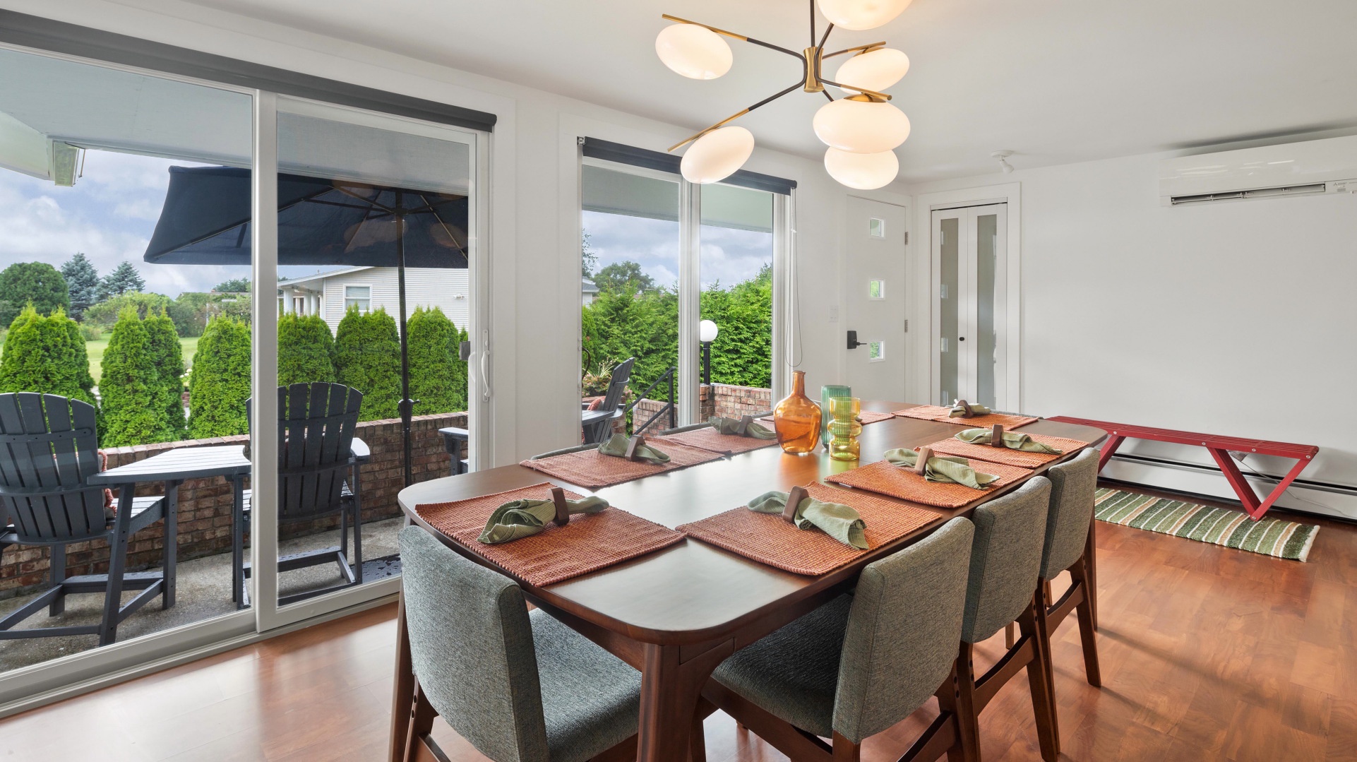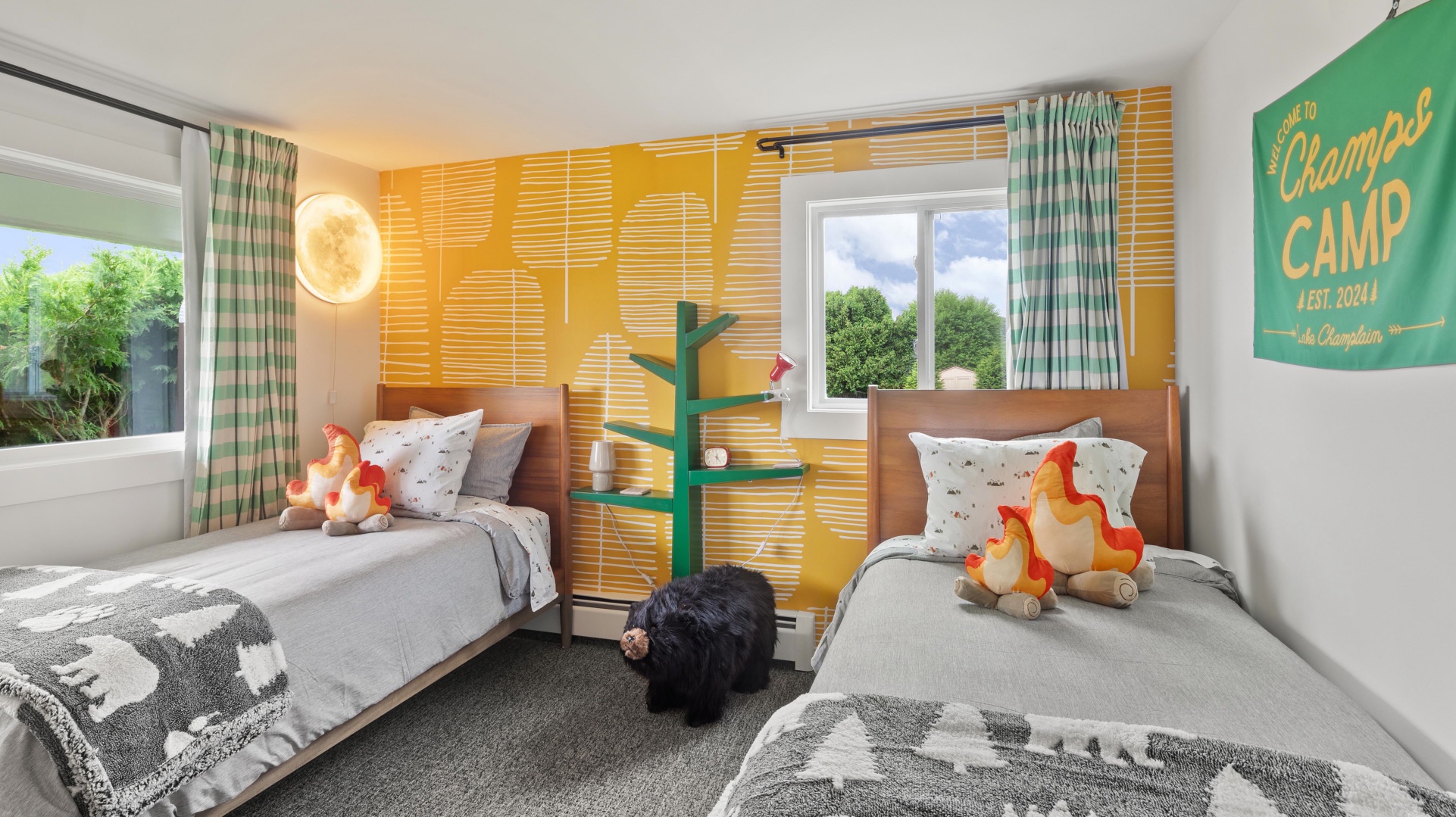 Champ’s Landing Home Vermont Lake Champlain Champ's Landing Champ's Landing Bright, Spacious Living Room with Large windows and views of Lake Champlain Enjoy a family meal together around the dining room table with extra seating at the breakfast bar Family memories with S'mores in the back yard Spacious finished basement with air hockey, darts, tv, and fireplace Picturesque Lake Champlain just steps away Open Gallery Bright, Spacious Living Room with Large windows and views of Lake Champlain Enjoy a family meal together around the dining room table with extra seating at the breakfast bar Family memories with S'mores in the back yard Spacious finished basement with air hockey, darts, tv, and fireplace Picturesque Lake Champlain just steps away Relax on the front porch, overlooking beautiful Lake Champlain Take in Lake Champlain with a walk on the beach, only a block from the house Conveniently located just one block from the bike path with easy access to the Causeway Breakfast bar pulls the kitchen and dining area together Main floor is open living room/dining room space, ideal to bring everyone together Views of Lake Champlain during Breakfaast Airy and open first floor dining area Open space with lots of room for all your family meals Large windows bring light into the dining room Additional seating at breakfast bar between kitchen and dining area Lots of room for a family meal together Enjoy the beauty of Lake Champlain from the living room Cozy living room with fireplace and large windows with views of the lake Local driftwood sculpture adorns the living room wall Spacious living Room with Views of Lake Champlain Plenty of seating in the living room for all your family Gather in front of the beautiful fireplace, after a long day of activities Enjoy views of the backyard from the kitchen Remodeled kitchen with stainless appliances Stainless appliances and gas stove Beautiful kitchen leads into den area with Comfy couch and TV TV in Den area, off kitchen Curl up in the cozy den to watch your favorite movie Vermont Decor in cozy Den Relax in the sunny den, lot of space for your family to spread out Dedicated office space off living/dining area Primary bedroom with King Bed, ensuite and TV Primary Bedroom Primary Suite, with King Bed and en suite Full Bath Bright and spacious primary bedroom with en suite bathroom New updates add to the home's charm Updated full bath, with shower/tub combination Bedroom 2 - A King bed for a restful night's sleep Bright and comfortable Bedroom 2 Each bedroom has its own TV Bedroom 3 - 2 Twin Beds plus one pull out, twin trundle Bedroom 3 -Bright and fun, perfect for kids Bedroom #3 Whimsical Twin room, complete with black bear stool Kids will love the outdoor themed bedroom Finished basement with space for watching a movie or playing games Bullseye! Challenge your friends at a game of darts Gather on the comfy sectional couch to watch your favorite movie Gas fireplace for ambiance, while playing board games Air Hockey for fun family competition! Fun Family Competition with Air Hickey and Darts in the basement Basement level also has a Queen-size futon for additional sleeping space Tired from all that air hockey? Take a nap on the Queen-sized Futon Enjoy some yoga or meditation in the walkout basement TV in the kids room Bathroom 2 - Updated fixtures and lighting with stand up shower The Front Deck is a peaceful place to take in views of the lake Hang out on the back patio, while grilling dinner Store all your essentials in this mudroom/pantry, just inside the door Desk, office chair and computer monitor for dedicated office space Updated Mid-Century Home Private laundry in the basement, new, full-sized machines Private home located in neighborhood close to the beach Spacious backyard with firepit for gatherings of family and friends Gallery View Colchester, VT 3 Bedrooms 1 full, 1 three-quarter Baths 8 Guests 1750 sq. ft. Pets OK Description Rooms Amenities Reviews Calendar Location MRT-11088876 Welcome to your ideal getaway! Updated mid-century home blends classic charm with modern amenities, a block from the water and bike path. It has 3 bedrooms, 2 bathrooms, and bonus rooms in the basement for fun. Relax by the fireplace in the living room, enjoy the smart TV in the den, or cook outdoors with the gas grill and fire pit. Basement offers a Queen futon, gas fireplace, air hockey, dartboard, and TV. Perfect for beach access, biking, and nearby skiing, within 40-75 minutes. Only ONE dog is allowed per unit. No biters, no barkers. Dog MUST be crated when left alone. Dog is not allowed on the furniture. Please pick up after the dog, no more than 1 DOG per unit. NO other animals. $125 dollar non-refundable pet fee will apply. Please notify the manager you are bringing a dog. Note: The home has a window AC unit that helps keep the whole house cool, but it's not central air and not in every bedroom. It makes hot days comfortable, though it won't get as cold as central AC. Rooms Primary 1 King Bedroom 2 1 King Bedroom 3 3 Twin Amenities Bedroom & Laundry Bed Linens Dryer - Private Essentials Extra Pillows & Blankets Hangers Iron & Ironing Board Towels Wardrobe or Closet Washer - Private Cleanliness & Safety Carbon Monoxide Detector Self Check-In & Check-Out Common Surfaces Disinfected Deadbolt Lock Fire Extinguisher First Aid Kit Outdoor Lighting Smoke Detector Bathroom Bathtub Body Soap Combo Bathtub & Shower Conditioner Hair Dryer Hot Water Shampoo Entertainment Game Room Games Smart TV Sound System TV Internet & Office Computer Monitor Desk Desk Chair Laptop Friendly Workspace Wifi Wifi - Free Wifi - Speed 250mbps Kitchen & Dining Baking Sheet BBQ Grill Utensils Blender Coffee Maker Cooking Basics Dining Area or Room Dining table Dishes & Silverware Dishwasher Freezer Hot Water Kettle Ice Maker Kitchen Kitchen Island Microwave Oven Refrigerator Spices Stove Toaster Wine Glasses Location & Attractions Bay Beach Access Car - Recommended Family Themed Lake Acce
