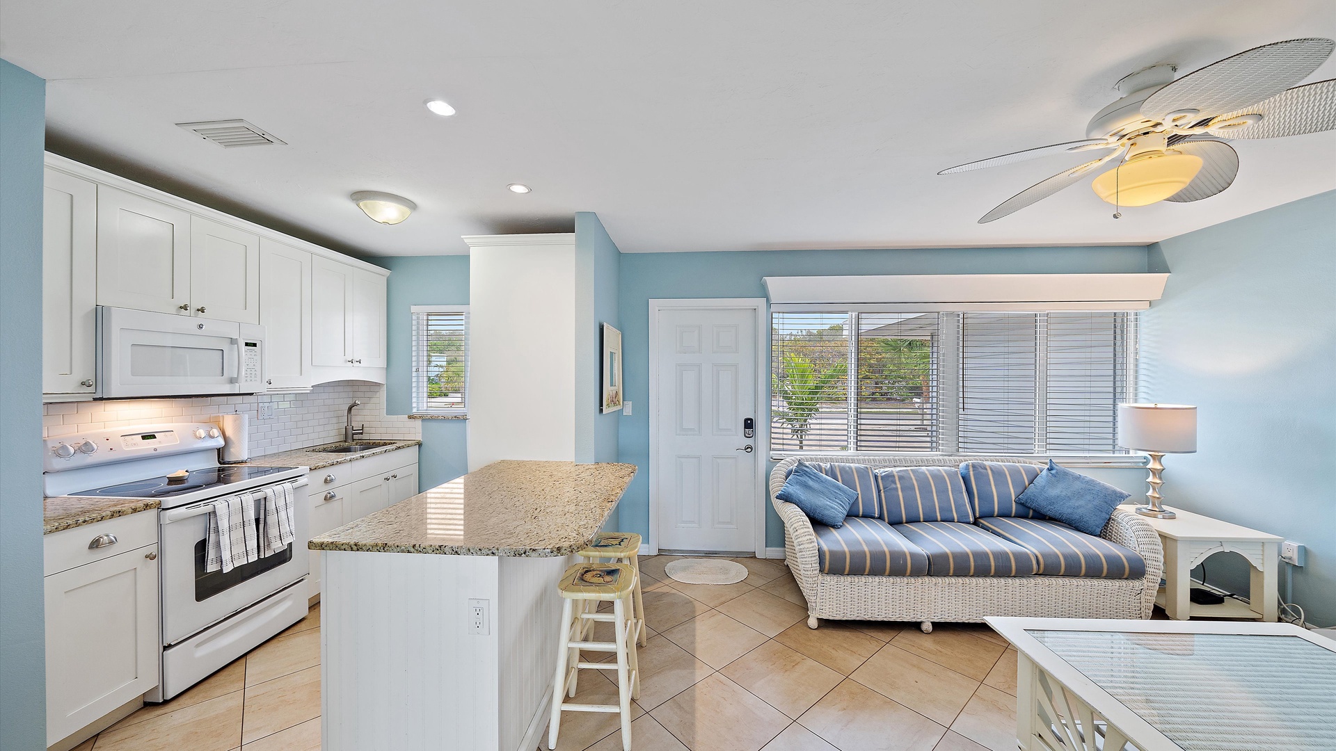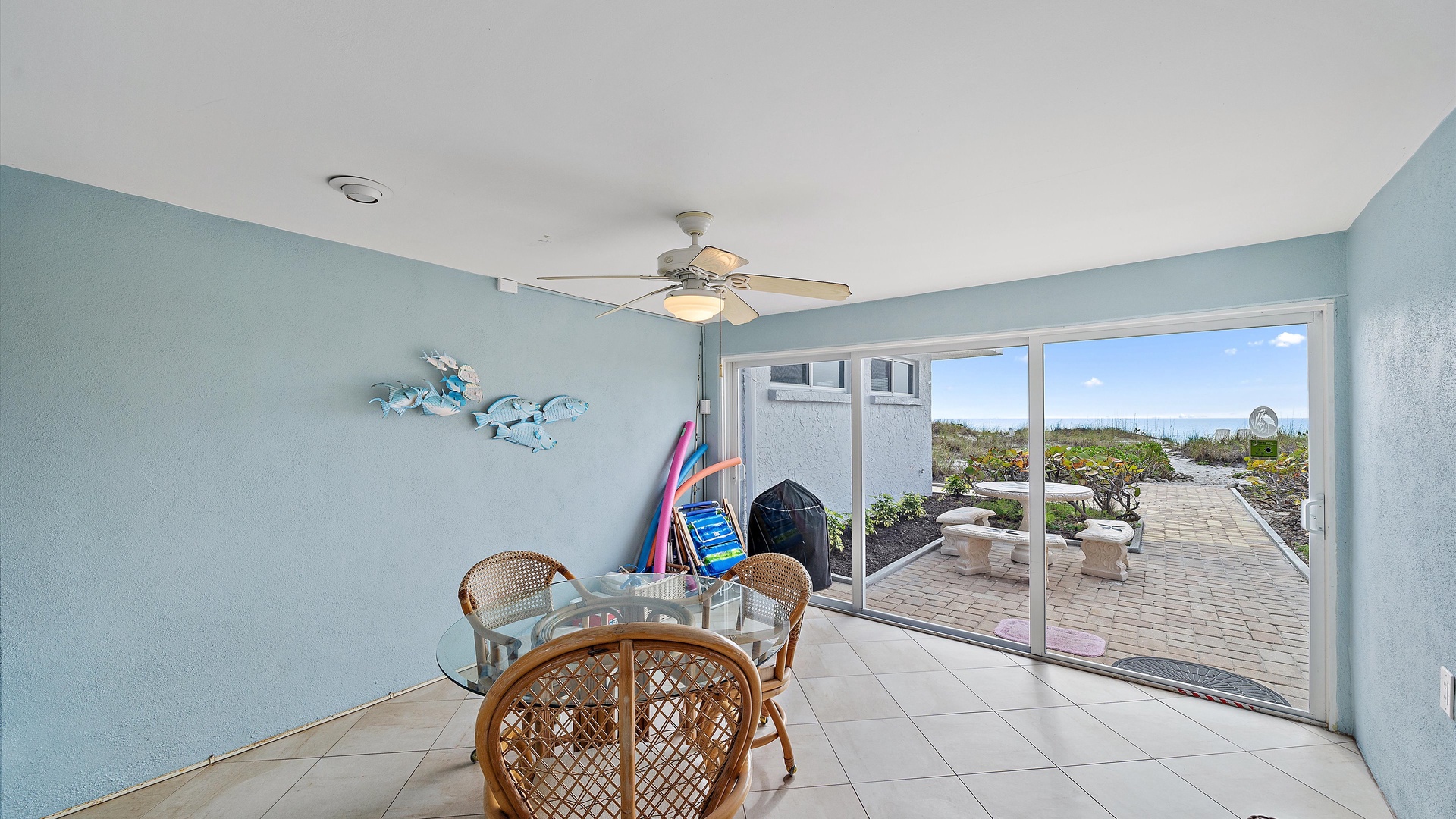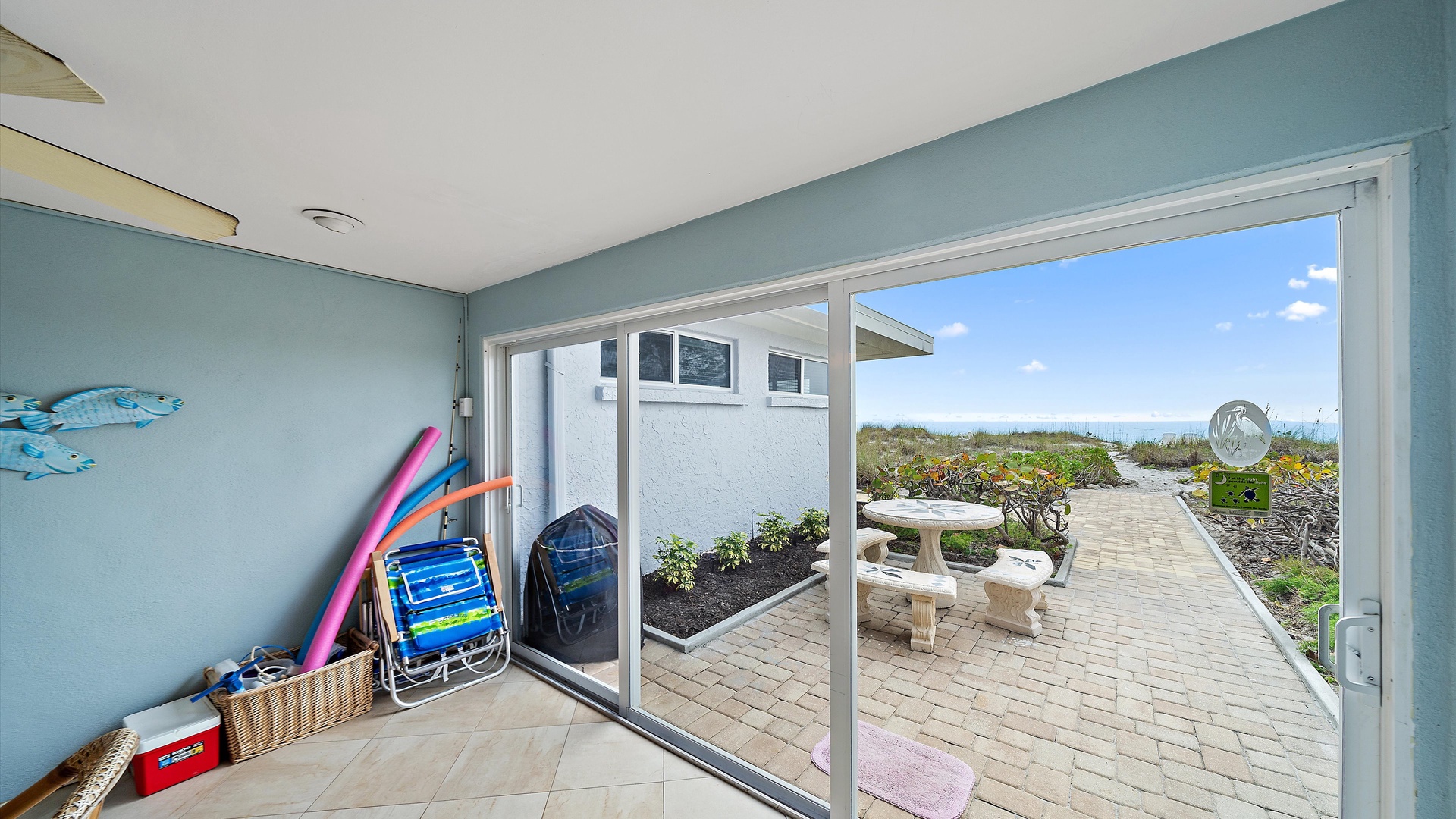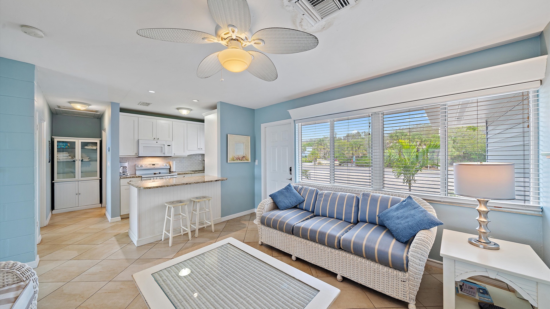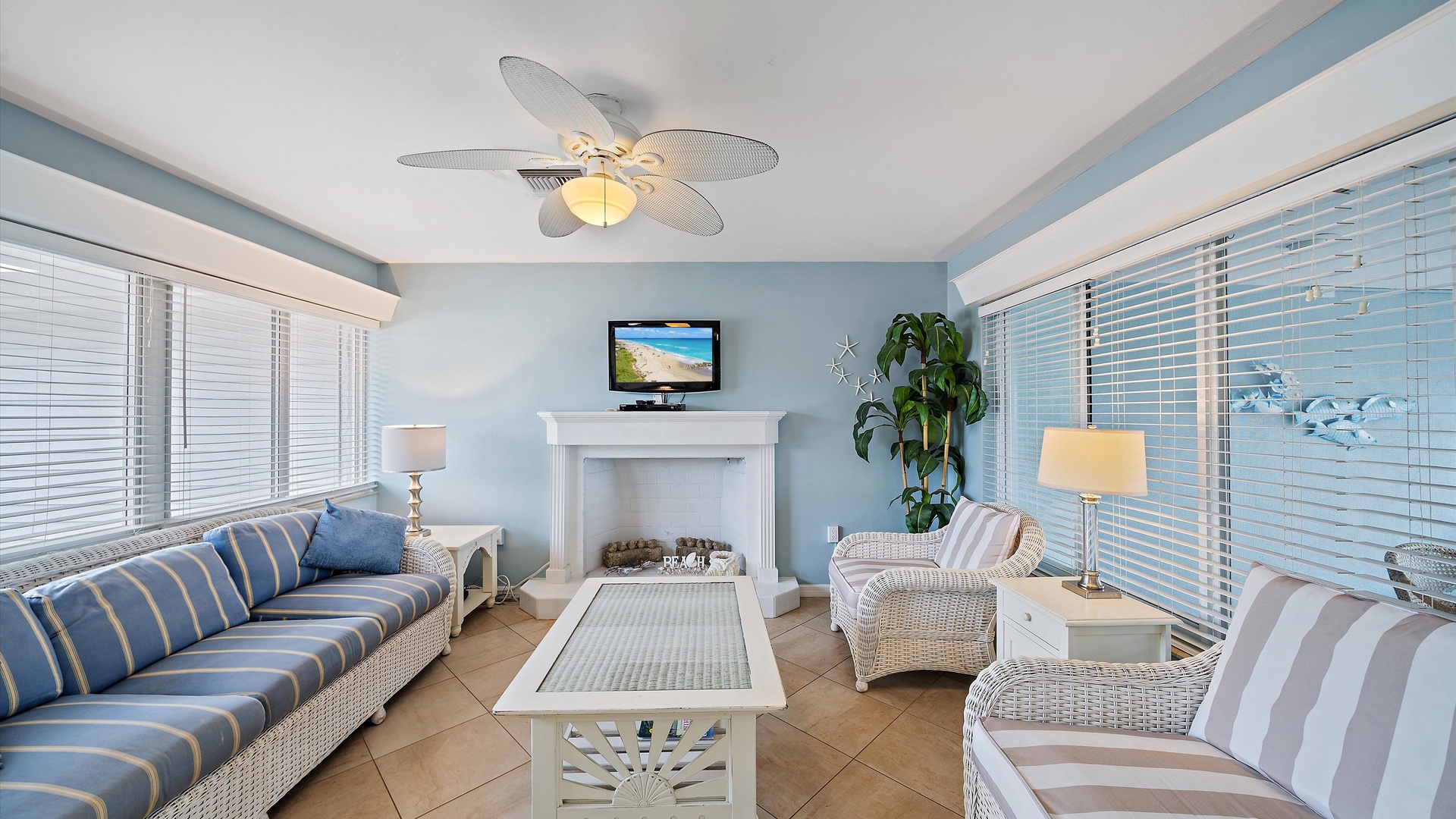 Las Hermanas 2 Home Florida Longboat Key Las Hermanas 2 Back to Search Results Las Hermanas 2 A cozy living room with light blue walls, white furniture, a ceiling fan, a TV above the fireplace, and large windows showcasing an outdoor view. A potted plant is beside the fireplace. A bedroom with a king-size bed featuring floral bedding, and flanked by two bedside tables with lamps. There is a ceiling fan, a chest of drawers on the left, and a window with outdoor views. A single-story beachfront house with a gray roof and a landscaped front yard, featuring a single SUV parked in the driveway. The ocean is visible in the background under a blue sky. A sunroom with light blue walls featuring a glass-top table with four wicker chairs, a wicker bench, a ceiling fan, and decorative fish on the wall. Windows and a door provide a view of another room. A compact kitchen with light blue walls, white cabinets, and granite countertops. There is a microwave, stove, and a small dining area with two stools. A cabinet with towels is visible in the background. Open Gallery A cozy living room with light blue walls, white furniture, a ceiling fan, a TV above the fireplace, and large windows showcasing an outdoor view. A potted plant is beside the fireplace. A bedroom with a king-size bed featuring floral bedding, and flanked by two bedside tables with lamps. There is a ceiling fan, a chest of drawers on the left, and a window with outdoor views. A single-story beachfront house with a gray roof and a landscaped front yard, featuring a single SUV parked in the driveway. The ocean is visible in the background under a blue sky. A sunroom with light blue walls featuring a glass-top table with four wicker chairs, a wicker bench, a ceiling fan, and decorative fish on the wall. Windows and a door provide a view of another room. A compact kitchen with light blue walls, white cabinets, and granite countertops. There is a microwave, stove, and a small dining area with two stools. A cabinet with towels is visible in the background. A clean bathroom features a granite countertop sink, a tiled bathtub with a curtain, a wall-mounted showerhead, a white towel on a rack, and a window with white shutters above the bathtub. White lounge chairs arranged on a sandy beach with grassy patches in the foreground and trees and buildings in the background under a blue sky. A light blue living room with a striped couch, wicker chairs, coffee table, plants, and a small TV above a white fireplace. Large windows with blinds let in natural light. A bright living room features wicker furniture, a glass coffee table, two lamps, a plant, and a small TV above a white fireplace. Large windows with blinds let in natural light. Cozy living room with blue walls, white furniture, a ceiling fan, and a wall-mounted TV above a fireplace. Large windows and a glass-top coffee table add a bright and airy feel. A brightly lit living room with blue walls, a white wicker couch with blue cushions, a glass coffee table, and large windows with blinds. The open kitchen features white cabinets and a small breakfast bar. A beach-themed living area with blue walls, striped armchairs, a ceiling fan, a small kitchen with white cabinets, and a breakfast bar with two stools. Blinds cover the window, showing an outdoor view. A small kitchen and living area with blue walls, white cabinets, a striped blue couch, a ceiling fan, a window, and a white door. Two stools are by the kitchen counter. The room is well-lit. A small living area with a fireplace, a TV mounted above it, and wicker furniture. The room has blue walls, a ceiling fan, and large windows with white blinds. A granite counter is at the foreground. A bright living room with blue walls, a ceiling fan, and a wall-mounted TV. The room has white furniture and leads into a bedroom with floral bedding. A granite kitchen island is also visible. A small, well-lit kitchen with white cabinets, granite countertops, a white electric stove, microwave, and a coffee maker. A window with blinds overlooks greenery outside. A small kitchen features white cabinets, a granite countertop, a microwave above an electric stove, a coffee maker, and a sink by a window with blinds. A modern kitchen features granite countertops, white cabinets, and stainless steel appliances including a stovetop and microwave. A door in the center leads to an adjacent room. A small kitchen with white cabinetry, granite countertops, a single-basin sink, a window with blinds, and a white refrigerator. A compact kitchen featuring a granite countertop with an electric stove, a built-in microwave, white cabinets, a coffee maker, a paper towel holder, and a sink with a gooseneck faucet. A room with two wicker chairs and a table, separated by blinds from a sunroom with a view of a patio and garden. A lamp and a potted plant are next to the chairs. A room with a glass dining table and chairs, a ceiling fan, and sliding doors opening to a patio with outdoor furniture. A window with blinds is on the right. Beach and ocean visible outside. A room with pale blue walls, a ceiling fan, a glass-top table with wicker chairs, a wicker bench, a window, and French doors leading to a patio. Decorative fish adorn the wall. A sunroom with sliding glass doors opens to a patio area featuring a white picnic table set on a brick pathway, overlooking a scenic ocean view. Beach accessories like chairs, noodles, and a boogie board are stored in the corner. A dining area with a glass table and wicker chairs overlooks a patio through sliding glass doors. Surfboards, a decorative fish sculpture, and a ceiling fan are visible. The ocean is in the background. Indoor patio with ceiling fan, glass dining table, and wicker chairs. Sliding doors lead to outdoor seating, beach gear is stored around the room. View of the ocean through glass doors. A sunroom features a glass-top table with four wicker chairs, wall-mounted decorations, a ceiling fan, and a basket of pool noodles. A window and d