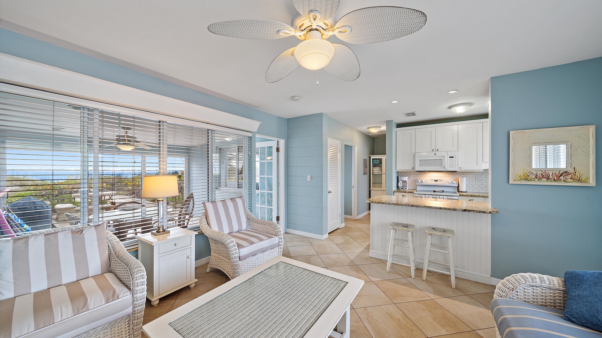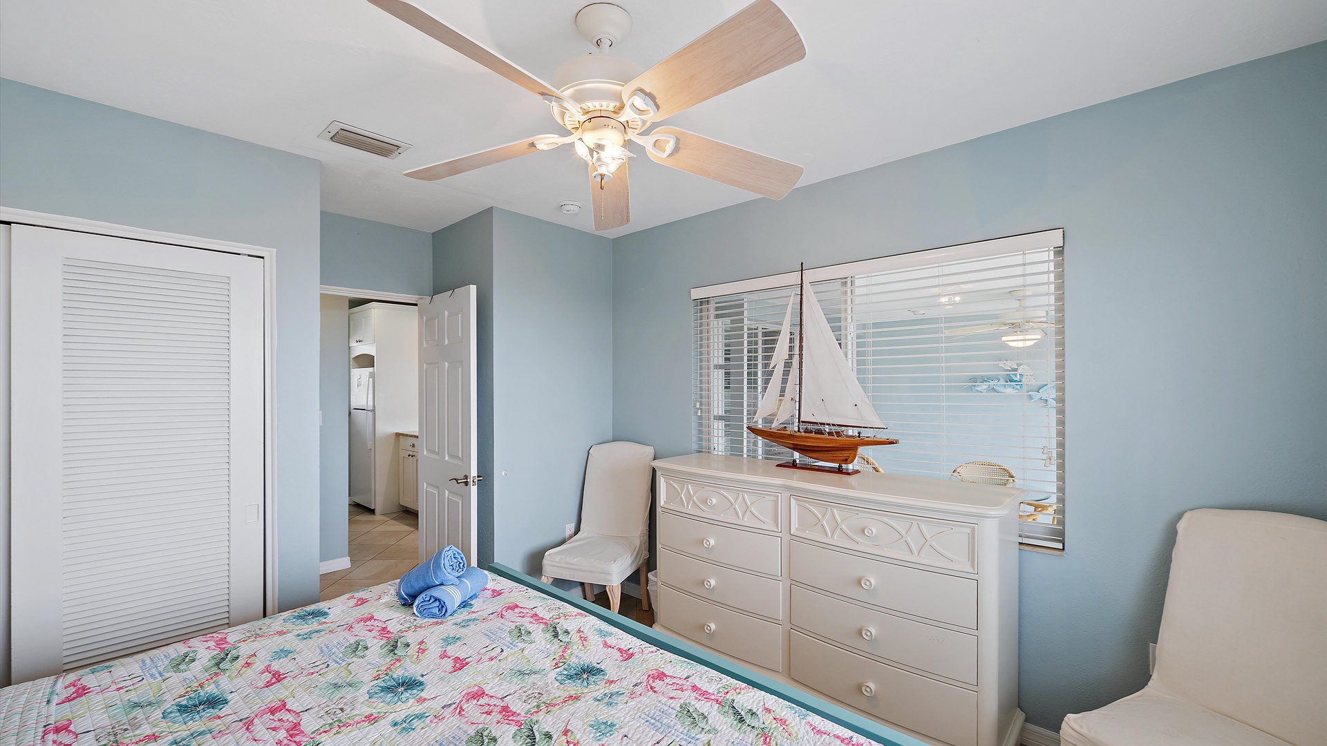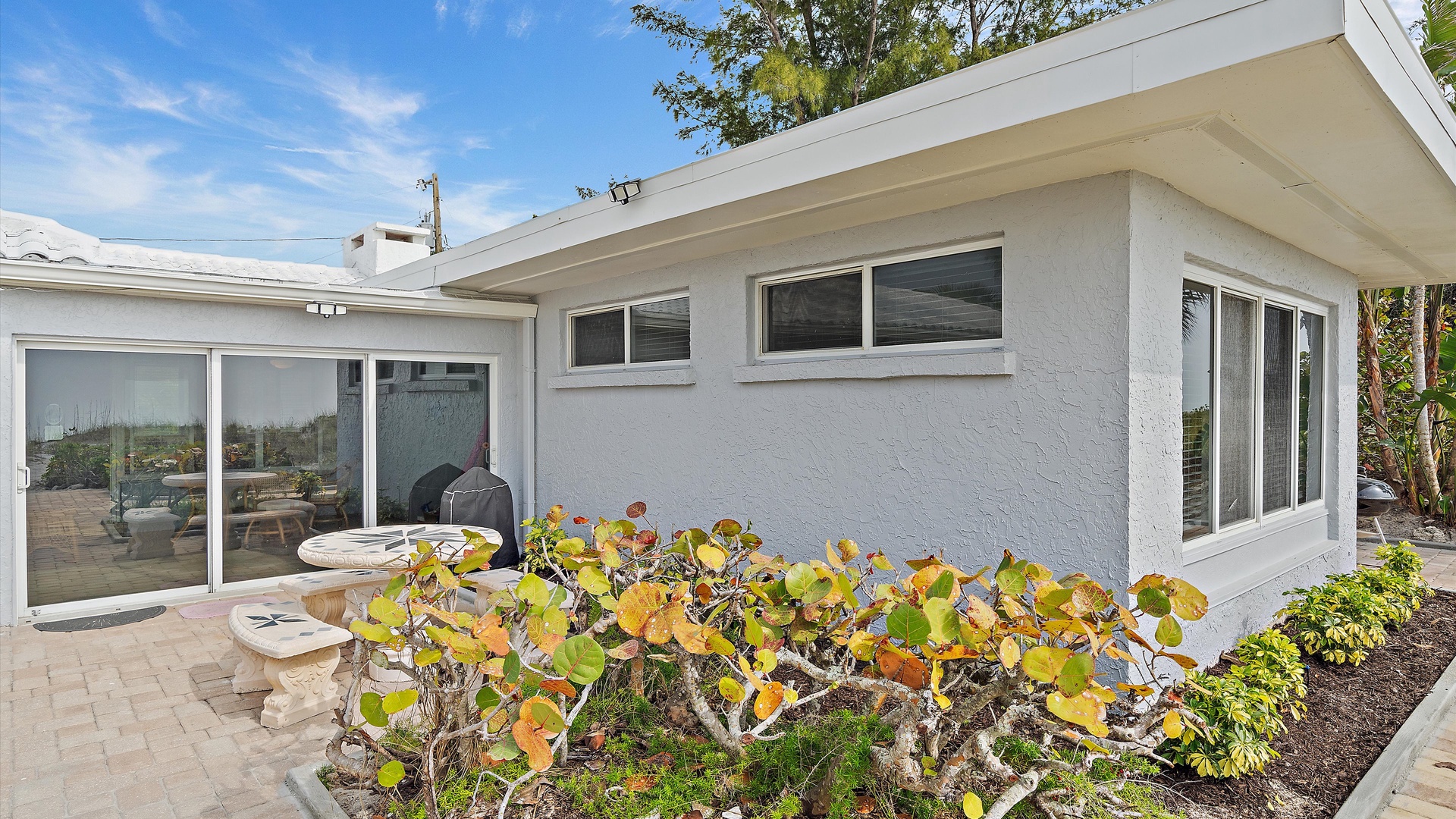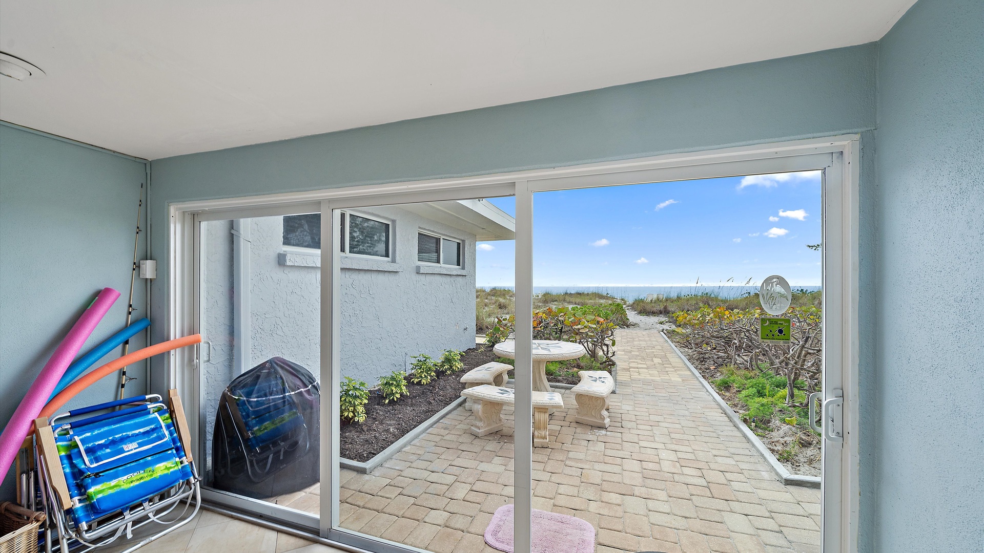 Las Hermanas 2 Home Florida Longboat Key Las Hermanas 2 Back to Search Results Las Hermanas 2 A cozy living room with light blue walls, white furniture, a ceiling fan, a TV above the fireplace, and large windows showcasing an outdoor view. A potted plant is beside the fireplace. A bedroom with a king-size bed featuring floral bedding, and flanked by two bedside tables with lamps. There is a ceiling fan, a chest of drawers on the left, and a window with outdoor views. A single-story beachfront house with a gray roof and a landscaped front yard, featuring a single SUV parked in the driveway. The ocean is visible in the background under a blue sky. A sunroom with light blue walls featuring a glass-top table with four wicker chairs, a wicker bench, a ceiling fan, and decorative fish on the wall. Windows and a door provide a view of another room. A compact kitchen with light blue walls, white cabinets, and granite countertops. There is a microwave, stove, and a small dining area with two stools. A cabinet with towels is visible in the background. Open Gallery A cozy living room with light blue walls, white furniture, a ceiling fan, a TV above the fireplace, and large windows showcasing an outdoor view. A potted plant is beside the fireplace. A bedroom with a king-size bed featuring floral bedding, and flanked by two bedside tables with lamps. There is a ceiling fan, a chest of drawers on the left, and a window with outdoor views. A single-story beachfront house with a gray roof and a landscaped front yard, featuring a single SUV parked in the driveway. The ocean is visible in the background under a blue sky. A sunroom with light blue walls featuring a glass-top table with four wicker chairs, a wicker bench, a ceiling fan, and decorative fish on the wall. Windows and a door provide a view of another room. A compact kitchen with light blue walls, white cabinets, and granite countertops. There is a microwave, stove, and a small dining area with two stools. A cabinet with towels is visible in the background. A clean bathroom features a granite countertop sink, a tiled bathtub with a curtain, a wall-mounted showerhead, a white towel on a rack, and a window with white shutters above the bathtub. White lounge chairs arranged on a sandy beach with grassy patches in the foreground and trees and buildings in the background under a blue sky. A light blue living room with a striped couch, wicker chairs, coffee table, plants, and a small TV above a white fireplace. Large windows with blinds let in natural light. A bright living room features wicker furniture, a glass coffee table, two lamps, a plant, and a small TV above a white fireplace. Large windows with blinds let in natural light. Cozy living room with blue walls, white furniture, a ceiling fan, and a wall-mounted TV above a fireplace. Large windows and a glass-top coffee table add a bright and airy feel. A brightly lit living room with blue walls, a white wicker couch with blue cushions, a glass coffee table, and large windows with blinds. The open kitchen features white cabinets and a small breakfast bar. A beach-themed living area with blue walls, striped armchairs, a ceiling fan, a small kitchen with white cabinets, and a breakfast bar with two stools. Blinds cover the window, showing an outdoor view. A small kitchen and living area with blue walls, white cabinets, a striped blue couch, a ceiling fan, a window, and a white door. Two stools are by the kitchen counter. The room is well-lit. A small living area with a fireplace, a TV mounted above it, and wicker furniture. The room has blue walls, a ceiling fan, and large windows with white blinds. A granite counter is at the foreground. A bright living room with blue walls, a ceiling fan, and a wall-mounted TV. The room has white furniture and leads into a bedroom with floral bedding. A granite kitchen island is also visible. A small, well-lit kitchen with white cabinets, granite countertops, a white electric stove, microwave, and a coffee maker. A window with blinds overlooks greenery outside. A small kitchen features white cabinets, a granite countertop, a microwave above an electric stove, a coffee maker, and a sink by a window with blinds. A modern kitchen features granite countertops, white cabinets, and stainless steel appliances including a stovetop and microwave. A door in the center leads to an adjacent room. A small kitchen with white cabinetry, granite countertops, a single-basin sink, a window with blinds, and a white refrigerator. A compact kitchen featuring a granite countertop with an electric stove, a built-in microwave, white cabinets, a coffee maker, a paper towel holder, and a sink with a gooseneck faucet. A room with two wicker chairs and a table, separated by blinds from a sunroom with a view of a patio and garden. A lamp and a potted plant are next to the chairs. A room with a glass dining table and chairs, a ceiling fan, and sliding doors opening to a patio with outdoor furniture. A window with blinds is on the right. Beach and ocean visible outside. A room with pale blue walls, a ceiling fan, a glass-top table with wicker chairs, a wicker bench, a window, and French doors leading to a patio. Decorative fish adorn the wall. A sunroom with sliding glass doors opens to a patio area featuring a white picnic table set on a brick pathway, overlooking a scenic ocean view. Beach accessories like chairs, noodles, and a boogie board are stored in the corner. A dining area with a glass table and wicker chairs overlooks a patio through sliding glass doors. Surfboards, a decorative fish sculpture, and a ceiling fan are visible. The ocean is in the background. Indoor patio with ceiling fan, glass dining table, and wicker chairs. Sliding doors lead to outdoor seating, beach gear is stored around the room. View of the ocean through glass doors. A sunroom features a glass-top table with four wicker chairs, wall-mounted decorations, a ceiling fan, and a basket of pool noodles. A window and d