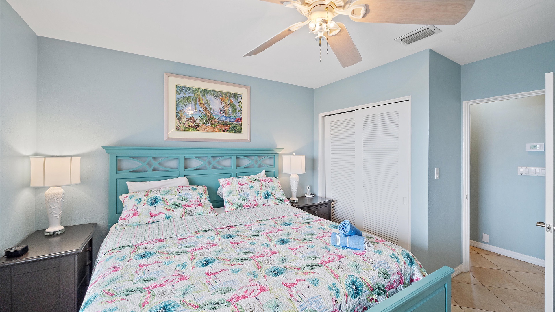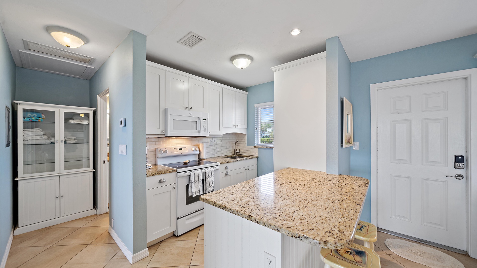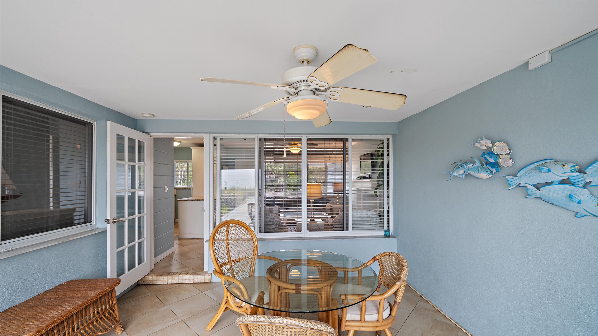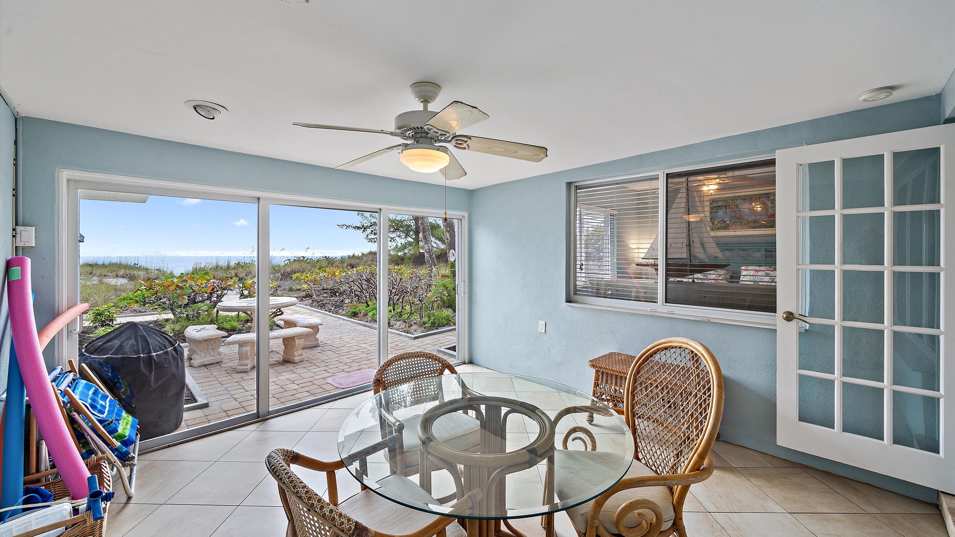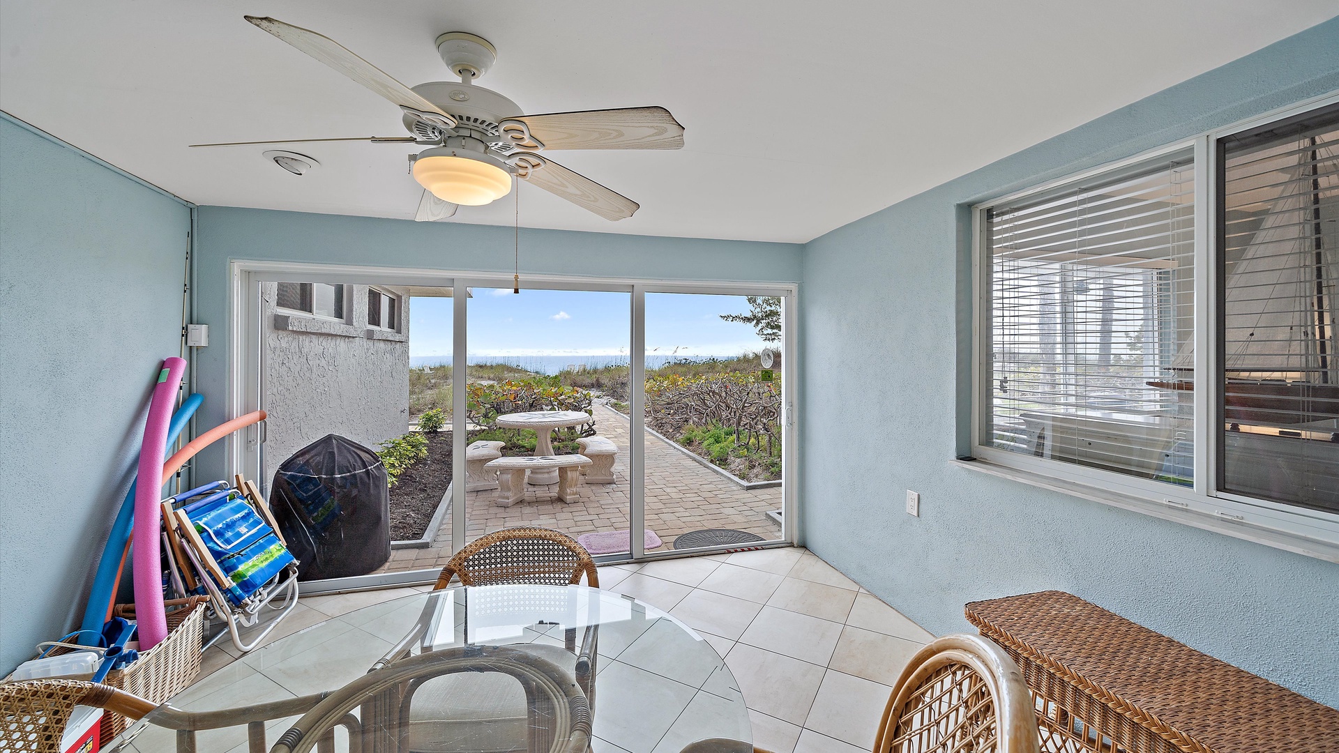 Las Hermanas 2 Home Florida Longboat Key Las Hermanas 2 Back to Search Results Las Hermanas 2 A cozy living room with light blue walls, white furniture, a ceiling fan, a TV above the fireplace, and large windows showcasing an outdoor view. A potted plant is beside the fireplace. A bedroom with a king-size bed featuring floral bedding, and flanked by two bedside tables with lamps. There is a ceiling fan, a chest of drawers on the left, and a window with outdoor views. A single-story beachfront house with a gray roof and a landscaped front yard, featuring a single SUV parked in the driveway. The ocean is visible in the background under a blue sky. A sunroom with light blue walls featuring a glass-top table with four wicker chairs, a wicker bench, a ceiling fan, and decorative fish on the wall. Windows and a door provide a view of another room. A compact kitchen with light blue walls, white cabinets, and granite countertops. There is a microwave, stove, and a small dining area with two stools. A cabinet with towels is visible in the background. Open Gallery A cozy living room with light blue walls, white furniture, a ceiling fan, a TV above the fireplace, and large windows showcasing an outdoor view. A potted plant is beside the fireplace. A bedroom with a king-size bed featuring floral bedding, and flanked by two bedside tables with lamps. There is a ceiling fan, a chest of drawers on the left, and a window with outdoor views. A single-story beachfront house with a gray roof and a landscaped front yard, featuring a single SUV parked in the driveway. The ocean is visible in the background under a blue sky. A sunroom with light blue walls featuring a glass-top table with four wicker chairs, a wicker bench, a ceiling fan, and decorative fish on the wall. Windows and a door provide a view of another room. A compact kitchen with light blue walls, white cabinets, and granite countertops. There is a microwave, stove, and a small dining area with two stools. A cabinet with towels is visible in the background. A clean bathroom features a granite countertop sink, a tiled bathtub with a curtain, a wall-mounted showerhead, a white towel on a rack, and a window with white shutters above the bathtub. White lounge chairs arranged on a sandy beach with grassy patches in the foreground and trees and buildings in the background under a blue sky. A light blue living room with a striped couch, wicker chairs, coffee table, plants, and a small TV above a white fireplace. Large windows with blinds let in natural light. A bright living room features wicker furniture, a glass coffee table, two lamps, a plant, and a small TV above a white fireplace. Large windows with blinds let in natural light. Cozy living room with blue walls, white furniture, a ceiling fan, and a wall-mounted TV above a fireplace. Large windows and a glass-top coffee table add a bright and airy feel. A brightly lit living room with blue walls, a white wicker couch with blue cushions, a glass coffee table, and large windows with blinds. The open kitchen features white cabinets and a small breakfast bar. A beach-themed living area with blue walls, striped armchairs, a ceiling fan, a small kitchen with white cabinets, and a breakfast bar with two stools. Blinds cover the window, showing an outdoor view. A small kitchen and living area with blue walls, white cabinets, a striped blue couch, a ceiling fan, a window, and a white door. Two stools are by the kitchen counter. The room is well-lit. A small living area with a fireplace, a TV mounted above it, and wicker furniture. The room has blue walls, a ceiling fan, and large windows with white blinds. A granite counter is at the foreground. A bright living room with blue walls, a ceiling fan, and a wall-mounted TV. The room has white furniture and leads into a bedroom with floral bedding. A granite kitchen island is also visible. A small, well-lit kitchen with white cabinets, granite countertops, a white electric stove, microwave, and a coffee maker. A window with blinds overlooks greenery outside. A small kitchen features white cabinets, a granite countertop, a microwave above an electric stove, a coffee maker, and a sink by a window with blinds. A modern kitchen features granite countertops, white cabinets, and stainless steel appliances including a stovetop and microwave. A door in the center leads to an adjacent room. A small kitchen with white cabinetry, granite countertops, a single-basin sink, a window with blinds, and a white refrigerator. A compact kitchen featuring a granite countertop with an electric stove, a built-in microwave, white cabinets, a coffee maker, a paper towel holder, and a sink with a gooseneck faucet. A room with two wicker chairs and a table, separated by blinds from a sunroom with a view of a patio and garden. A lamp and a potted plant are next to the chairs. A room with a glass dining table and chairs, a ceiling fan, and sliding doors opening to a patio with outdoor furniture. A window with blinds is on the right. Beach and ocean visible outside. A room with pale blue walls, a ceiling fan, a glass-top table with wicker chairs, a wicker bench, a window, and French doors leading to a patio. Decorative fish adorn the wall. A sunroom with sliding glass doors opens to a patio area featuring a white picnic table set on a brick pathway, overlooking a scenic ocean view. Beach accessories like chairs, noodles, and a boogie board are stored in the corner. A dining area with a glass table and wicker chairs overlooks a patio through sliding glass doors. Surfboards, a decorative fish sculpture, and a ceiling fan are visible. The ocean is in the background. Indoor patio with ceiling fan, glass dining table, and wicker chairs. Sliding doors lead to outdoor seating, beach gear is stored around the room. View of the ocean through glass doors. A sunroom features a glass-top table with four wicker chairs, wall-mounted decorations, a ceiling fan, and a basket of pool noodles. A window and d
