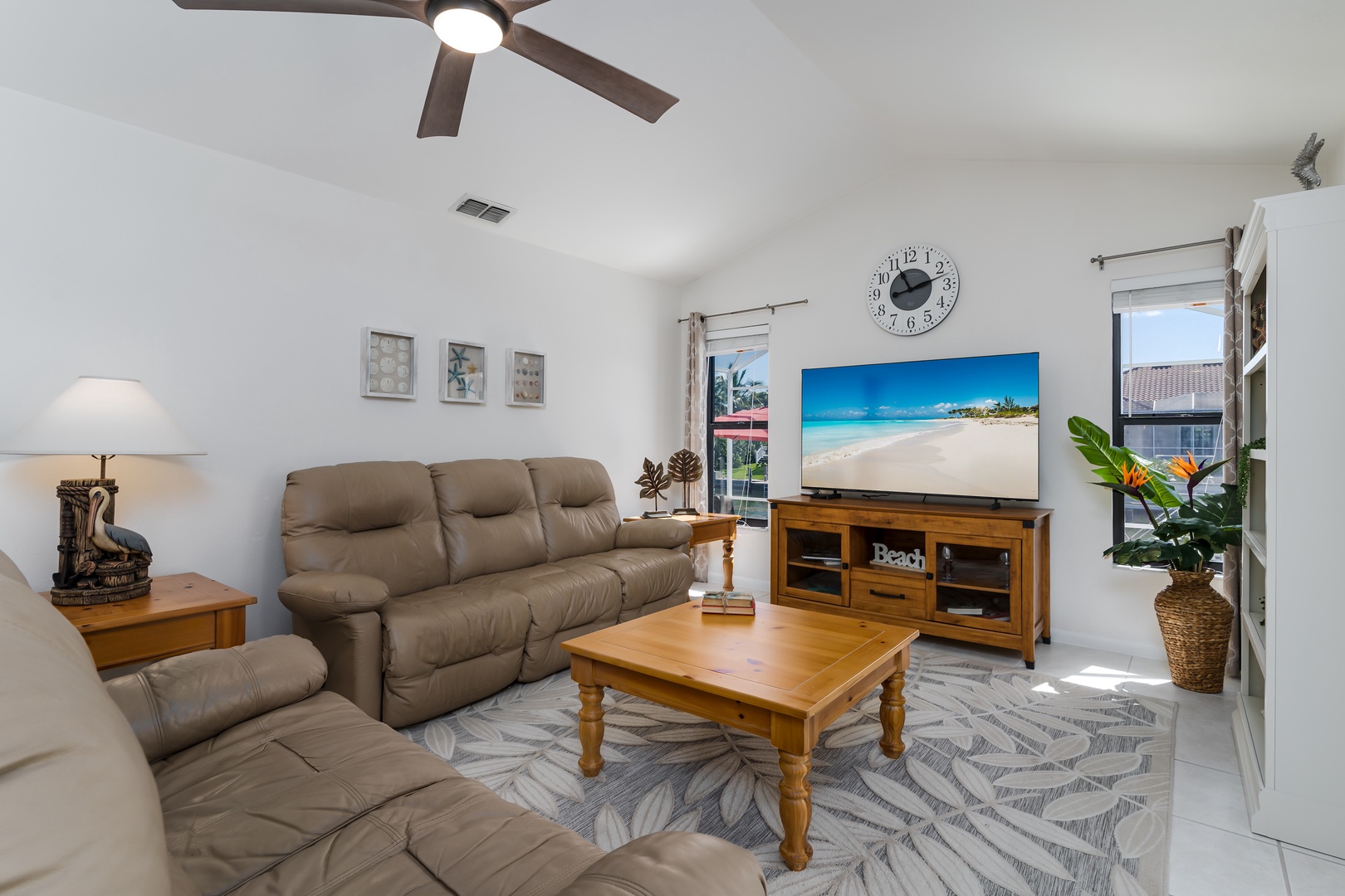 Canalside Comfort Haven Home Marco Island Canalside Comfort Haven Canalside Comfort Haven Canal Aerial West Facing Family Room With Lanai Slider Access Kitchen With Rustic Accent Ceiling Master Bedroom With Lanai Slider Access Twilight Palm Highlight Open Gallery Canal Aerial West Facing Family Room With Lanai Slider Access Kitchen With Rustic Accent Ceiling Master Bedroom With Lanai Slider Access Twilight Palm Highlight Living Room Entrance Access Living Room and Main Entrance Living Room Luxurious Leather Sectional Formal Dining Area With Lanai Slider Access Casual Dining Nook Off Kitchen and Family Room Family Room Leather Sofa and Smart TV Family Room Leather Loveseat and Lanai Slider Access Kitchen Bar and Prep Area Kitchen Cooking Nook Area Kitchen Galley Counter Master Bedroom King Master Bedroom Smart TV Master Bathroom Dual Vanity Master Bathroom Shower Guest Bedroom With Queen Queen Guest Bedroom With Closet Guest Bathroom Guest Bedroom Two Twins Twins Guest Bedroom With Closet Laundry Room Upper Lanai Covered Dining to Kitchen Pass-Through Upper Lanai Covered Great Room Upper Lanai Covered Dining Area Upper Lanai Covered Social Relaxation Area Lower Lanai Heated Pool Lower Lanai Sun and Shade Relaxation Lower Lanai and Sun Bathing Chaises Lounges Lower Lanai and Pool S Facing Lower Lanai and Pool N Facing Canal Dock SE Dock Sitting Area Canal and Dock N Facing Two Car Driveway Home Front Facing Curb Appeal Aerial Front Facing East Aerial SE Facing Aerial NE Facing Aerial NE Facing and Canal Aerial SE Facing and Canal Dock for Boat Tie-Off Aerial Canal View Aerial NW Canal View Aerial S Facing Canal Aerial Proximity Reference to Tigertail Beach Neighborhood Aerial SW to Tigertail Beach Neighborhood Aerial N to Collier and Marco Bays Neighborhood Aerial NW to Big Marco Pass Neighborhood Aerial W to Gulf of America Neighborhood Aerial NE to Factory Bay Neighborhood Aerial SE to Central Marco Island Neighborhood Aerial S to Residents Beach Neighborhood Aerial SW to South Seas and Gulf Gulf Facing Aerial South Point Facing Aerial Twilight Curb Appeal Twilight NE Facing Twilight Soft Architectural Lighting Twilight Aerial NE Facing Twilight Aerial E Facing Aerial Twilight Eastern Sky Twilight Lanai and Cage Twilight NW Lanai Twilight Pool and Cage Twilight Lower Lanai and Pool S Facing Twilight Lower Lanai and Pool N Facing Sunset Aerial Aerial Canal Sunset Aerial to Gulf View Sunset Sea Level Sunset Horizon Sunset American White Ibis Friends Wading Gallery View Marco Island, Florida 3 Bedrooms 2 full Baths 6 Guests 1722 sq. ft. Description Rooms Amenities Reviews Calendar Location Embrace your inner-island self by staying at this bright and charming cottage-esque single story home. This newly updated home combines the opulence of bright open gathering spaces along with the coziness of a canal feature residence. You will fall in love with the tastefully planned and manicured landscaping providing a welcoming curb appeal every time you arrive at your home away from home. The well designed floor plan flows around the chef-centric kitchen heart of the property. The living room and adjoined formal dining area flank the kitchen along with a more casual eating nook and homey family room where you can sink into the plush leather sofa and loveseat for a family-time popcorn riddled movie night. The kitchen is equipped with a generous prep’ and service bar area along with an efficiently co-located cooking area. And, in the event you need to service your tasty creations to the upper lanai, there is a convenient pass-through window above the sink to the outdoor covered dining area. At the end of your splendidly rollicking days, the king and queen of the roost can separate themselves and retire to the master suite while the kiddos and/or guests retreat to the opposite side of the house where two private bedrooms await. Outdoor Living at Its Best Your private backyard oasis offers two levels of Florida living: - The lower lanai features a heated mini-lap pool surrounded by ample space for lounging in the sun or relaxing in the shade. - The upper covered lanai is ideal for dining al fresco, sipping cocktails at sunset, or watching the big game on the outdoor TV. Whether it’s morning coffee, afternoon poolside fun, or stargazing at night, every moment feels like vacation. Location, Location, Location Tucked away on a quiet cul-de-sac in peaceful Northwest Marco Island, you’re just minutes from Tigertail Beach, island dining, shopping, and family-friendly attractions. Naples is a quick 30-minute drive, offering world-class shopping, art galleries, and fine dining. Love the outdoors? You’ll be in the perfect spot for boating, fishing, kayaking, and wildlife watching—keep an eye out for dolphins and manatees right from the dock! Why You’ll Love This Home - Tie off your boat at the private dock (no lifts available) - Spacious two-level lanai with covered dining and plenty of sunbathing space - High-speed internet for work or streaming - Peaceful, private location with cul-de-sac setting Good to Know - Boat lifts are not available for guest use - Per city regulations, boat trailers cannot be parked at the home (local marinas offer storage) - Marco Island has a 10:00 PM noise ordinance - Smoking or vaping is not permitted anywhere on the property With its unbeatable location, inviting layout, and island-style outdoor spaces, this home is more than just a vacation rental—it’s your personal port of call. Whether you’re seeking relaxation, family adventures, or a launchpad for exploring Southwest Florida, this property offers it all. Rooms Master Bedroom 1 King Guest Bedroom 1 Queen Guest Bedroom 2 Twin Amenities Sports, Leisure & Adventure Antiquing Bird Watching Boating Cycling Diving Eco Tourism Fishing Fishing - Bay Fishing - Deep Sea Fishing - Fly Fishing - Freshwater Fishing - Pier Fishing - Surf Gambling Golf Hiking Horseback Riding Jet Skiing Outlet Shopping Paddle Boating Parasail