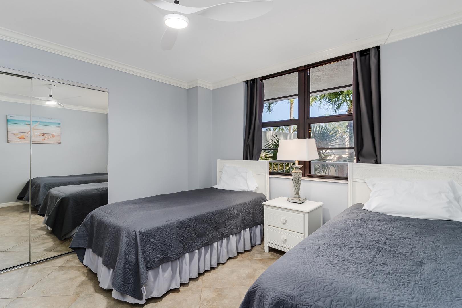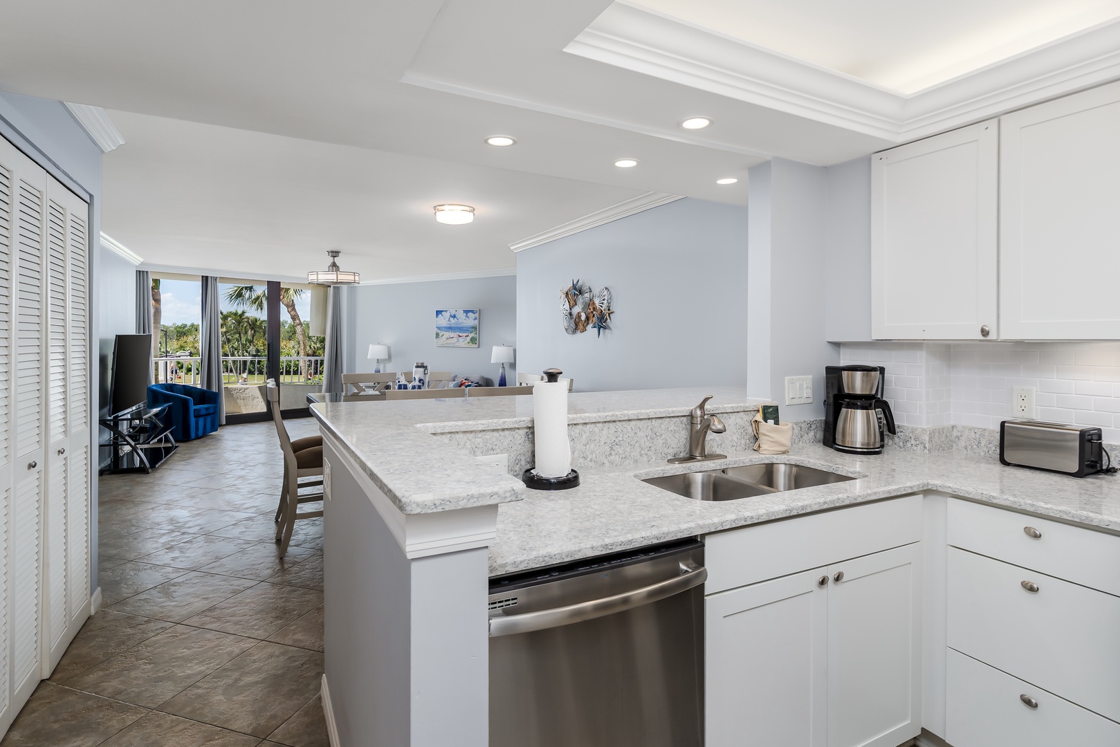 South Seas Beach Diversion Home Marco Island South Seas Beach Diversion South Seas Beach Diversion Living Area With Large Smart TV Dining Area_1 Living Area Access to Balcony Bedroom1_1 Crystal Blue Water Heated Pool Open Gallery Living Area With Large Smart TV Dining Area_1 Living Area Access to Balcony Bedroom1_1 Crystal Blue Water Heated Pool Living Area Great Room With Dining Pickle Ball 1 Living Area Open Floorplan Throughout Living Area_Trundle Bed Dining Area_2 Dining Area_Perspective Kitchen_1 Kitchen_2 Kitchen_Perspective Kitchen_3 In Unit Washer and Dryer Beach Diversion Master Bedroom King Bed Bedroom1_3 Bedroom1_4 Bathroom1_1 Bathroom1_2 Bedroom2_1 Bedroom2_2 Bedroom2_3 Bedroom2_4 Bathroom2_1 Bathroom2_2 Balcony_S Balcony_E Balcony_NE Balcony_Facing Parking Garage to Entrance Entry Steps Tower 4 Entrance Sign Lobby1 Lobby2 Pool W Facing Beach to Pool View Beach to Pool Access Pool South Facing Pool East View Pool NE View Pool Level Fitness Center Cabled Weights Fitness Center Entrance Fitness Center Cable Machine South Seas Community Courts Fitness Center Open Space Fitness Center Cardio Equipment Marina Northwest and West South Facing Pickle Ball Northwest Facing Tennis Courts Putting Green Waterfront South Facing Docks Dock Facility South Seas Club Entrance Guard Gate Tigertail Sea Level Sunset Horizon Sunset American White Ibis Friends Wading Gallery View Marco Island, Florida 2 Bedrooms 2 full Baths 5 Guests 1258 sq. ft. Description Rooms Amenities Reviews Calendar Location Coastal Elegance and Comfort – 2-Bedroom Condo in South Seas Club, Marco Island, FL Escape to paradise in this beautifully appointed 2-bedroom, 2-bathroom condominium retreat in the exclusive South Seas Club on Marco Island’s Gulf of America shores. Located in Tower 4, this gated beachfront community offers direct access to the seemingly endless pristine sands of Tigertail Beach, where you can bask in the sun with an engaging read, swim and frolic in the gulf waters, explore scenic nature walks, or indulge in the tranquil Gulf waters a mere five-minute walk to water’s edge. You may even find yourself lost in the moment and building a sandcastle to pass the time! Additionally, boat slips are available for rent which may just well suit visiting boating enthusiasts (for an additional fee). Inside, enjoy over 1,000 square feet of thoughtfully designed living space, featuring an open-concept great room that seamlessly connects to a well-equipped kitchen with a stylish bar—perfect for casual dining or evening cocktails. The tastefully furnished living area extends to a private pool-side balcony that faces the gulf for enjoying tranquil and relaxing sunsets, offering breathtaking coastal views and fresh aromatic ocean breezes. With accommodations for five guests, this condo is ideal for families or couples seeking a luxurious yet cozy retreat. The two serene bedrooms and two spa-inspired bathrooms provide the perfect balance of comfort and privacy. Each room is equipped with a tv for alone time or company viewing. As a bonus, being on the first floor of the building affords direct unit access without the need to enter the lobby or use the elevators . . . you’re just a few steps from the parking garage. Further, this is one of the few condos that boasts an in-unit washer and dryer for your laundering needs. Beyond the condo, immerse yourself in the resort-style amenities of South Seas Club, including a sparkling heated pool, fitness center, pickleball, tennis, bocce, and shuffleboard courts, along with a practice putting green and boat docks. Whether you enjoy fishing, boating, beachcombing, water sports, sightseeing, jet skiing, or cycling, you’ll find endless opportunities to choose your own adventure. Just moments away, discover Marco Island’s vibrant dining and shopping scene, where charming cafés, waterfront restaurants, and boutique shops await. Or, for a change of pace, plan a visit to learn more about Marco Island’s rich and well documented history at the Marco Island Historical Museum. In addition to the island’s obvious draws for vacationing you are a short drive away from the unique downtown culinary and shopping opportunities in the Naples area. Whether you're in the mood for a day of sunbathing on the beach, shopping at upscale boutiques, or dining at world-class restaurants, everything is within easy reach! Unwind in style, embrace the coastal beauty, and experience the best of Marco Island from this meticulously maintained vacation getaway. No matter the time of the year, you can book your stay today and discover the beauty and serenity of Marco Island and Naples from the comfort of this superb property. Why You’ll Love This Condo - Located on Tigertail Beach - Multitude of amenities to enjoy when not lounging or playing on the beach - Local Covered Parking Garage - Large Crystal Blue Water Heated Community Pool - Washer and Dryer located in-unit Good to Know - Guest check-in at Main Office (Tower 3) is required - Mandatory $100 parking registration fee per vehicle is required - Marco Island has a 10:00 PM noise ordinance - Smoking or vaping is not permitted anywhere on the property - Sea Turtle Nesting Season, May 1st - October 31st - Close window treatments by 9:00 PM - Turn off outdoor wall, ceiling, & balcony lighting by 9 PM There is a mandatory $100 parking fee, per vehicle, that is not included in the total cost of your stay that will be collected at the time of check-in by the South Seas Management Office. Rooms Living Room 1 Futon Master Bedroom 1 King Guest Bedroom 2 Twin Amenities Other Building, Complex Or Neighborhood Amenities Courtyard - Community Gym/Fitness Room - Community Tennis Court - Community Outdoor BBQ Grill - Community Kayak or Canoe Outdoor Seating & Furniture Patio or Balcony Sun Loungers Parking & Facilities Elevator Garage Parking - On Site Paid Pool & Spa Pool - Community Pool - Heated Services Site Staff - Available Location & Attractions Bay 
