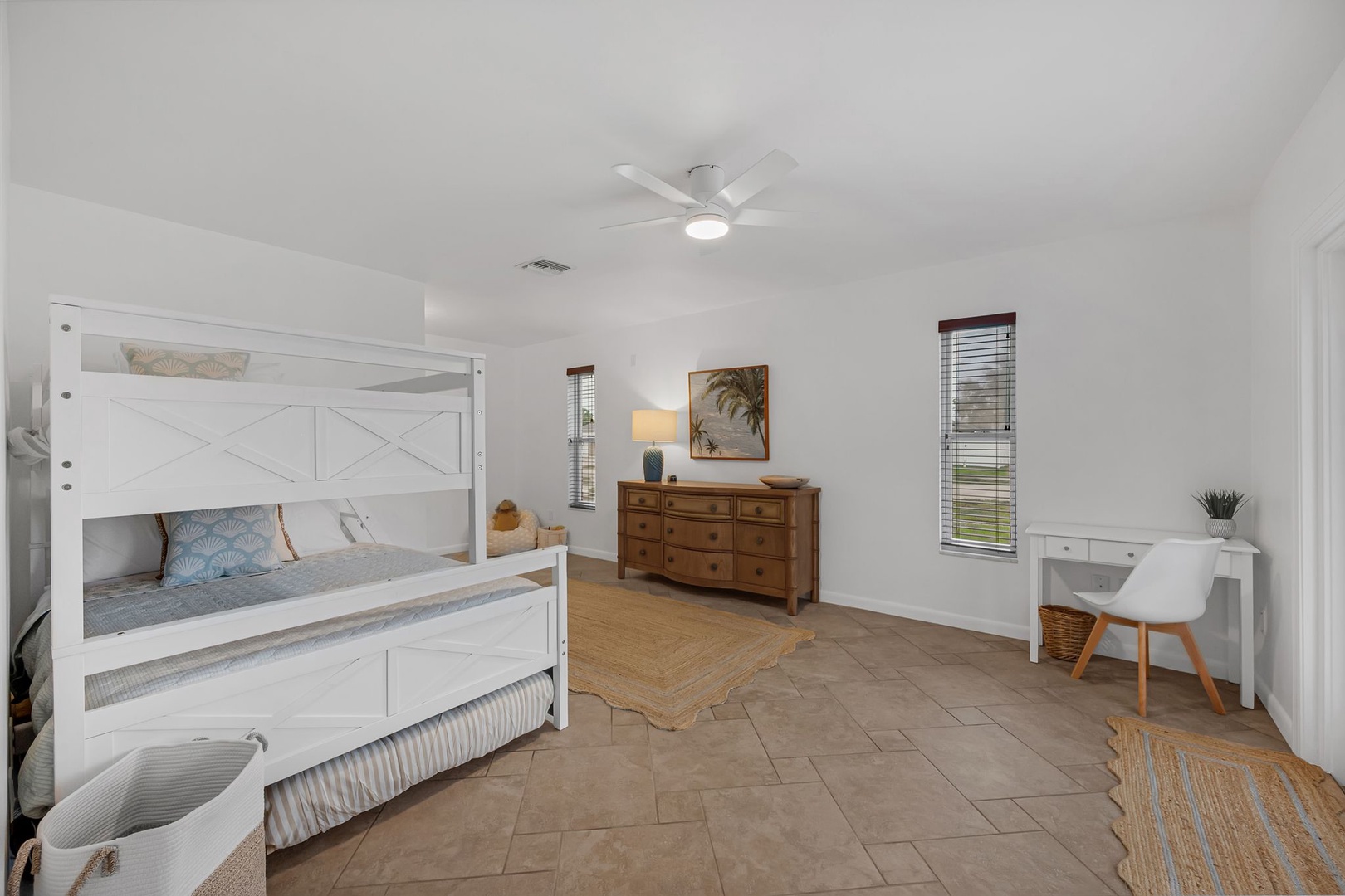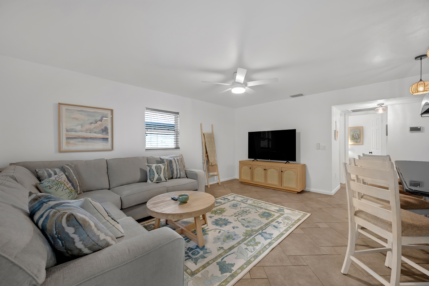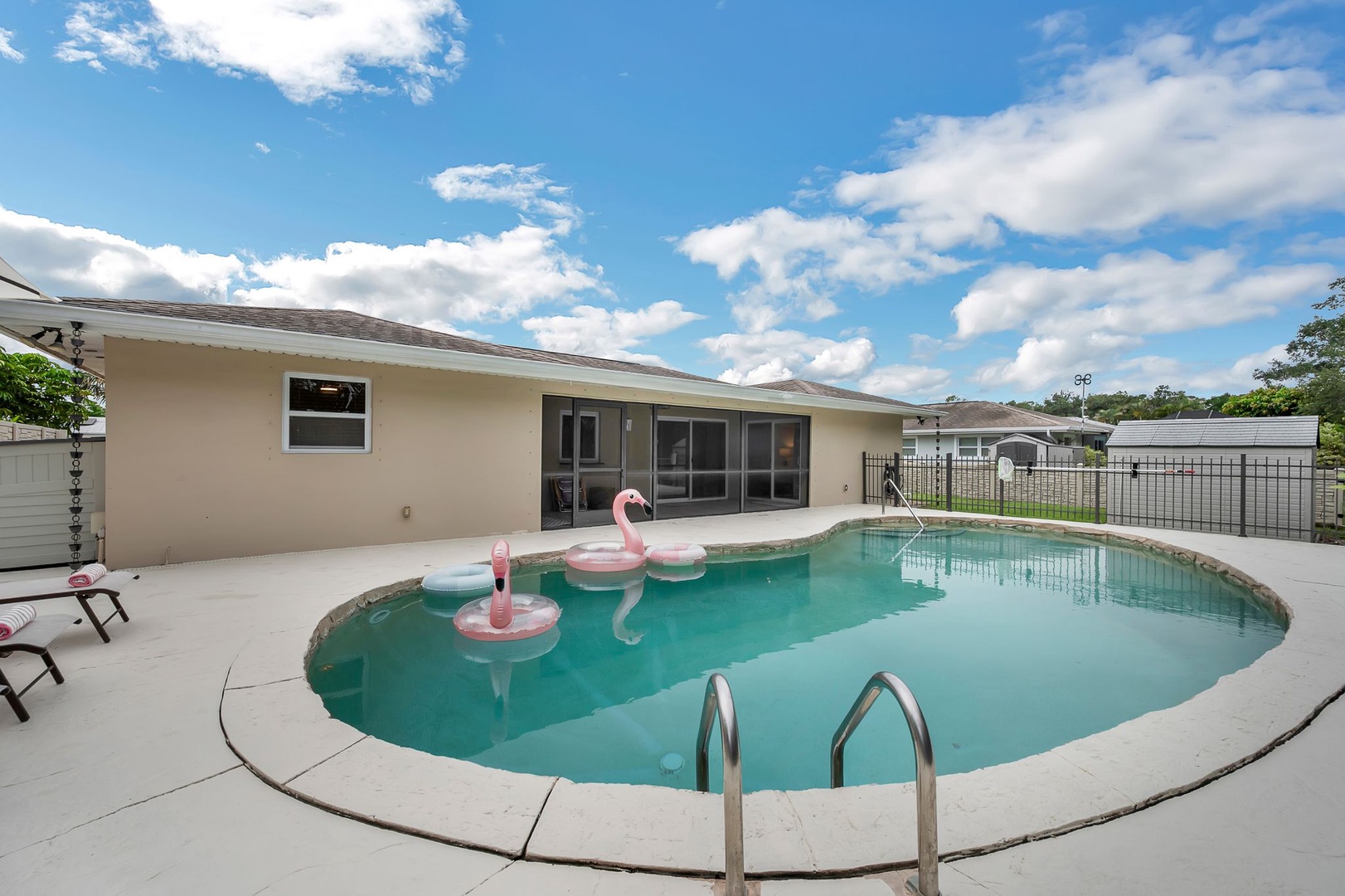 Escape to sunny Naples, enjoy the ultimate getaway in a spacious, comfortable 3-bedroom, 3-bathroom home. Family-friendly neighborhood with basketball courts and playgrounds. Nestled on a quiet street with a serene golf course as your backdrop. The property offers the perfect blend of relaxation and convenience, with easy access to everything Naples and Marco Island have to offer. Offering a large, sparkling saltwater in-ground pool, a fully fenced-in yard in addition to a separate fence around the pool. Your mind will be at ease with little ones playing. There's no better place to unwind after a day of exploring all that Naples has to offer—located just 12 minutes from Downtown Naples and the beaches. Guests say they have the best of Naples right at their fingertips! 65 inch smart TV. Fully equipped kitchen, new appliances and a seat up counter for 4 to watch meals unfold from the family chefs. Dining table seats six with views of the pool.