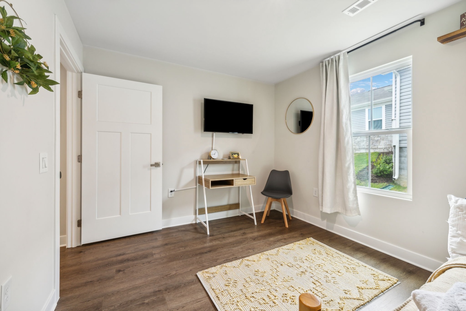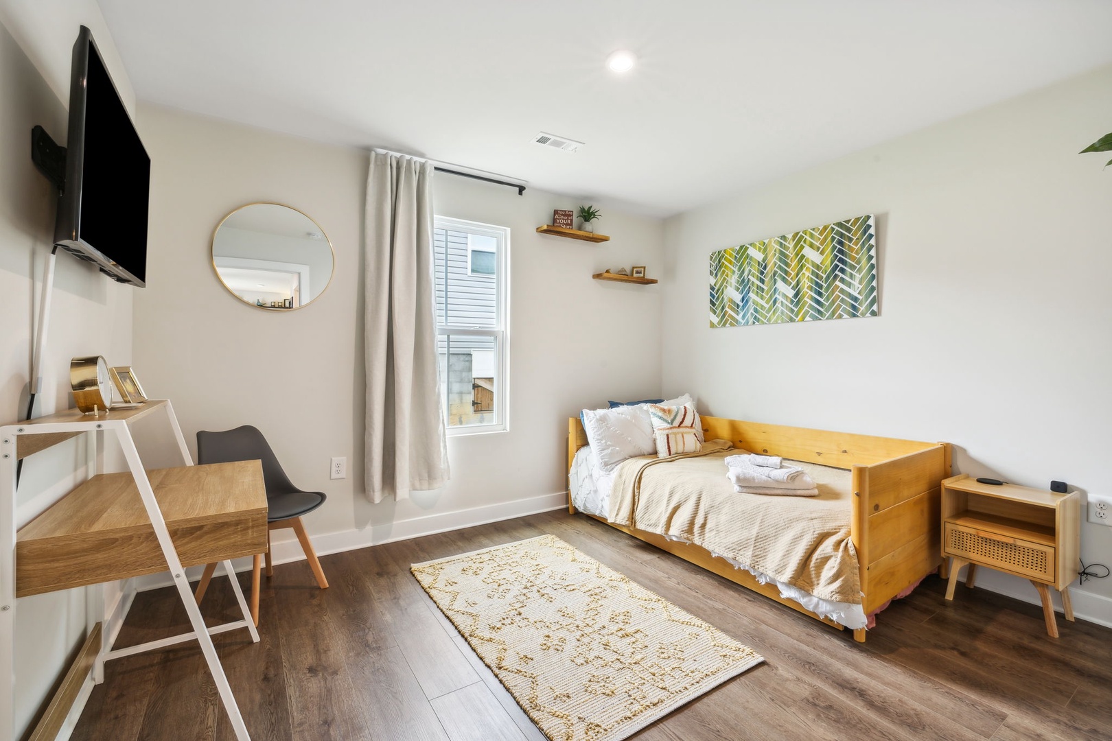 Stylish Vibe 2Bed Home 30 Day or more Stylish Vibe 2Bed Home 30 Day or more Twighlight House Twighlight House Living Room Living Room Living Room A modern kitchen with white cabinetry, stainless steel appliances, granite countertops, and a kitchen island with bar seating. Artworks adorn the adjacent dining area wall. A wooden deck with two blue chairs and a small table overlooks a grassy backyard, surrounded by white fences and neighboring houses under a blue sky with clouds. Queen Bed Queen Bed Open Gallery Twighlight House Twighlight House Living Room Living Room Living Room A modern kitchen with white cabinetry, stainless steel appliances, granite countertops, and a kitchen island with bar seating. Artworks adorn the adjacent dining area wall. A wooden deck with two blue chairs and a small table overlooks a grassy backyard, surrounded by white fences and neighboring houses under a blue sky with clouds. Queen Bed Queen Bed Outdoor Patio Wine Outdoor Patio Wine A modern kitchen with white cabinets, granite countertops, stainless steel appliances, a central island with barstools, a wine cooler, and wooden flooring. A door is visible at the far end. Living and Kitchen Living and Kitchen Living Room Living Room Couch Pillow Couch Pillow Living Room Living Room Living Room Entertainment Living Room Entertainment Queen Bed Queen Bed Master Bedroom Pillows Master Bedroom Pillows Queen Bed Queen Bed Master Bedroom Walk In Closet Master Bedroom Walk In Closet A bathroom with a glass-enclosed shower, toilet, white vanity with sink, mirror, and wall-mounted cabinet. The room is clean and well-lit with neutral tones. Queen Bath Queen Bath Modern kitchen with white cabinets, granite countertops, stainless steel appliances, and an island with two wooden chairs. Kitchen nick nicks Kitchen nick nicks Modern open-concept kitchen and living room with granite countertops, stainless steel appliances, light wood flooring, and white cabinetry. The living area features a black sofa and a striped rug. Modern kitchen with stainless steel appliances, a granite countertop island, white cabinets, and a window above the sink with a "Kitchen" sign above it. Open cupboard with neatly arranged white mugs, clear glasses, and white square plates on wooden shelves. Modern kitchen with white cabinets, stainless steel appliances, granite countertops, and a window above the sink. Small plants and decor items are placed around the room. The sign reads “KITCHEN.”. A modern kitchen with white cabinets, stainless steel appliances, granite countertops, and a window with a sheer curtain above the sink. The sign above the window reads "KITCHEN. Kitchen nick nicks Kitchen nick nicks Dining Room Dining Room Dining Room Dining Room Dining Room Dining Room Dining Room Dining Room Dining Room Dining Room Dining Room Dining Room 2nd Bedroom w/Twin Trundle 2nd Bedroom w/Twin Trundle Folded white towels with beige stripes placed on a beige bedspread, with a pillow and textured blanket in the background. 2nd Bedroom Pillows 2nd Bedroom Pillows 2nd Bedroom w/Twin Trundle 2nd Bedroom w/Twin Trundle A round, gold-colored clock displaying 9:05 stands on a wooden shelf next to a framed photograph and a small decorative item. A bathroom featuring a white bathtub with a beige patterned curtain, a white sink with a mirror above, a toilet, and a wooden storage cabinet. An orchid plant is on the sink counter. Master Bath Sink Master Bath Sink A laundry room with a black washer and dryer, a white utility sink, and a wall-mounted wire shelf holding laundry baskets and cleaning supplies. A round digital thermostat displaying the temperature as 70 degrees and a countdown of 25 minutes, mounted on a light-colored wall next to a framed artwork. A clean, empty garage with a double-door entrance, a ceiling-mounted door opener, a trash bin, and shelving units along the right wall. A photo displays framed images of spices in spoons and herbs on a wall, with three pictures visible. A wooden sign with the phrase "Home is where your story begins," is displayed on a rustic wooden shelf alongside a ceramic mug and a potted plant. A living room with a dark gray sectional sofa adorned with yellow and beige pillows, a wooden coffee table made of crates, wall art, and a large mirror. Natural light enters through windows with white curtains. A decorative brown ceramic bowl contains a green moss ball, a twig ball, a green faux plant, and a cotton ball arrangement. The bowl rests on a brown speckled tray atop a woven mat. A view from an open front door into a brightly lit hallway with wooden flooring, a tall bookshelf, wall art, and a dining table on the right. A house entrance with a yellow front door, stone veneer and siding exterior, a small covered porch, and a black metal railing. A single-story, detached house with a two-car garage featuring white doors, gray siding, and stone accents. The driveway is sloped, and the house is set against a backdrop of similar homes. A suburban neighborhood street with neatly trimmed lawns, single-story houses, and a few trees. The sky is clear with scattered clouds. Utility boxes are visible on the grass in the foreground. A wooden deck with two blue chairs, a black-and-white small table, and a house exterior with sliding glass doors. Suburban neighborhood with similar houses and white fences in the background. A backyard with a wooden deck, white railing, and a grass lawn enclosed by a white high fence, under a partly cloudy sky. Outdoor Side of House Outdoor Side of House Outdoor Side of House Outdoor Side of House Single-story house with a gray exterior and a two-car garage, set on a neatly maintained lawn under a partly cloudy sky. A single-story house with a two-car garage, light gray siding, and a green front lawn on a sloped driveway, located in a suburban neighborhood under a partly cloudy sky. Gallery View Nashville, TN 2 Bedrooms 2 full Baths 4 Guests 1100 sq. ft. Pets OK Description Rooms Amenities Reviews Calendar 