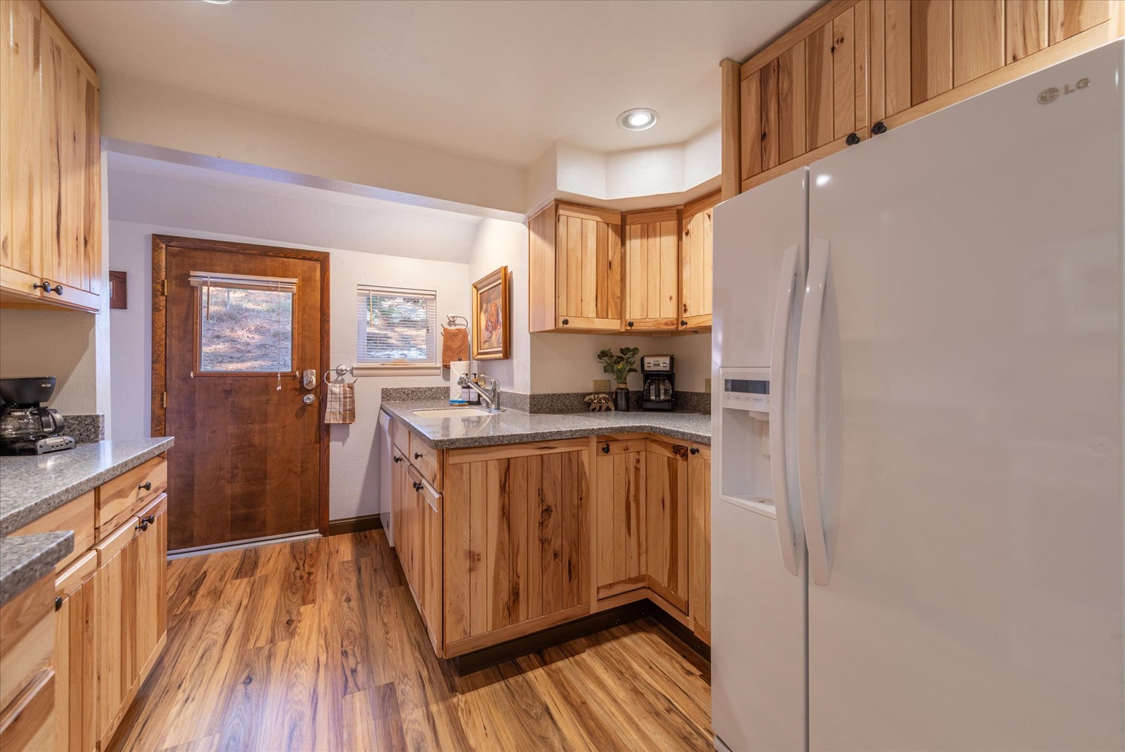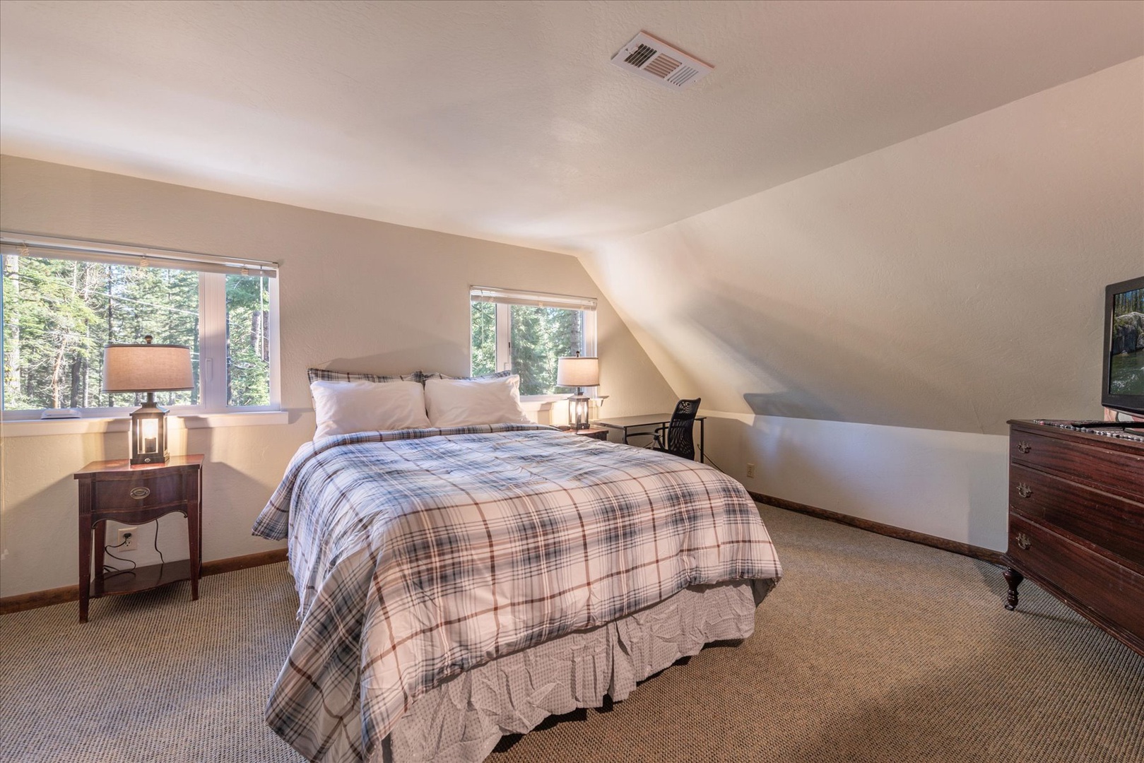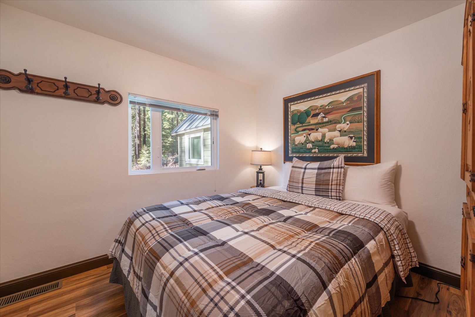 Fred’s Retreat Home California North Lake Tahoe Fred's Retreat Fred's Retreat Your cozy forest retreat awaits among towering pines, where rustic charm meets comfort. Breathe in the fresh mountain air as you relax on your private deck, surrounded by nature's peaceful embrace. Cozy up by your crackling fireplace in this charming living room, where exposed wooden beams and forest views create the perfect atmosphere for your mountain getaway. Your fully equipped mountain kitchen awaits with warm wood cabinets, granite counters, and modern appliances. Prepare meals surrounded by rustic charm while natural light streams through windows. Get a good nights sleep under cozy bedding in the large master bedroom with views of the forest from sunlit windows. Enjoy the second bathroom upstairs thoughtfully stocked with fresh linens and shower soaps. Open Gallery Your cozy forest retreat awaits among towering pines, where rustic charm meets comfort. Breathe in the fresh mountain air as you relax on your private deck, surrounded by nature's peaceful embrace. Cozy up by your crackling fireplace in this charming living room, where exposed wooden beams and forest views create the perfect atmosphere for your mountain getaway. Your fully equipped mountain kitchen awaits with warm wood cabinets, granite counters, and modern appliances. Prepare meals surrounded by rustic charm while natural light streams through windows. Get a good nights sleep under cozy bedding in the large master bedroom with views of the forest from sunlit windows. Enjoy the second bathroom upstairs thoughtfully stocked with fresh linens and shower soaps. Your charming mountain retreat awaits nestled among towering pines, where you'll wake to crisp forest air and the gentle sound of a babbling creek right outside your door. Step into your own mountain retreat where towering pines frame this charming cabin with its rustic stone chimney and welcoming deck—your perfect base for forest adventures. The large deck with bench seating is the perfect spot for your morning coffee surrounded by nature. Curl up in your cozy living room where rustic charm meets modern comfort - warm wood beams overhead, a crackling stone fireplace, and soft gray seating perfect for relaxing after your adventures. Unwind on the sofa and throw your favorite show on the smart TV, equipped with access to all streaming apps. Sink into plush sofas by the warmth the fire and the homes natural wood accents. Step into your fully equipped mountain kitchen where warm wood cabinets and granite counters create the perfect space for preparing hearty meals after your outdoor adventures. Start your day right with a hot cup of coffee from the provided coffee maker. Get the feel of a true home-cooked meal in this quaint kitchen, stocked with everything you need. Gather around this charming dining table where warm wood tones, beautiful stained glass set the stage for memorable meals shared with loved ones. Enjoy this warm, downstairs bathroom, lovingly stocked with everything you might need for your stay. Your cozy bedroom retreat awaits with warm plaid bedding and charming pastoral artwork. Natural light streams through your window while polished hardwood floors add rustic elegance. The kids will love having their own space with matching twin beds, forest views, a smart TV, and room to play. Gallery View Homewood, CA 3 Bedrooms 2 full Baths 6 Guests Description Rooms Amenities Reviews Calendar Location Welcome to Fred's Retreat, your cozy escape nestled in the charming Tahoe Pines! This rustic retreat comfortably sleeps 6, offering 3 cozy bedrooms and 2 bathrooms. As you arrive, you’ll be greeted by a spacious deck that invites you to unwind and embrace the stunning mountain vistas and refreshing alpine air. This delightful getaway is the perfect sanctuary for relaxation and adventure alike. Upon entering, you'll step into a cozy living area designed for relaxation, where two plush couches invite you to unwind in front of a gas fireplace adorned with natural stone. Enjoy your favorite shows on the smart TV, or connect your devices seamlessly to the Bluetooth stereo system for a perfect evening of relaxation and entertainment. To your right, discover an inviting dining area, ideal for gathering over hearty meals, complemented by a designated space for your ski gear and winter adventure outfits. A conveniently located laundry room featuring a washer and dryer makes it easy to keep things fresh after outdoor explorations. Venture into the kitchen, where modern electric appliances and ample counter space await your culinary creativity. Whether preparing a cozy family dinner or a quick snack after a day of adventures, this kitchen is well-equipped to meet your needs. Just off the kitchen, a full bathroom adds to the convenience of the main floor. Before heading upstairs, you'll find a private first-floor bedroom, which features a comfortable queen bed, offering a peaceful night's rest. Ascend the staircase to discover two additional inviting bedrooms. The first includes two twin beds, a Smart TV, and large windows that frame enchanting vistas of the Tahoe forest. The second upstairs bedroom is a spacious retreat, furnished with a queen bed and an abundance of closet and dresser space for all your belongings. A tastefully appointed full bathroom upstairs, featuring a walk-in shower, provides a perfect area for freshening up after a day of adventure. Amenities The Tahoe Pines neighborhood on Tahoe's West Shore offers a delightful blend of natural beauty and a range of amenities that enhance your vacation experience. Nestled among towering evergreen trees and stunning lake views, this charming neighborhood provides access to a private beach and pier, perfect for swimming, sunbathing, and kayaking. Outdoor enthusiasts will appreciate the nearby hiking trails, including the scenic Eagle Rock, which delivers breathtaking vistas of Lake Tahoe. In the winter months, the neighborhood's proximit