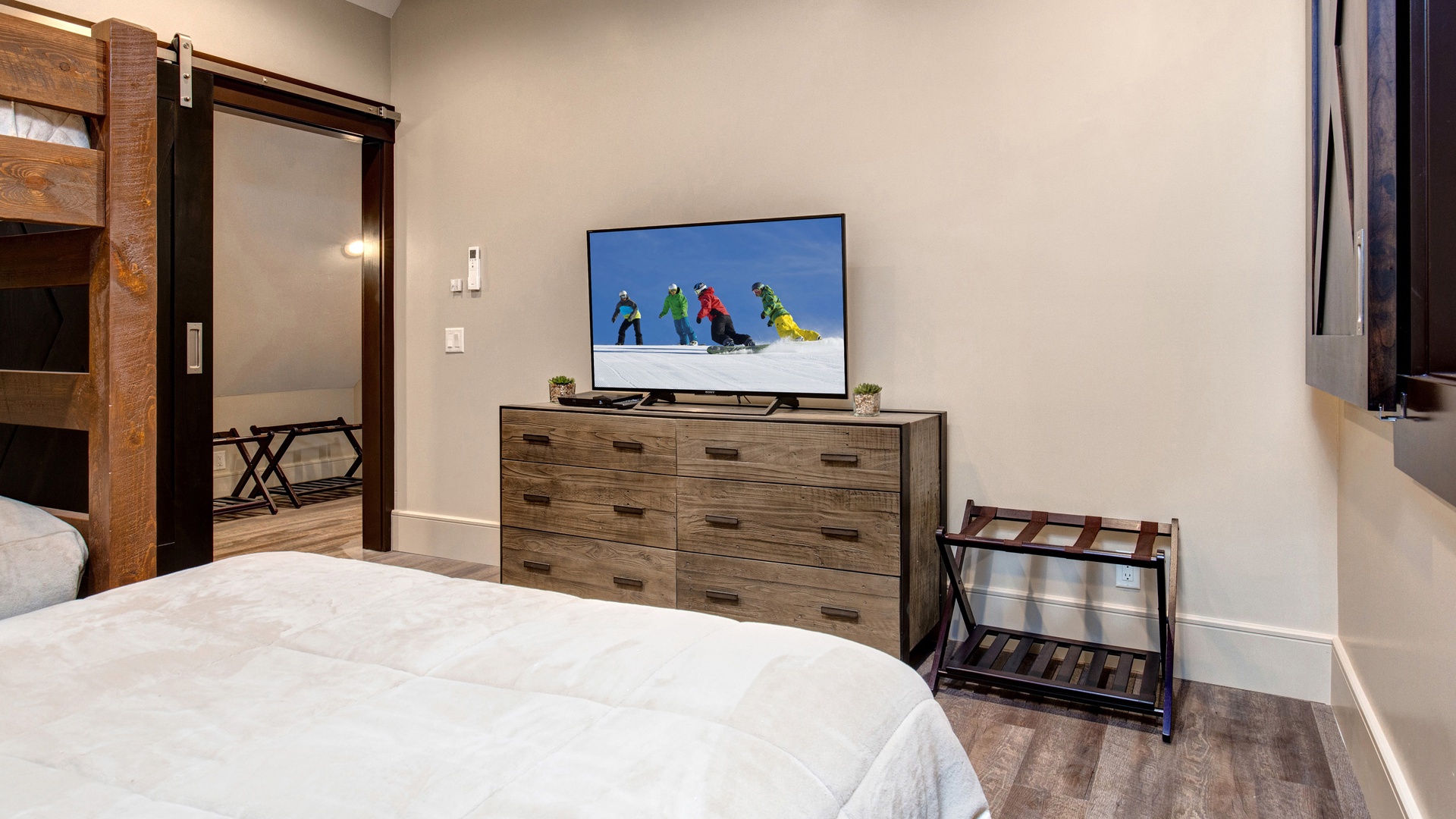 33 Ski Village Loft 3BR 33 Ski Village Loft 3BR Great Room Ski Village Loft! Great Kitchen Great Room Open Gallery Great Room Ski Village Loft! Great Kitchen Great Room Great Light Great Room Great Kitchen Great Kitchen Great Room Great Kitchen Great Kitchen A modern bedroom with a neatly made bed, a wall-mounted TV, and an open sliding barn door revealing a closet area. The room features neutral tones and contemporary decor. A modern bedroom with a neatly made bed, wooden headboard, two bedside tables, lamps, a large window facing a balcony with a view of buildings, and wall art above the bed. Master Bedroom En-Suite Master Suite Master #2 Master #2 Master #2 Bath Master #2 Bath Master #2 Bath Bedroom with a double bed, a bunk bed, a dresser, a TV, and rustic wooden décor. Large window with sliding barn door shutters in the background. Bunkroom, sleeps 4 Bunkroom, sleeps 4 Floor Plan Main Level Floor Plan Upper Level Two brown doors with metallic numbers "1" and "2" mounted on the adjacent walls. The doors have rectangular panels and metal door handles. The setting appears to be a hallway or corridor. Welcome to Park City Village Lofts Welcome to Park City Resort Base just steps away. Village Lofts Village Lofts Welcome to Park City Welcome to Park City Fantastic Views of the Ski Slopes Park City Park City Park City Park City Park City Park City Park City Park City Park City Park City Park City Park City Park City Gallery View Park City, UT 3 Bedrooms 3 full Baths 8 Guests 1524 sq. ft. (4.9) Description Rooms Amenities Reviews Calendar Location Welcome to the Ski Village Loft Your premier destination for an unforgettable mountain getaway! Located in the heart of Park City, this ski-in/ski-out condo is the closest unit to the slopes, providing unparalleled convenience and comfort for your family or group. Property Highlights: Garage Space: Ski Village Loft includes a garage space for one car, complete with a parking pass. Please note that only one parking pass is available, allowing parking for one car. Ideal Ski-In/Ski-Out: If you've been searching for the perfect ski-in/ski-out condo in Park City with a fully-equipped kitchen, drip coffee maker, modern mini-split heating/cooling, two master suites, and comfortable accommodations for up to 8 guests, look no further. The slopes are a mere 25 feet away! Mountain View Deck: Regardless of the season, you'll enjoy a lovely mountain view from your private deck. Whether you're taking in the winter wonderland or the verdant green mountains in the warmer months, it's a serene escape. Inviting Living Room: The living room welcomes you with a comfortable leather sectional sofa strategically placed in front of a warming fireplace. A flat-screen TV comes with a full range of cable channels, making it the perfect spot to enjoy your favorite shows, movies, or sporting events. Modern Kitchen: The spacious kitchen is equipped with stainless steel appliances and ample storage space. The cozy eat-in area becomes the central gathering point for your group. First-Floor Master Suite: This master suite on the first floor provides a sanctuary for a lucky couple. A private deck allows for romantic star-gazing, and the king-sized bed guarantees a restful night's sleep. A kitchenette features a mini-fridge and microwave, making it easy to enjoy a quiet breakfast before your day begins. The private bath has been updated with new amenities. Two Additional Bedrooms: Upstairs, you'll find two more bedrooms. The first is a second master suite with a queen-sized bed, an ideal space for watching TV on the wall-mounted flat screen. Another private deck invites you to relax with a late-night glass of wine or a mug of hot chocolate. The private bath offers modern fixtures and a generous walk-in shower. Loft-Style Bedroom: The third bedroom boasts a loft-style design, overlooking the downstairs living area. It features a queen-sized bed and a set of twin bunks, accommodating both adults and kids. This room utilizes a guest bath. Garage Space: In addition to the garage space, the Ski Village Loft offers a newly installed European-style combo washer and dryer within the unit. Free WiFi: Stay connected with free WiFi access. Enjoy an impressive internet speed with a download rate of 236.91 Mbps and an upload rate of 5.88 Mbps. Parking Garage Clearance: Please note the parking garage clearance is 7 feet 5 inches. Convenient Location: You'll be conveniently located near numerous shops, restaurants, and the free Park City bus system. Discover an exquisitely remodeled 1500 sq ft condominium perfectly positioned for your next Park City vacation. The Ski Village Loft offers an exceptional experience, and we can't wait to share this mountain paradise with you. Getting Around: Navigating Park City is incredibly convenient using the Free Park City bus system, which has stops throughout the town. Just enter your location and desired destination in Google Maps and select Transit as your mode of transport to access bus colors and scheduled arrival times. Closest Bus Stop: Park City Mountain (1000) Distance to Bus Stop: 300 Feet Sleeping Arrangement Bedroom 1: Master bedroom with king size bed Bedroom 2: Queen size bed Loft: Queen size + 1 twin bunks Book your stay at the Ski Village Loft and experience the magic of Park City. We look forward to welcoming you to our mountain haven. License Number: B-014960 Rooms Master Bedroom 1 King Bedroom #2 1 Queen Loft 1 Queen 1 Twin Over Twin Bunk Bed Amenities Bathroom Conditioner Hair Dryer Hot Water Shampoo Shower Gel Body Soap Bathtub Bedroom & Laundry Bed Linens Hangers Iron & Ironing Board Towels Dryer - Private Essentials Extra Pillows & Blankets Wardrobe or Closet Washer - Private Cleanliness & Safety Carbon Monoxide Detector Disinfectant Used While Cleaning Fire Extinguisher Medical Emergency Contact Police Emergency Contact Self Check-In & Check-Out Smoke Detector Deadbolt Lock First Aid Kit Outdoor Lighting Entertainment TV DVD Player Sat