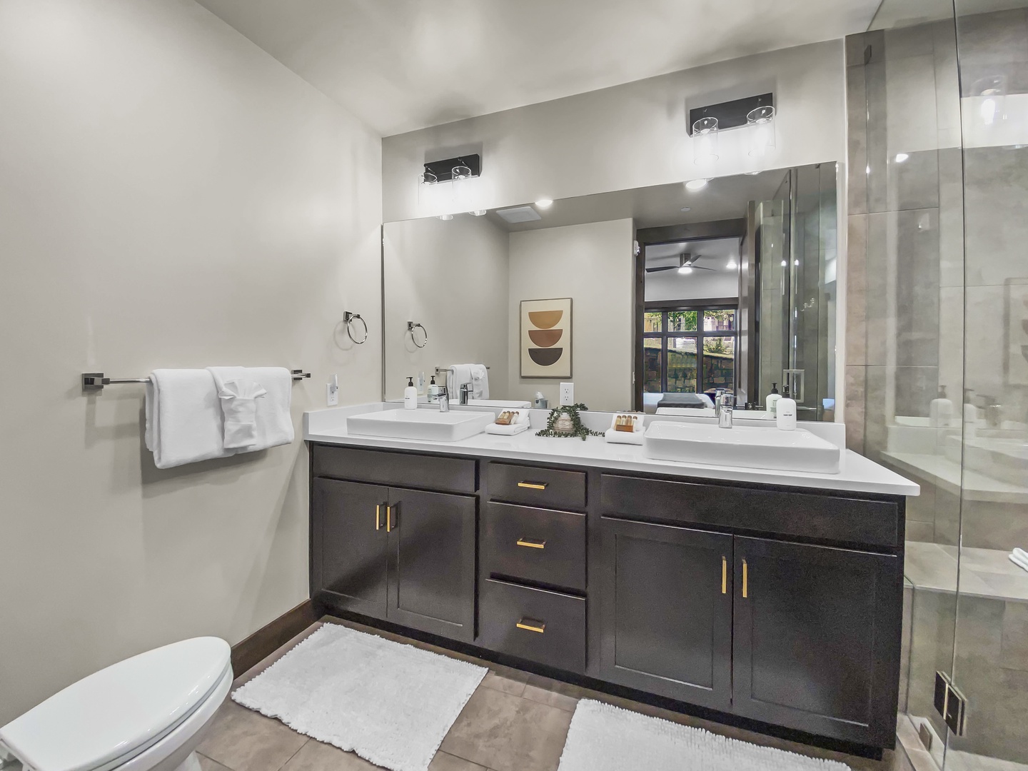 Fabulous location! Unit was lovely, clean and more modern than others we d previously stayed in around PC. Had 3 couples. We shared the master bathroom as it had two sinks and larger walk-in shower. Sleeper sofa was said to be comfy by our friends so that s a plus. Fireplaces in bedrooms and living room. Welcome basket upon arrival was wonderful. Would definitely stay again.