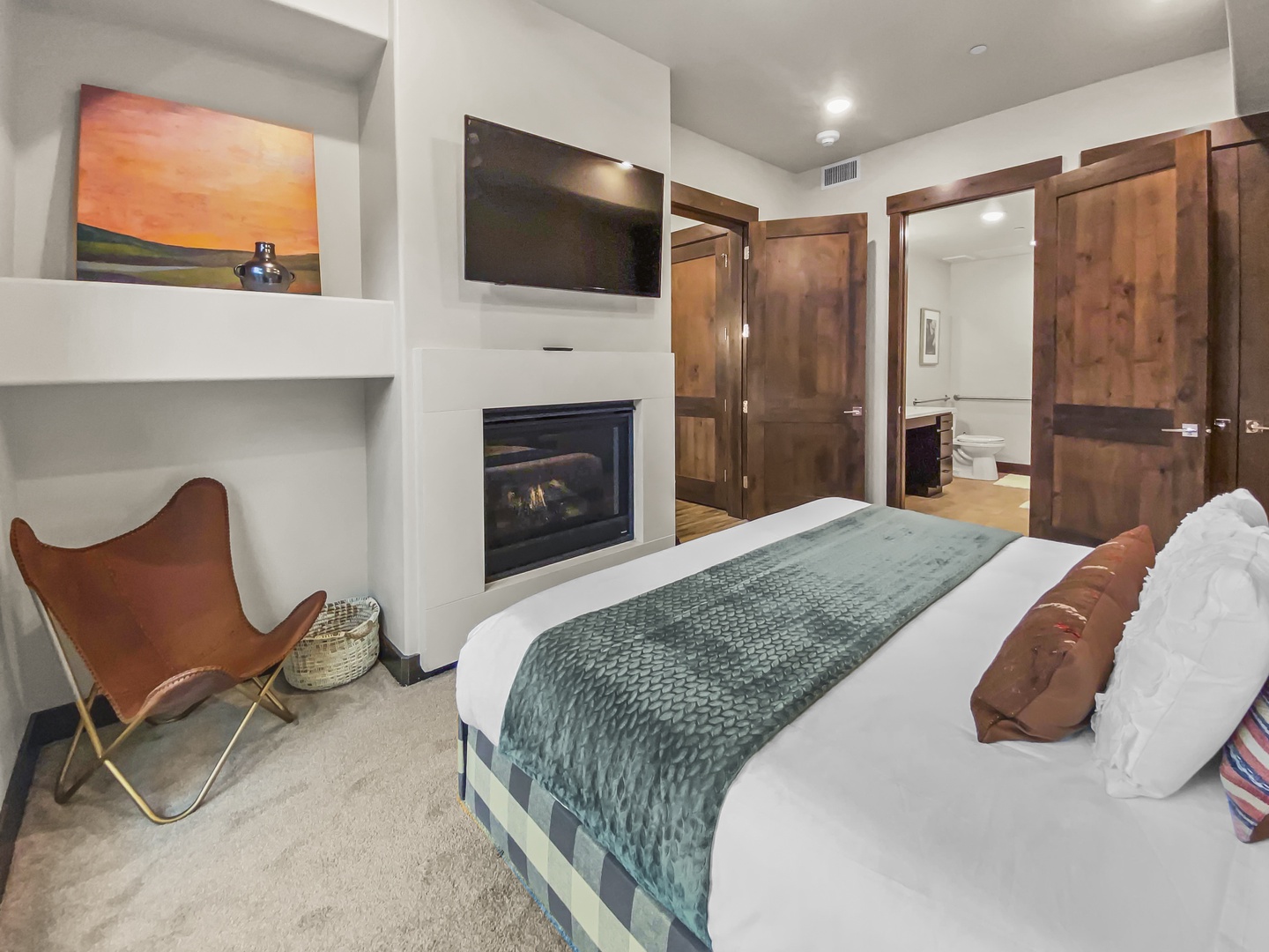 Guest Bedroom: King Bed, Smart TV, Fireplace, and Ensuite Bathroom