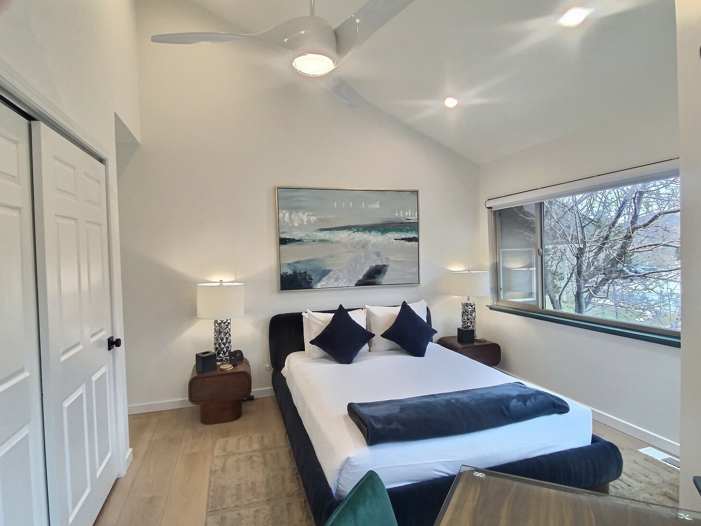 Primary- Queen Bed, Ensuite Bathroom, and Desk