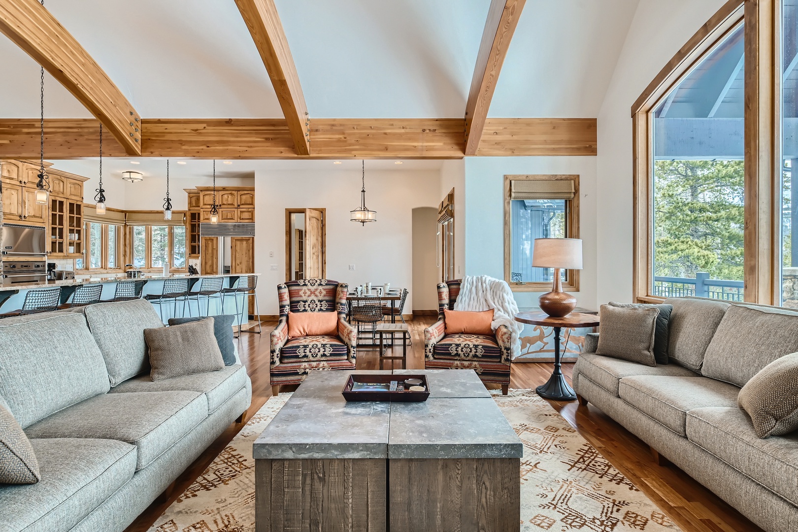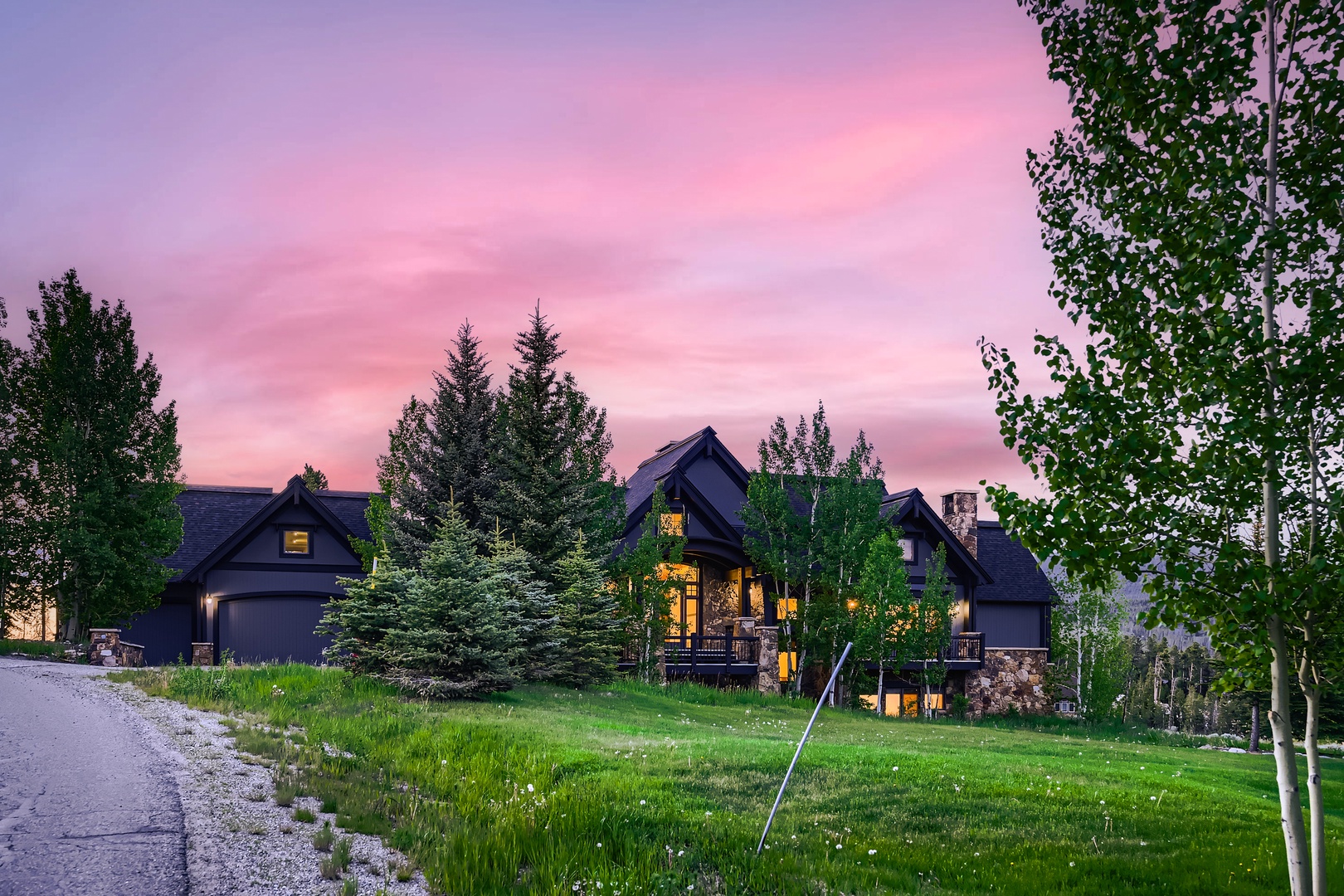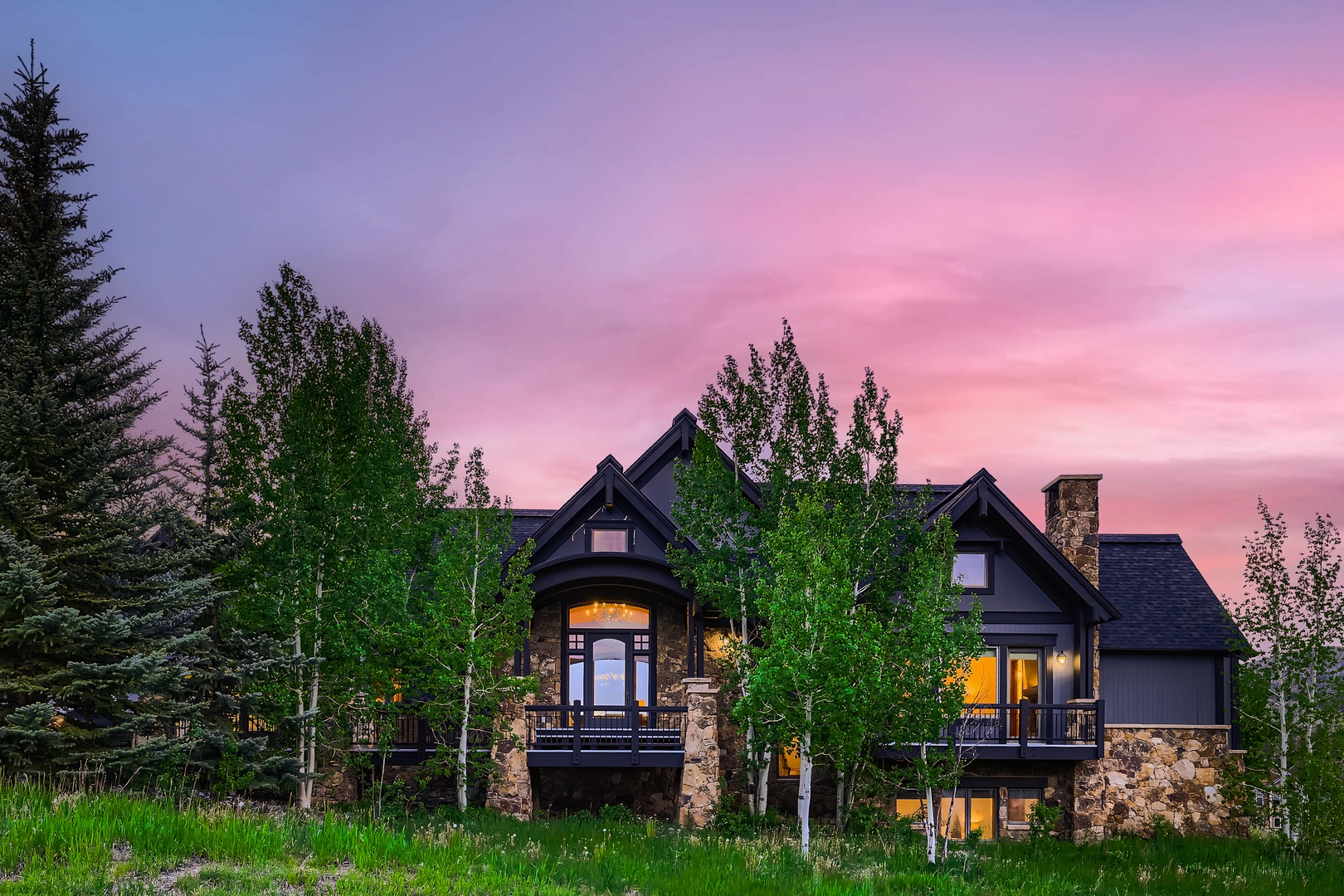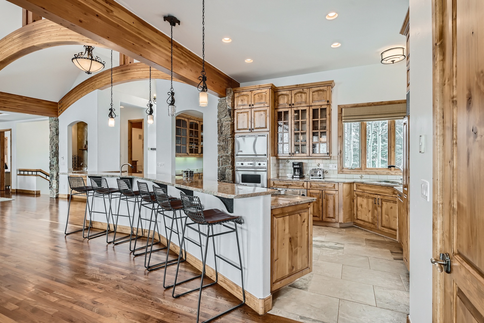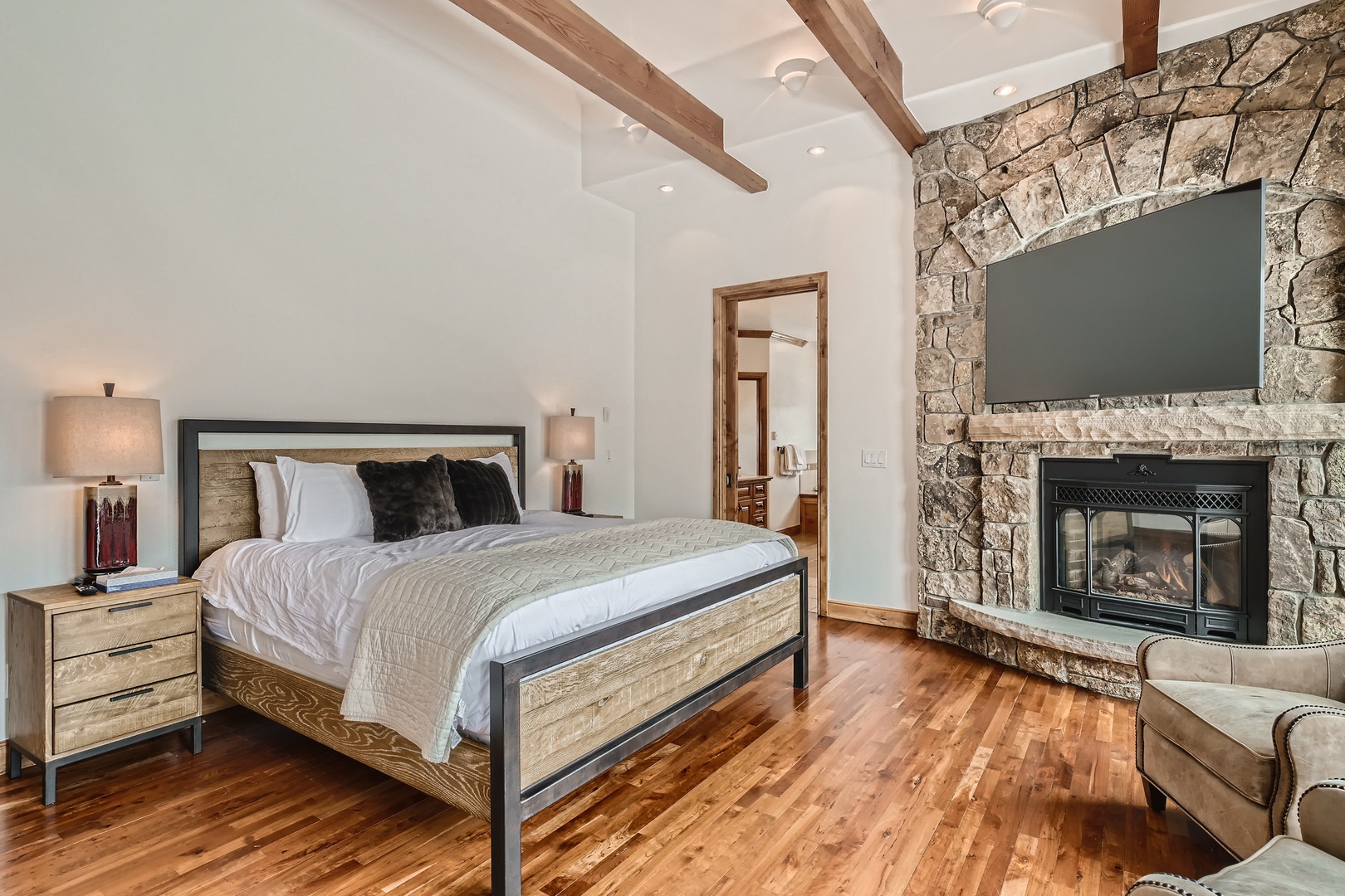 Apres & Fairway Retreat Apres & Fairway Retreat A two-story house with dark exterior colors and stone details is surrounded by trees at sunset, with a pink and purple sky in the background. A cozy bedroom with a wooden bed, stone fireplace, TV, hardwood floors, two bedside tables with lamps, and a mix of modern and rustic elements. An outdoor hot tub with jets running, nestled under a wooded deck with stone pillars, overlooks a rocky landscape and distant hills during sunset. Room with a wooden pool table under a chandelier, carpeted floor, wooden beams, and doors leading outside. Snow is visible through the glass doors. A covered outdoor deck with a dining table and chairs overlooks a lush golf course and mountain landscape under a pink sunset sky. Open Gallery A two-story house with dark exterior colors and stone details is surrounded by trees at sunset, with a pink and purple sky in the background. A cozy bedroom with a wooden bed, stone fireplace, TV, hardwood floors, two bedside tables with lamps, and a mix of modern and rustic elements. An outdoor hot tub with jets running, nestled under a wooded deck with stone pillars, overlooks a rocky landscape and distant hills during sunset. Room with a wooden pool table under a chandelier, carpeted floor, wooden beams, and doors leading outside. Snow is visible through the glass doors. A covered outdoor deck with a dining table and chairs overlooks a lush golf course and mountain landscape under a pink sunset sky. Exterior view of a stone and wood house with a large, arched front door, steps leading up to a porch, and a chandelier visible inside. Trees are next to the porch, and the sky shows a hint of sunset. A wooden door with glass panels leads to a porch. Inside, a bench sits against a wall, which is adorned with a large circular mirror. A living space with wooden arches, large windows showcasing a snowy landscape, a rustic bench, and a circular mirror on the wall. The area includes a seating area, dining table, and kitchen. A spacious living room features a stone fireplace, TV, two gray sofas, wooden beams on the ceiling, and a view of a snowy landscape through large windows. A spacious living room with large windows, stone fireplace, gray sofas, leather chairs, wooden beams, and a TV mounted above the fireplace. The room has wooden floors and a view of an outdoor scene. A cozy living room features a stone fireplace, a large TV above it, a gray couch, and armchairs. Large windows offer a snowy mountain view. A wooden coffee table and a lamp complete the decor. A spacious living room with wooden beams, large windows showcasing a snowy mountain view, a stone fireplace, gray sofas, and modern decor. A spacious living room with gray sofas, a large wooden coffee table, exposed wooden beams, and two hanging light fixtures. The room opens to a kitchen with wooden cabinetry and a dining area. A spacious living room with wooden beams, a stone fireplace, a large TV mounted above it, and modern furniture including a sectional sofa, armchairs, and a wooden coffee table. Spacious living room with wooden beams, modern furniture including two gray sofas facing a wooden coffee table, and an open kitchen and dining area in the background. Large windows offer natural light. Modern kitchen with wooden cabinets, a curved granite countertop island, and four black barstools. The space features pendant lighting, stainless steel appliances, and a mix of wood and tile flooring. A spacious kitchen with wooden beams and granite countertops, featuring a gas stove, double ovens, and a stone fireplace in the background. Large windows overlook a scenic outdoor view. A modern kitchen with stainless steel appliances, wooden cabinets, a double-door refrigerator, an oven, a stove, and a large window overlooking a snowy landscape. A kitchen with wooden cabinets, a double oven, a stove, a coffee maker, a toaster, and a sink. Large windows provide natural light and views of a snowy landscape outside. A rustic kitchen with wooden cabinets, a double sink beneath windows, a refrigerator with wooden panel doors, and a knife block on the counter. A wooden dining table with four chairs in a spacious room featuring a stone wall with a fireplace, a mounted TV, and large windows offering a view of a snowy landscape. A dining room with a large wooden table, ten brown leather chairs, a chandelier, and a wall painting. The room has wooden doors, windows with blinds, and a patterned rug on the floor. A dining table is set with white plates, wine glasses, and a centerpiece of white flowers, positioned in front of large windows in a room with stone walls. A dining room with a long table set for eight people. There's a chandelier above the table, wooden double doors, large windows, and a painting on the wall. The room has a rustic yet modern decor. A cozy bedroom with a wooden floor featuring a bed, a stone fireplace with a TV above, and wooden beams on the ceiling. A cozy bedroom features a bed with white linens, a stone fireplace with a TV mounted above it, two armchairs by large windows, and wooden beams on the ceiling. Snow-covered scenery is visible outside. A cozy bedroom with a fireplace, TV, and large windows showing a snowy landscape. Two armchairs and a small table sit near the window. The bed is in the foreground, covered with a white quilt. Spacious bathroom with a glass-enclosed shower, dual sinks with wooden cabinetry, two mirrors, tiled floor, and a bench. A bathroom featuring a large bathtub with a wooden enclosure, folded towels on a bench, and a window with a nature view. A bathroom with wooden cabinets, a single sink, a large mirror with lights above, tiled flooring, and wooden doors. Another room with a bed is visible through an open door. A basement room features a pool table with cue sticks, a set of balls, green chairs, a television, wooden cabinets with shelves, a mini-fridge, a sink, and stairs leading to the upper floor. A room with a billiards table, two crossed 