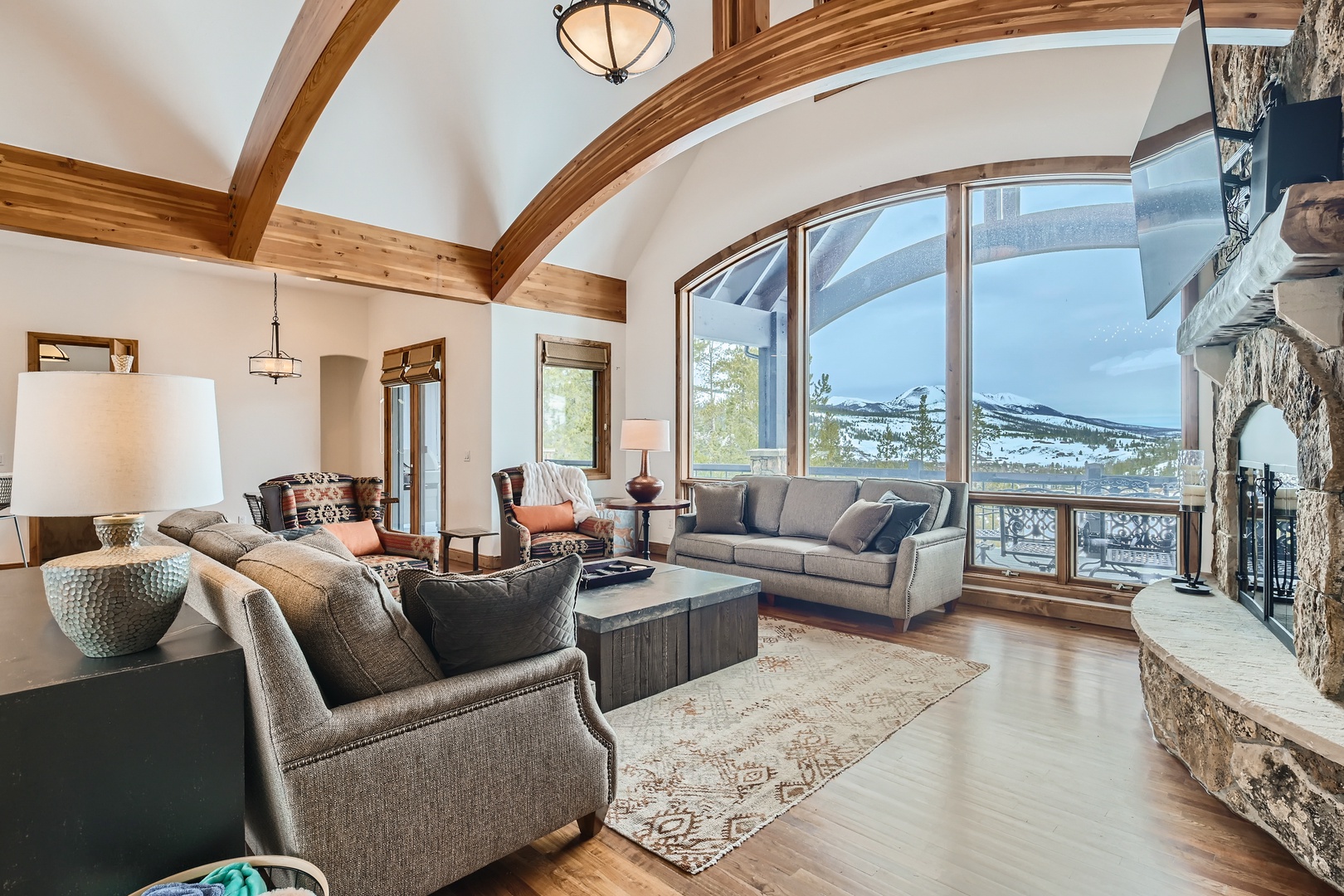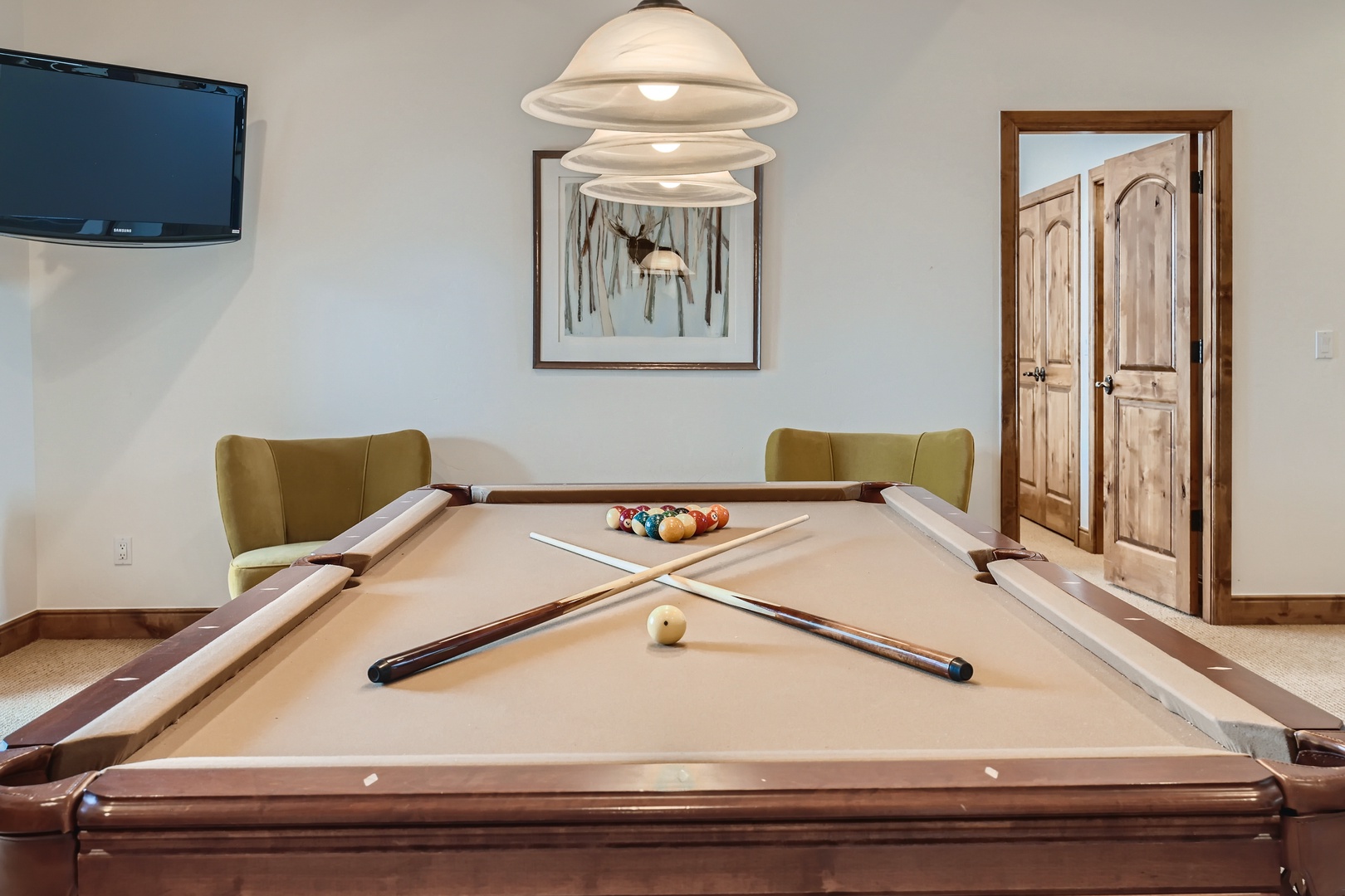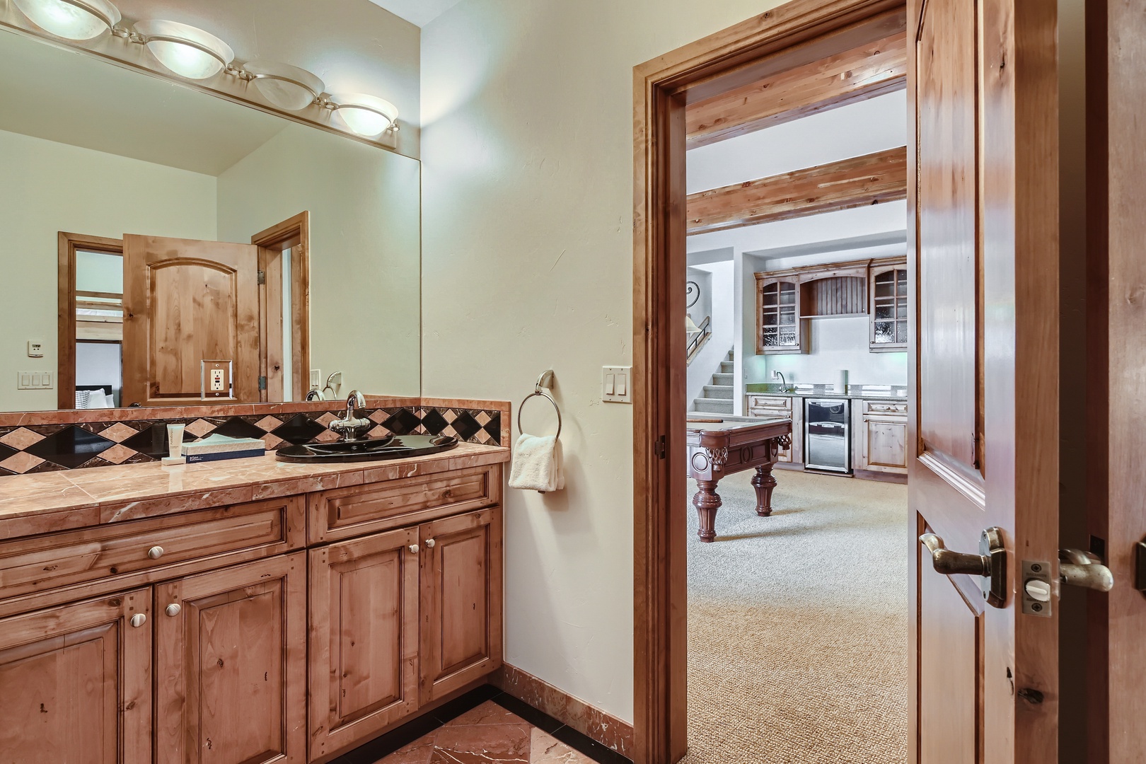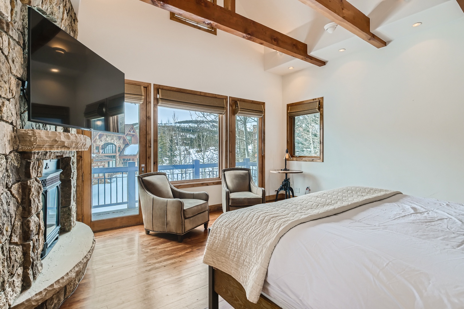 Apres & Fairway Retreat Apres & Fairway Retreat A two-story house with dark exterior colors and stone details is surrounded by trees at sunset, with a pink and purple sky in the background. A cozy bedroom with a wooden bed, stone fireplace, TV, hardwood floors, two bedside tables with lamps, and a mix of modern and rustic elements. An outdoor hot tub with jets running, nestled under a wooded deck with stone pillars, overlooks a rocky landscape and distant hills during sunset. Room with a wooden pool table under a chandelier, carpeted floor, wooden beams, and doors leading outside. Snow is visible through the glass doors. A covered outdoor deck with a dining table and chairs overlooks a lush golf course and mountain landscape under a pink sunset sky. Open Gallery A two-story house with dark exterior colors and stone details is surrounded by trees at sunset, with a pink and purple sky in the background. A cozy bedroom with a wooden bed, stone fireplace, TV, hardwood floors, two bedside tables with lamps, and a mix of modern and rustic elements. An outdoor hot tub with jets running, nestled under a wooded deck with stone pillars, overlooks a rocky landscape and distant hills during sunset. Room with a wooden pool table under a chandelier, carpeted floor, wooden beams, and doors leading outside. Snow is visible through the glass doors. A covered outdoor deck with a dining table and chairs overlooks a lush golf course and mountain landscape under a pink sunset sky. Exterior view of a stone and wood house with a large, arched front door, steps leading up to a porch, and a chandelier visible inside. Trees are next to the porch, and the sky shows a hint of sunset. A wooden door with glass panels leads to a porch. Inside, a bench sits against a wall, which is adorned with a large circular mirror. A living space with wooden arches, large windows showcasing a snowy landscape, a rustic bench, and a circular mirror on the wall. The area includes a seating area, dining table, and kitchen. A spacious living room features a stone fireplace, TV, two gray sofas, wooden beams on the ceiling, and a view of a snowy landscape through large windows. A spacious living room with large windows, stone fireplace, gray sofas, leather chairs, wooden beams, and a TV mounted above the fireplace. The room has wooden floors and a view of an outdoor scene. A cozy living room features a stone fireplace, a large TV above it, a gray couch, and armchairs. Large windows offer a snowy mountain view. A wooden coffee table and a lamp complete the decor. A spacious living room with wooden beams, large windows showcasing a snowy mountain view, a stone fireplace, gray sofas, and modern decor. A spacious living room with gray sofas, a large wooden coffee table, exposed wooden beams, and two hanging light fixtures. The room opens to a kitchen with wooden cabinetry and a dining area. A spacious living room with wooden beams, a stone fireplace, a large TV mounted above it, and modern furniture including a sectional sofa, armchairs, and a wooden coffee table. Spacious living room with wooden beams, modern furniture including two gray sofas facing a wooden coffee table, and an open kitchen and dining area in the background. Large windows offer natural light. Modern kitchen with wooden cabinets, a curved granite countertop island, and four black barstools. The space features pendant lighting, stainless steel appliances, and a mix of wood and tile flooring. A spacious kitchen with wooden beams and granite countertops, featuring a gas stove, double ovens, and a stone fireplace in the background. Large windows overlook a scenic outdoor view. A modern kitchen with stainless steel appliances, wooden cabinets, a double-door refrigerator, an oven, a stove, and a large window overlooking a snowy landscape. A kitchen with wooden cabinets, a double oven, a stove, a coffee maker, a toaster, and a sink. Large windows provide natural light and views of a snowy landscape outside. A rustic kitchen with wooden cabinets, a double sink beneath windows, a refrigerator with wooden panel doors, and a knife block on the counter. A wooden dining table with four chairs in a spacious room featuring a stone wall with a fireplace, a mounted TV, and large windows offering a view of a snowy landscape. A dining room with a large wooden table, ten brown leather chairs, a chandelier, and a wall painting. The room has wooden doors, windows with blinds, and a patterned rug on the floor. A dining table is set with white plates, wine glasses, and a centerpiece of white flowers, positioned in front of large windows in a room with stone walls. A dining room with a long table set for eight people. There's a chandelier above the table, wooden double doors, large windows, and a painting on the wall. The room has a rustic yet modern decor. A cozy bedroom with a wooden floor featuring a bed, a stone fireplace with a TV above, and wooden beams on the ceiling. A cozy bedroom features a bed with white linens, a stone fireplace with a TV mounted above it, two armchairs by large windows, and wooden beams on the ceiling. Snow-covered scenery is visible outside. A cozy bedroom with a fireplace, TV, and large windows showing a snowy landscape. Two armchairs and a small table sit near the window. The bed is in the foreground, covered with a white quilt. Spacious bathroom with a glass-enclosed shower, dual sinks with wooden cabinetry, two mirrors, tiled floor, and a bench. A bathroom featuring a large bathtub with a wooden enclosure, folded towels on a bench, and a window with a nature view. A bathroom with wooden cabinets, a single sink, a large mirror with lights above, tiled flooring, and wooden doors. Another room with a bed is visible through an open door. A basement room features a pool table with cue sticks, a set of balls, green chairs, a television, wooden cabinets with shelves, a mini-fridge, a sink, and stairs leading to the upper floor. A room with a billiards table, two crossed 