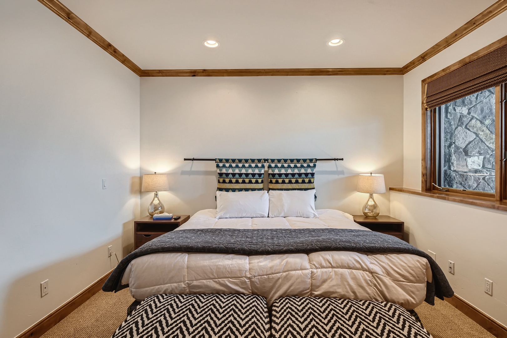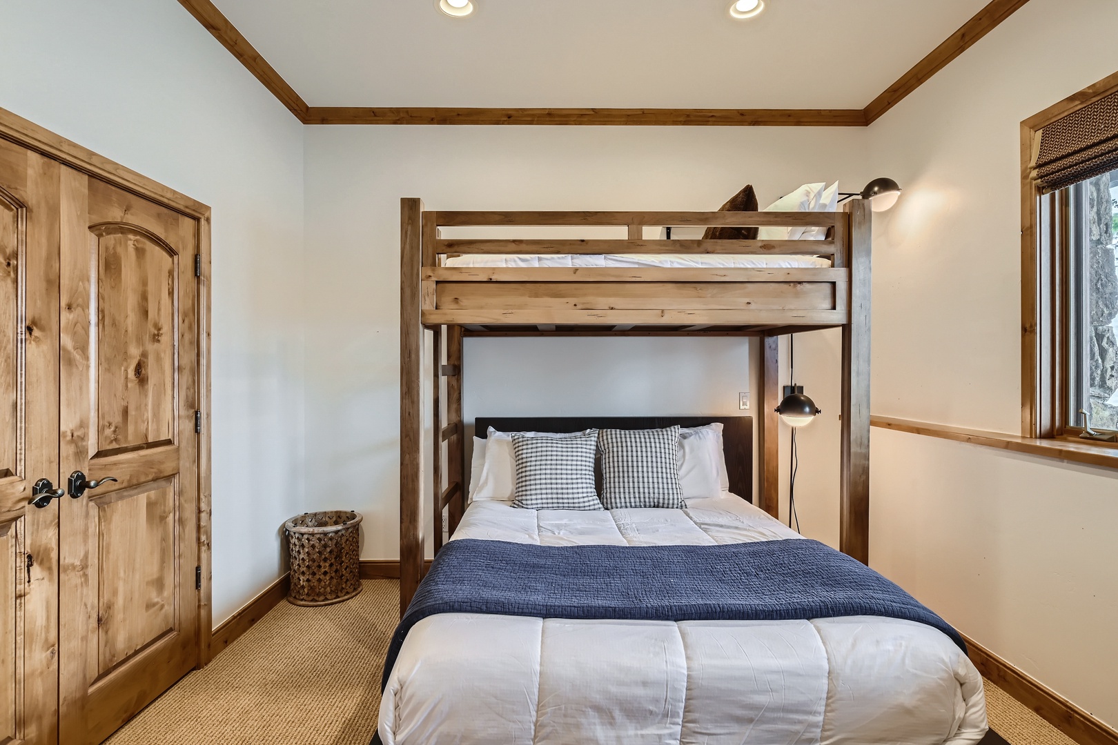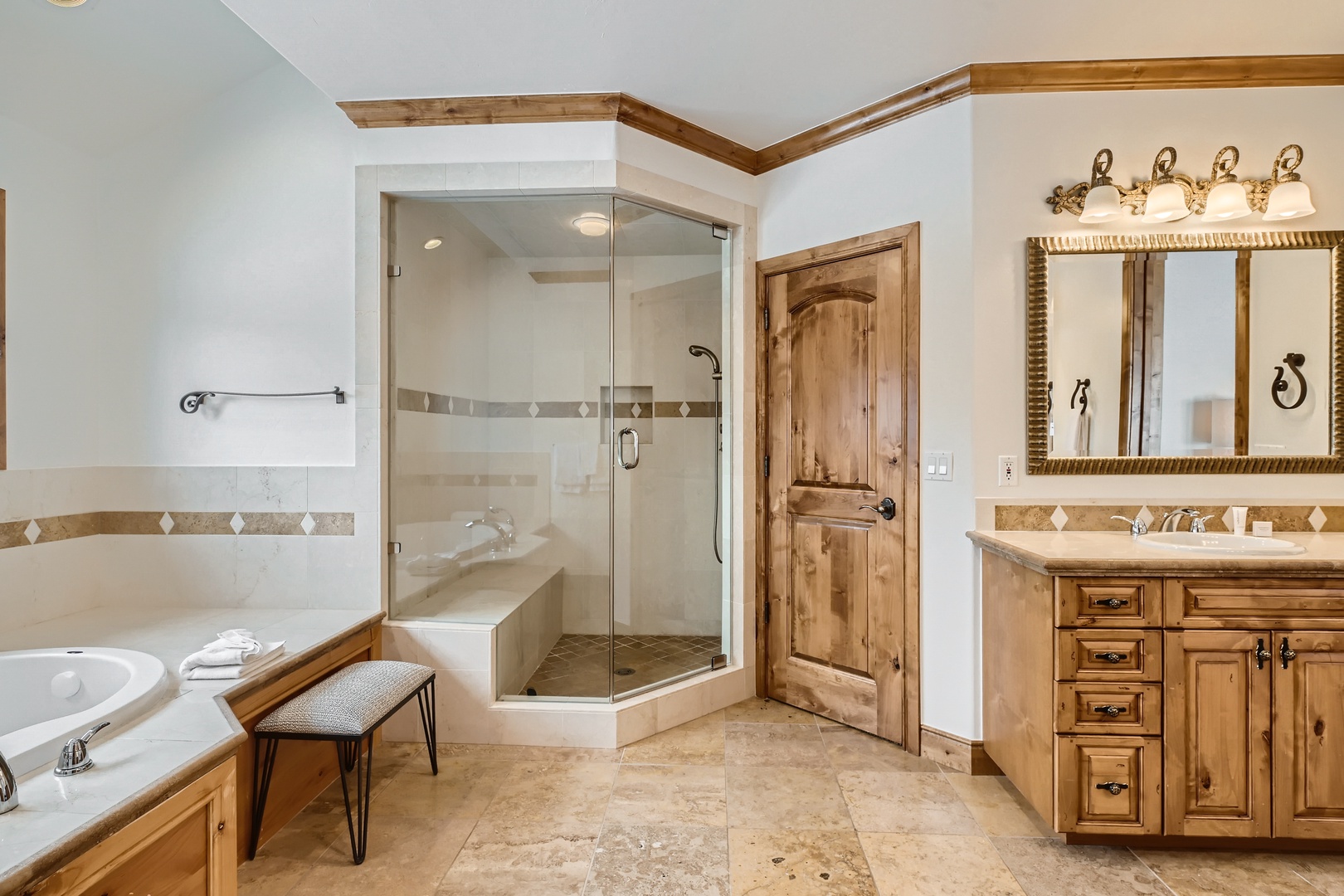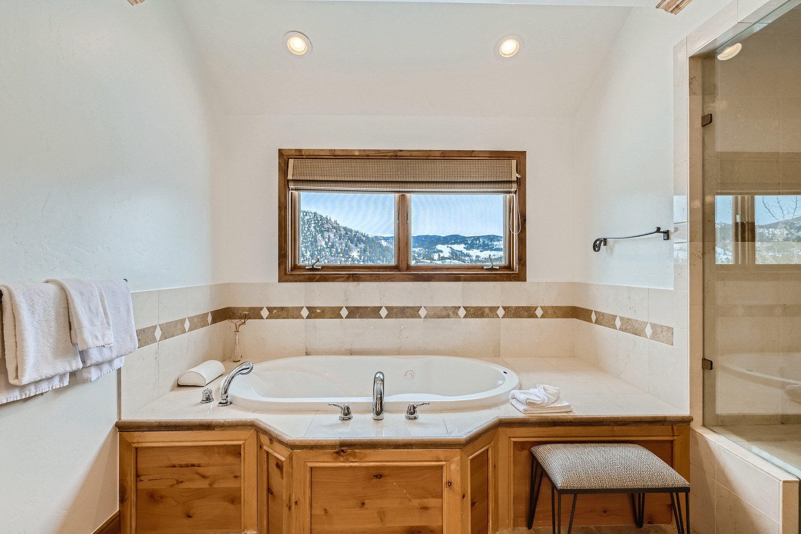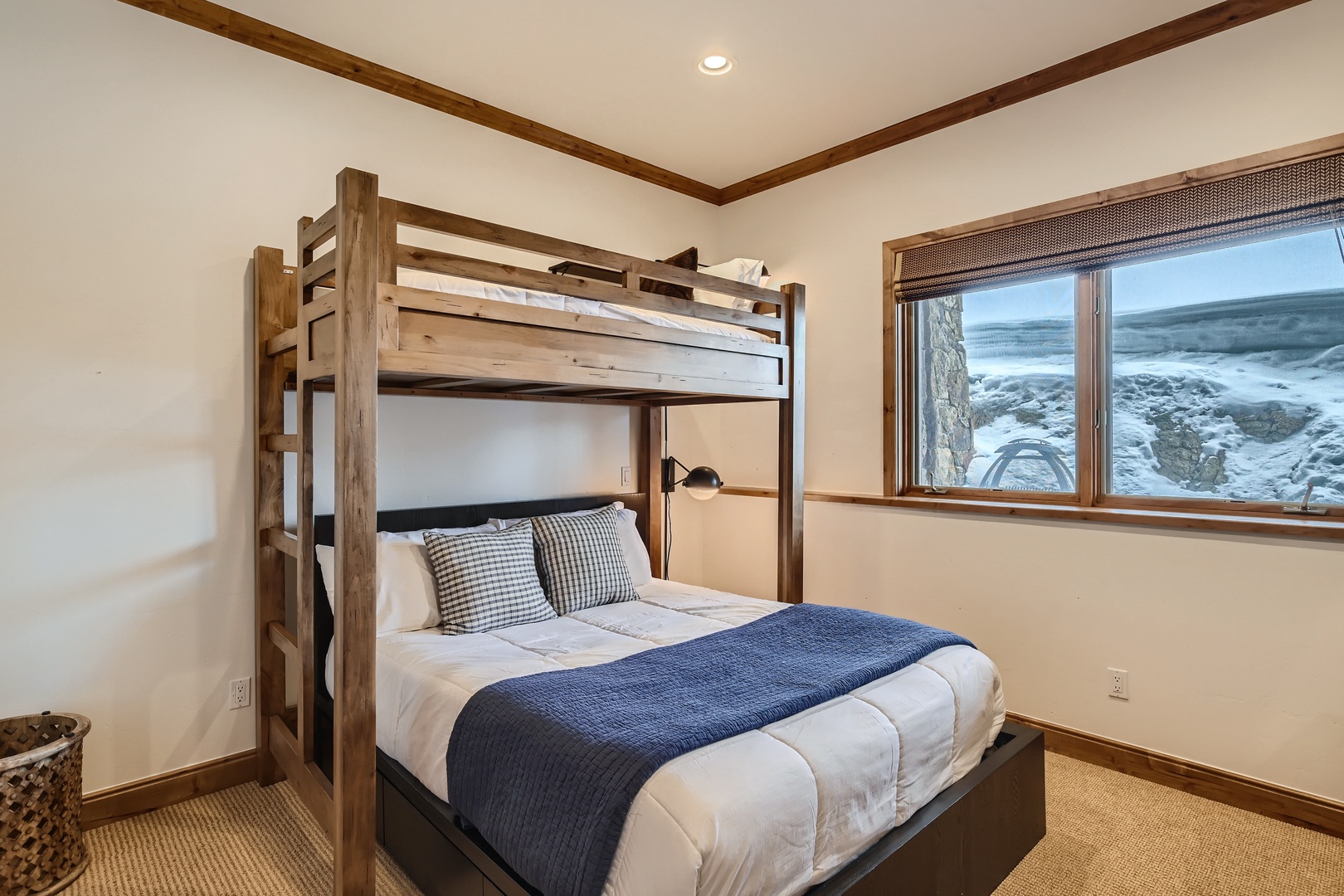 Apres & Fairway Retreat Apres & Fairway Retreat A two-story house with dark exterior colors and stone details is surrounded by trees at sunset, with a pink and purple sky in the background. A cozy bedroom with a wooden bed, stone fireplace, TV, hardwood floors, two bedside tables with lamps, and a mix of modern and rustic elements. An outdoor hot tub with jets running, nestled under a wooded deck with stone pillars, overlooks a rocky landscape and distant hills during sunset. Room with a wooden pool table under a chandelier, carpeted floor, wooden beams, and doors leading outside. Snow is visible through the glass doors. A covered outdoor deck with a dining table and chairs overlooks a lush golf course and mountain landscape under a pink sunset sky. Open Gallery A two-story house with dark exterior colors and stone details is surrounded by trees at sunset, with a pink and purple sky in the background. A cozy bedroom with a wooden bed, stone fireplace, TV, hardwood floors, two bedside tables with lamps, and a mix of modern and rustic elements. An outdoor hot tub with jets running, nestled under a wooded deck with stone pillars, overlooks a rocky landscape and distant hills during sunset. Room with a wooden pool table under a chandelier, carpeted floor, wooden beams, and doors leading outside. Snow is visible through the glass doors. A covered outdoor deck with a dining table and chairs overlooks a lush golf course and mountain landscape under a pink sunset sky. Exterior view of a stone and wood house with a large, arched front door, steps leading up to a porch, and a chandelier visible inside. Trees are next to the porch, and the sky shows a hint of sunset. A wooden door with glass panels leads to a porch. Inside, a bench sits against a wall, which is adorned with a large circular mirror. A living space with wooden arches, large windows showcasing a snowy landscape, a rustic bench, and a circular mirror on the wall. The area includes a seating area, dining table, and kitchen. A spacious living room features a stone fireplace, TV, two gray sofas, wooden beams on the ceiling, and a view of a snowy landscape through large windows. A spacious living room with large windows, stone fireplace, gray sofas, leather chairs, wooden beams, and a TV mounted above the fireplace. The room has wooden floors and a view of an outdoor scene. A cozy living room features a stone fireplace, a large TV above it, a gray couch, and armchairs. Large windows offer a snowy mountain view. A wooden coffee table and a lamp complete the decor. A spacious living room with wooden beams, large windows showcasing a snowy mountain view, a stone fireplace, gray sofas, and modern decor. A spacious living room with gray sofas, a large wooden coffee table, exposed wooden beams, and two hanging light fixtures. The room opens to a kitchen with wooden cabinetry and a dining area. A spacious living room with wooden beams, a stone fireplace, a large TV mounted above it, and modern furniture including a sectional sofa, armchairs, and a wooden coffee table. Spacious living room with wooden beams, modern furniture including two gray sofas facing a wooden coffee table, and an open kitchen and dining area in the background. Large windows offer natural light. Modern kitchen with wooden cabinets, a curved granite countertop island, and four black barstools. The space features pendant lighting, stainless steel appliances, and a mix of wood and tile flooring. A spacious kitchen with wooden beams and granite countertops, featuring a gas stove, double ovens, and a stone fireplace in the background. Large windows overlook a scenic outdoor view. A modern kitchen with stainless steel appliances, wooden cabinets, a double-door refrigerator, an oven, a stove, and a large window overlooking a snowy landscape. A kitchen with wooden cabinets, a double oven, a stove, a coffee maker, a toaster, and a sink. Large windows provide natural light and views of a snowy landscape outside. A rustic kitchen with wooden cabinets, a double sink beneath windows, a refrigerator with wooden panel doors, and a knife block on the counter. A wooden dining table with four chairs in a spacious room featuring a stone wall with a fireplace, a mounted TV, and large windows offering a view of a snowy landscape. A dining room with a large wooden table, ten brown leather chairs, a chandelier, and a wall painting. The room has wooden doors, windows with blinds, and a patterned rug on the floor. A dining table is set with white plates, wine glasses, and a centerpiece of white flowers, positioned in front of large windows in a room with stone walls. A dining room with a long table set for eight people. There's a chandelier above the table, wooden double doors, large windows, and a painting on the wall. The room has a rustic yet modern decor. A cozy bedroom with a wooden floor featuring a bed, a stone fireplace with a TV above, and wooden beams on the ceiling. A cozy bedroom features a bed with white linens, a stone fireplace with a TV mounted above it, two armchairs by large windows, and wooden beams on the ceiling. Snow-covered scenery is visible outside. A cozy bedroom with a fireplace, TV, and large windows showing a snowy landscape. Two armchairs and a small table sit near the window. The bed is in the foreground, covered with a white quilt. Spacious bathroom with a glass-enclosed shower, dual sinks with wooden cabinetry, two mirrors, tiled floor, and a bench. A bathroom featuring a large bathtub with a wooden enclosure, folded towels on a bench, and a window with a nature view. A bathroom with wooden cabinets, a single sink, a large mirror with lights above, tiled flooring, and wooden doors. Another room with a bed is visible through an open door. A basement room features a pool table with cue sticks, a set of balls, green chairs, a television, wooden cabinets with shelves, a mini-fridge, a sink, and stairs leading to the upper floor. A room with a billiards table, two crossed 