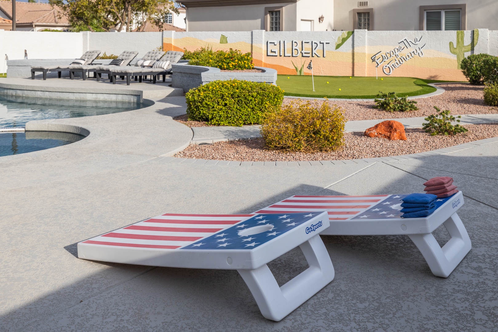 Gilbert Willow Tree Home Arizona Phoenix Gilbert Willow Tree Gilbert Willow Tree Lakeside view with four white Adirondack chairs A sprawling, backyard haven with complimentary heated pool, outdoor games, and hot tub! Lounge by the heated pool Backyard with a pool, hot tub, lounge chairs, and a putting green. Golfer's dream, pro backyard putting green Open Gallery Lakeside view with four white Adirondack chairs A sprawling, backyard haven with complimentary heated pool, outdoor games, and hot tub! Lounge by the heated pool Backyard with a pool, hot tub, lounge chairs, and a putting green. Golfer's dream, pro backyard putting green Ping pong competition! Cornhole anyone? Open floorplan Air Hockey table for never ending staycation entertainment Shuffle board anyone? Foosball table for endless fun for the whole family Games Dining table Updated kitchen Fully stocked chef's kitchen w/everything you need for family meals Fully equipped kitchen Eat-in kitchen Coffee anyone? Starbucks and Dunkin k-cups to start your day Eat-in Kithcen Open living room area with TV and wood fireplace for those crisp, desert nights Together is our favorite place to be... the living room, kitchen, dining and game table area, are all connected Living room Outdoor seating Outdoor dining Have dinner, overlooking the pool Outdoor kitchen area featuring a built-in stainless steel grill Ping Pong competition! Ping Pong competition! A stone pathway leads to a lake in our backyard Private seating area on the lake from our backyard A true 1st floor Master bedroom suite, w/ king bed, en suite bath, TV and siting area Master Bedroom with TV on main level Master Bedroom with TV on main level Master bathroom En Suite master bath with soak in tub and stand up shower Master Bathroom with walk-in shower and freestanding tub Walk-in Shower 1st floor half bath View of the large open living space from the top floor Spacious 2nd bedroom upstairs with king size bed Spacious 2nd bedroom upstairs with king size bed Spacious 3rd Bedroom upstairs with queen size bed 4th bedroom w/ twin over full bunk, plus another twin bed with pull out trundle. Sleeps 5 littles or 3 adults. Top bunk and trundle bed not recommended for adults Full upstairs bath with double sink and bath tub Get the kids! It's S'mores & story time around the gas firepit A serene lakeside scene at sunset with Adirondack chairs on a wooden deck Yes! This is what it really looks like from our backyard Within minutes of many of the area top golf courses 15 mins to Chicago Cubs Sloan Park and less than 30 mins to many other Spring Training Facilities! Hiking, biking, horseback riding, hot air balloon rides and breathtaking views! Full size washer and dryer so you can pack light! Starter pack of laundry pods provided for our guests. Welcome to your AZ vacation! Gallery View Gilbert, AZ 4 Bedrooms 2 full, 1 half Baths 10 Guests 3024 sq. ft. (5.0) Description Rooms Amenities Reviews Calendar Location Nestled in the heart of Val Vista Lakes, one of the most sought-after, master planned Gilbert communities, this lakeside retreat promises an unforgettable stay for vacationing families, groups of friends and avid golfers alike. With a prime location and a plethora of upscale amenities, this property sets the stage for an unforgettable and relaxing getaway. TPT# 21521748 Rooms Master Bedroom 1 King Bedroom 2 1 King Bedroom 3 1 Queen Bedroom 4 1 Twin 1 Twin Over Double/Queen Bunk Bed Amenities Bathroom Conditioner Hair Dryer Hot Water Shampoo Shower Gel Bathtub Bedroom & Laundry Bed Linens Essentials Hangers Iron & Ironing Board Towels Wardrobe or Closet Dryer - Community Extra Pillows & Blankets Washer - Private Cleanliness & Safety Carbon Monoxide Detector Common Surfaces Disinfected Fire Extinguisher First Aid Kit Self Check-In & Check-Out Smoke Detector Disinfectant Used While Cleaning Outdoor Lighting Entertainment TV Smart TV Foosball Game Console Game Room Games Mini Golf Ping Pong Table Satellite or Cable Family High Chair Pack & Play Travel Crib Crib Internet & Office Wifi Wifi - Free Wifi - Speed 500mbps Desk Desk Chair Ethernet Connection Laptop Friendly Workspace Office Printer Kitchen & Dining Blender Coffee Coffee Maker Cooking Basics Dishes & Silverware Dishwasher Freezer Ice Maker Kitchen Microwave Oven Refrigerator Stove Toaster Wine Glasses Dining Area or Room Dining table BBQ Grill Utensils Baking Sheet Kitchen Island Location & Attractions Car - Necessary Car - Recommended Mountain Family Themed Health Beauty Spa Lake Access Lakefront Laundromat Nearby Museums Town View - Lake View - Water Water Parks Waterfront Zoo Other Property Amenities Air Conditioning Ceiling Fan Heating Living Room Pets - Not Allowed NoiseAware Fireplace - Gas Fireplace - Wood or Wood Stove Private Entrance Sports, Leisure & Adventure Gambling Golf Hiking Horseback Riding Mountain Climbing Outlet Shopping Shopping Swimming Water Tubing Bird Watching Cycling Fishing - Pier Mountain Biking Wildlife Viewing Pool & Spa Pool - Heated Hot Tub Hot Tub - Private Pool Pool - Fenced Pool - Private Outdoor Outdoor Seating & Furniture BBQ Grill Area BBQ Grill - Gas BBQ Grill - Private Beach Essentials Fenced Yard Fire Pit Garden or Backyard Outdoor Dining Patio or Balcony Sun Loungers Veranda Accessibility Path to Entrance Lit at Night Other Building, Complex Or Neighborhood Amenities Basketball Court - Community Hospital Parking & Facilities Garage Parking - Free Parking - Private Services Long Term Stays Allowed See All Amenities + Reviews 5.0 (33 Reviews) Write A Review Thank you for submitting your review. It will be processed shortly! We value your privacy. Your email address will not be shared publicly. SUBMIT Gilbert Willow Tree Stayed Jul, 2024 Review This place was fantastic and had everything we needed!! Pete and Maria were incredibly attentive and responsive. They were proactive in addressing any issues that came up and always provided a solution. We had an amazing stay and plan on coming back! 