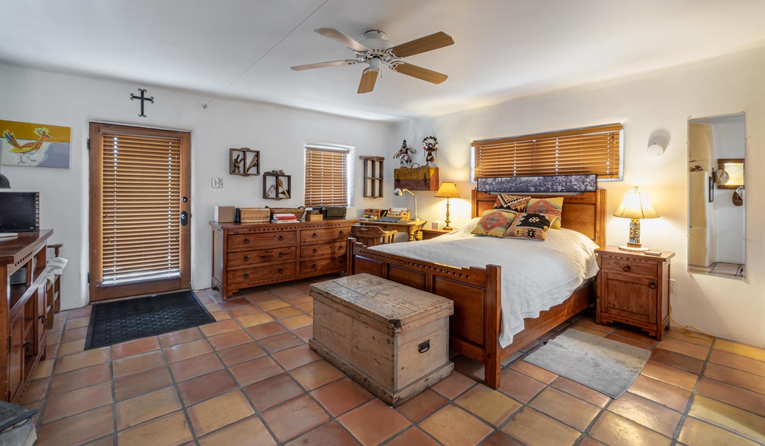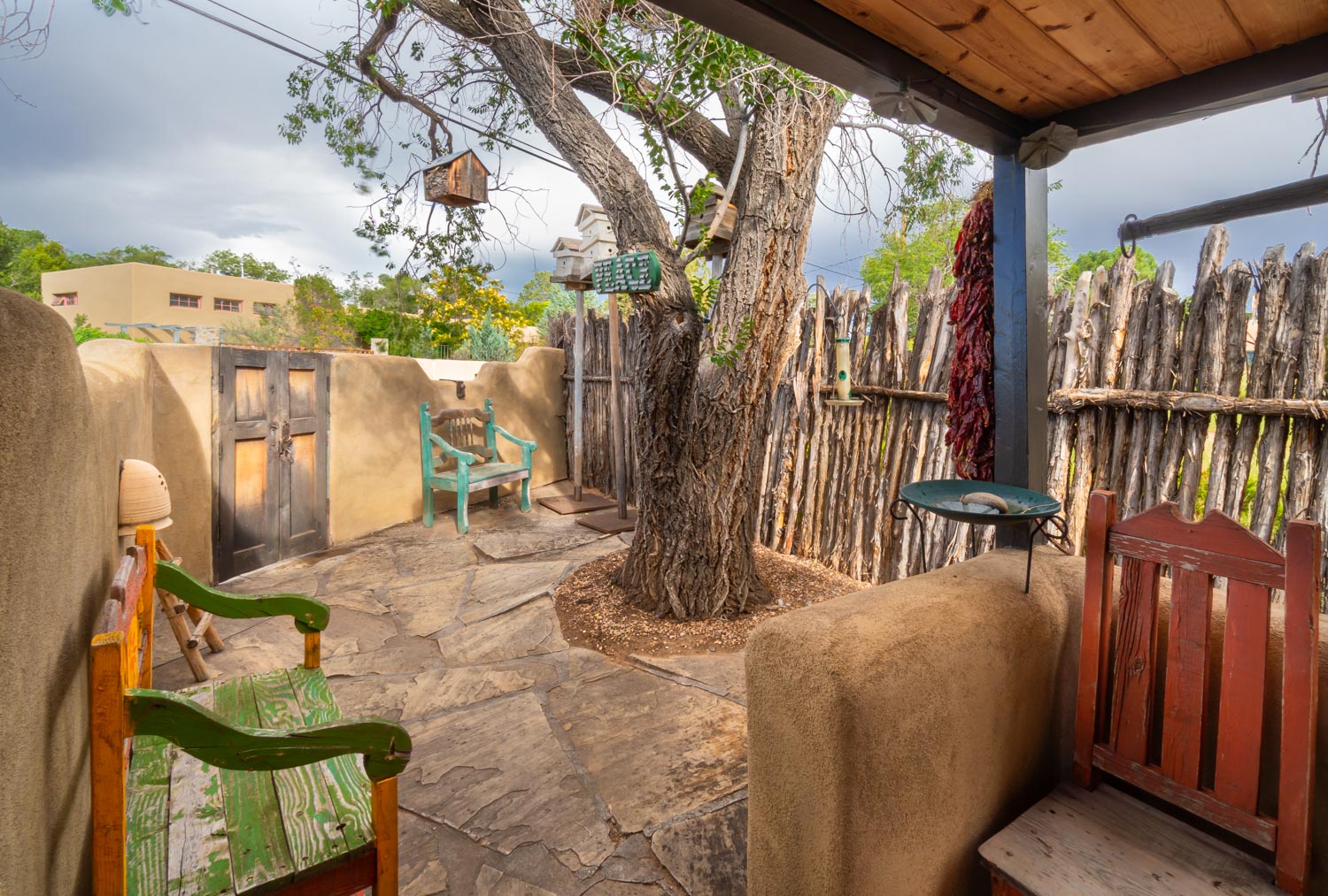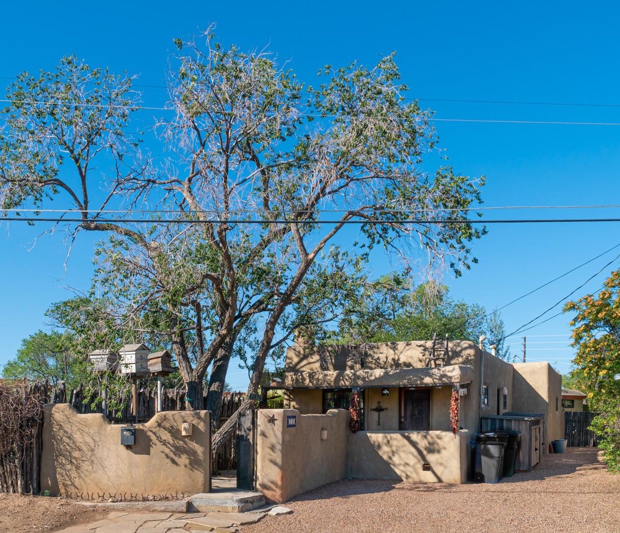 Adobe Cross Roads Back to Search Results Adobe Cross Roads Living room Bar counter Living room Dining table Kitchen Open Gallery Living room Bar counter Living room Dining table Kitchen Hallway half bath Bedroom Bedroom Bedroom Ensuite bathroom Backyard Backyard Front porch Front Porch Front courtyard Front of home Driveway Gallery View Santa Fe, NM 1 Bedrooms 1 full, 1 half Baths 2 Guests 929 sq. ft. Description Rooms Amenities Reviews Calendar Location Welcome to this charming furnished adobe-style home nestled in the heart of downtown Santa Fe, NM. This beautifully maintained 1-bedroom, 1.5-bathroom residence offers a perfect blend of traditional Southwestern architecture and modern comfort. Inside, you'll find warm, inviting spaces with natural light streaming through the windows, highlighting the rich adobe walls and handcrafted finishes. Step outside to enjoy the spacious front yard, perfect for relaxing or entertaining. The backyard provides a peaceful oasis where you can unwind in privacy, with room for outdoor activities. Start your day by sipping your morning coffee on the front porch while listening to the peaceful melodies of the local birds. This home is the perfect retreat, offering both serenity and convenience, just minutes from the vibrant galleries, shops, and dining of downtown Santa Fe. Amenities Bathroom Body Soap Cleaning Products Conditioner Hair Dryer Hot Water Shampoo Shower Gel Bathtub Bedroom & Laundry Bed Linens Dryer - Private Essentials Extra Pillows & Blankets Iron & Ironing Board Towels Wardrobe or Closet Washer - Private Hangers Cleanliness & Safety Carbon Monoxide Detector Common Surfaces Disinfected Deadbolt Lock Disinfectant Used While Cleaning Fire Extinguisher First Aid Kit Self Check-In & Check-Out Smoke Detector Entertainment Smart TV TV Internet & Office Wifi - Free Desk Desk Chair Laptop Friendly Workspace Kitchen & Dining Baking Sheet Blender Coffee Coffee Maker Dining table Dishes & Silverware Dishwasher Freezer Ice Maker Kitchen Microwave Oven Refrigerator Spices Stove Toaster Wine Glasses Location & Attractions Car - Recommended Downtown Historic Themed Mountain Town View - City View - Mountain Museums Other Building, Complex Or Neighborhood Amenities Hospital Other Property Amenities Heating Living Room Portable Fans Parking & Facilities Parking - Free Parking - On Site Free Parking - Street Services Groceries - On Request Chef - Fee Cleaning During Stay - Fee Dry Cleaning - On Request Groceries - Fee Laundry - Fee Sports, Leisure & Adventure Antiquing Bird Watching Fishing Gambling Golf Hiking Horseback Riding Ice Skating Mountain Biking Mountain Climbing Outlet Shopping Rafting Shopping Skiing Sledding Snowboarding Whitewater Rafting Cross Country Skiing Fishing - Fly Fishing - Freshwater Hunting Mountaineering Rock Climbing Wildlife Viewing See All Amenities + Reviews Write A Review Thank you for submitting your review. It will be processed shortly! We value your privacy. Your email address will not be shared publicly. SUBMIT We are sorry, there are no reviews for this unit. Be the first to leave a review! Availability Select your travel dates to view a detailed quote. Location Choose dates to calculate quote Check-in: Check-out: Number of Guests Adults: 1 Adults 2 Adults Children: 0 Children 1 Children 2 Children Okay Share Your Name: Your Email: Recipients Email: Enter one or more recipient email addresses separated by comma Message: Add to Favorites Favorites Print Inquire Inquiry Form - Property Details Page Inquiry form for property pages. FullName(Required) First Last Email(Required) Phone(Required)Arrival(Required) MM slash DD slash YYYY Departure(Required) MM slash DD slash YYYY Comment Δ Inquire XClose Adobe Cross Roads schedule-calendar Check Availability