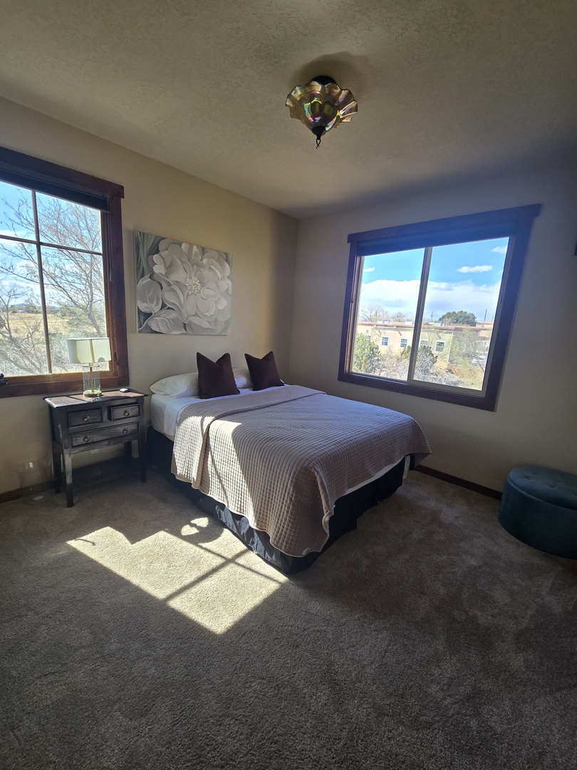 Brunn Haven Home New Mexico Santa Fe Brunn Haven Brunn Haven 20250402_151543 20250402_151439 20250402_151510 Screenshot 2025-04-02 221015 20250402_151851 Open Gallery 20250402_151543 20250402_151439 20250402_151510 Screenshot 2025-04-02 221015 20250402_151851 20250402_151855 20250402_151840 20250402_151405 20250402_151414 20250402_151554 20250402_151623 20250402_151626 20250402_151635 20250402_151611 20250402_151732 20250402_151714 20250402_151708 20250402_151658 20250402_151741 20250402_151950 20250402_151453 20250402_152015 20250402_151956 20250402_152008 20250402_152327 20250402_152020 20250402_152033 20250402_152042 20250402_152051 20250402_152055 20250402_152147 20250402_152159 20250402_152132 20250402_152139 20250402_152212 20250402_152221 20250402_152208 20250402_152236 20250402_152252 20250402_152311 20250402_152538 20250402_152547 Screenshot 2025-04-02 220937 Screenshot 2025-04-02 220958 Screenshot 2025-04-02 221048 Screenshot 2025-04-02 221058 Gallery View Santa Fe, NM 3 Bedrooms 2 full Baths 6 Guests 1986 sq. ft. Pets OK Description Rooms Amenities Reviews Calendar Location This charming, fully furnished 3-bedroom, 2-bathroom house is located in a serene and quiet neighborhood on Brunn School Ln, just across the street from a hospital, offering convenience and peace of mind. Property Features: - 3 Spacious Bedrooms with ample closet space - 2 Modern Bathrooms, featuring sleek finishes - Abundant Natural Light streaming through large windows - Huge Yard, perfect for outdoor activities or relaxation - Gated Entrance for added security and privacy - Modern Appliances, including a fully equipped kitchen with stainless steel appliances - Santa Fe Touches throughout the home, with rustic and elegant design elements to capture the unique spirit of Santa Fe living This home offers a perfect blend of modern comfort and Southwestern charm, ideal for those seeking a peaceful retreat while still being close to essential services. The expansive yard is perfect for family gatherings, pets, or enjoying the New Mexico sunshine. Key Details: - Quiet, peaceful neighborhood - Convenient access to the hospital and local amenities - Large yard for outdoor enjoyment - Fully furnished with tasteful decor - Ideal for professionals, families, or anyone looking for a peaceful sanctuary Don't miss the chance to live in this stunning, sun-filled home in one of Santa Fe's most desirable neighborhoods Amenities Bathroom Body Soap Cleaning Products Combo Bathtub & Shower Conditioner Hair Dryer Hot Water Shampoo Shower Gel Bedroom & Laundry Bed Linens Dryer - Private Essentials Extra Pillows & Blankets Iron & Ironing Board Towels Wardrobe or Closet Washer - Private Hangers Cleanliness & Safety Carbon Monoxide Detector Common Surfaces Disinfected Deadbolt Lock Disinfectant Used While Cleaning Fire Extinguisher First Aid Kit Outdoor Lighting Self Check-In & Check-Out Smoke Detector Entertainment Smart TV TV Internet & Office Wifi - Free Desk Desk Chair Laptop Friendly Workspace Office Kitchen & Dining Baking Sheet Blender Coffee Coffee Maker Dining table Dishes & Silverware Dishwasher Freezer Ice Maker Kitchen Microwave Oven Refrigerator Spices Stove Toaster Wine Glasses Location & Attractions Car - Recommended Downtown Historic Themed Mountain Town View - City View - Mountain Museums Other Building, Complex Or Neighborhood Amenities Hospital Other Property Amenities Heating Living Room Portable Fans Parking & Facilities Parking - Free Parking - On Site Free Parking - Street Services Groceries - On Request Chef - Fee Cleaning During Stay - Fee Dry Cleaning - On Request Groceries - Fee Laundry - Fee Sports, Leisure & Adventure Antiquing Bird Watching Fishing Gambling Golf Hiking Horseback Riding Ice Skating Mountain Biking Mountain Climbing Outlet Shopping Rafting Shopping Skiing Sledding Snowboarding Whitewater Rafting Cross Country Skiing Fishing - Fly Fishing - Freshwater Hunting Mountaineering Rock Climbing Wildlife Viewing Outdoor BBQ Grill - Private Fenced Yard Outdoor Seating & Furniture See All Amenities + Reviews Write A Review Thank you for submitting your review. It will be processed shortly! We value your privacy. Your email address will not be shared publicly. SUBMIT We are sorry, there are no reviews for this unit. Be the first to leave a review! Availability Select your travel dates to view a detailed quote. Location Choose dates to calculate quote Check-in: Check-out: Number of Guests Adults: 1 Adults 2 Adults 3 Adults 4 Adults 5 Adults 6 Adults Children: 0 Children 1 Children 2 Children 3 Children 4 Children 5 Children 6 Children Pets: Pets 0 Pets 1 Pet 2 Pets Okay Share Your Name: Your Email: Recipients Email: Enter one or more recipient email addresses separated by comma Message: Add to Favorites Favorites Print Inquire Inquiry Form - Property Details Page Inquiry form for property pages. FullName(Required) First Last Email(Required) Phone(Required)Arrival(Required) MM slash DD slash YYYY Departure(Required) MM slash DD slash YYYY Comment Δ Inquire XClose Brunn Haven schedule-calendar Check Availability