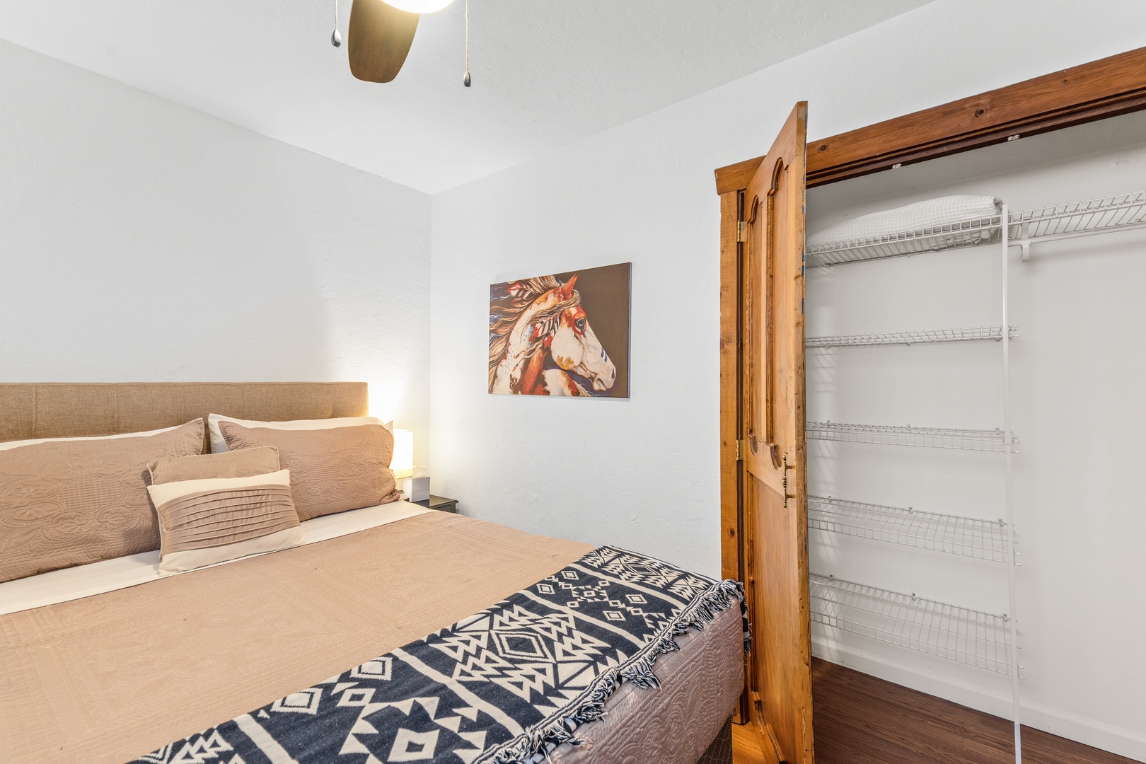 Casa Lupita – Adobe Retreat in the Heart of Santa Fe Back to Search Results Casa Lupita – Adobe Retreat in the Heart of Santa Fe Exterior Living Room Dining Kitchen Southwest Architecture Open Gallery Exterior Living Room Dining Kitchen Southwest Architecture Bedroom Bedroom Bedroom Bedroom Living Room Fireplace Living Room Dining and Kitchen seating Dining Dining Dining Fireplace Kitchen Great for entertaining Full Kitchen Full Kitchen Santa Fe Artwork Hallway Comfortable Seating Bedroom Bedroom Desk Bathroom Walk In Shower Bedroom Bedroom Bedroom Closet Bathroom Double Sinks Bathtub Bathtub Gate Portal Floor Plan Gallery View Santa Fe, NM 4 Bedrooms 2 full Baths 8 Guests Description Rooms Amenities Reviews Calendar Location Nestled in the vibrant heart of Santa Fe, Casa Lupita is an enchanting adobe-style home that invites you to fully experience the rich culture, history, and artistic spirit of this iconic Southwestern city. Thoughtfully designed and brimming with character, this warm and welcoming retreat features four bedrooms, two bathrooms, a cozy living room, a fireplace-adorned dining area, a fully equipped kitchen, and a delightful outdoor patio perfect for unwinding. From the moment you walk through the door, Casa Lupita surrounds you with the charm of Santa Fe. Traditional Southwestern décor, rustic finishes, and colorful textiles create a cozy and authentic ambiance throughout the home. Whether you’re curling up in the inviting living room after a day of exploring or admiring the local artwork that adorns the walls, you’ll feel truly immersed in the local atmosphere. The spacious, fully equipped kitchen is a dream for food lovers. With modern appliances and plenty of counter space, it’s the perfect spot to try your hand at local dishes or prepare family favorites. Enjoy your creations around the dining table, where a glowing fireplace adds warmth and a touch of magic to every meal. Casa Lupita comfortably sleeps a variety of group sizes. The primary King suite features a luxurious ensuite bathroom and offers a serene space to relax and recharge. Two Queen bedrooms provide cozy retreats for couples or solo travelers, while a fourth bedroom with two Twin beds is ideal for kids or additional guests. Each room is tastefully decorated with comfort and rest in mind. Start your day with coffee on the private patio, surrounded by desert air and the colors of blooming flowers. The spacious front patio is a sun-drenched oasis, perfect for soaking in the New Mexico sunshine or enjoying the glow of the gas firepit after sunset. The rear patio offers a shaded area with a table, chairs, and overhead fan—ideal for al fresco dining or relaxing in the evening breeze. At Casa Lupita, we’re committed to making your stay unforgettable. Whether you're looking for the best local dining, art galleries, or cultural experiences, we’re happy to provide personalized recommendations to help you make the most of your Santa Fe getaway. Amenities Bathroom Body Soap Cleaning Products Combo Bathtub & Shower Conditioner Hair Dryer Hot Water Shampoo Shower Gel Bathtub Bedroom & Laundry Bed Linens Dryer - Private Essentials Extra Pillows & Blankets Iron & Ironing Board Towels Wardrobe or Closet Washer - Private Hangers Cleanliness & Safety Carbon Monoxide Detector Common Surfaces Disinfected Deadbolt Lock Disinfectant Used While Cleaning Fire Extinguisher First Aid Kit Self Check-In & Check-Out Smoke Detector Entertainment Smart TV TV Internet & Office Wifi - Free Desk Desk Chair Laptop Friendly Workspace Kitchen & Dining Baking Sheet Blender Coffee Coffee Maker Dining table Dishes & Silverware Dishwasher Freezer Ice Maker Kitchen Microwave Oven Refrigerator Spices Stove Toaster Wine Glasses Location & Attractions Car - Recommended Downtown Historic Themed Mountain Town View - City View - Mountain Museums Family Themed Other Building, Complex Or Neighborhood Amenities Hospital Other Property Amenities Air Conditioning Heating Living Room Portable Fans Fireplace - Gas Pets - Not Allowed Parking & Facilities Parking - Free Parking - On Site Free Parking - Street Services Groceries - On Request Chef - Fee Cleaning During Stay - Fee Dry Cleaning - On Request Groceries - Fee Laundry - Fee Sports, Leisure & Adventure Antiquing Bird Watching Fishing Gambling Golf Hiking Horseback Riding Ice Skating Mountain Biking Mountain Climbing Outlet Shopping Rafting Shopping Skiing Sledding Snowboarding Whitewater Rafting Cross Country Skiing Fishing - Fly Fishing - Freshwater Hunting Mountaineering Rock Climbing Wildlife Viewing Cycling Paddle Boating Family High Chair Pack & Play Travel Crib Outdoor BBQ Grill - Charcoal Fire Pit Garden or Backyard Outdoor Dining Outdoor Seating & Furniture See All Amenities + Reviews Write A Review Thank you for submitting your review. It will be processed shortly! We value your privacy. Your email address will not be shared publicly. SUBMIT We are sorry, there are no reviews for this unit. Be the first to leave a review! Availability Select your travel dates to view a detailed quote. Location Choose dates to calculate quote Check-in: Check-out: Number of Guests Adults: 1 Adults 2 Adults 3 Adults 4 Adults 5 Adults 6 Adults 7 Adults 8 Adults Children: 0 Children 1 Children 2 Children 3 Children 4 Children 5 Children 6 Children 7 Children 8 Children Okay Share Your Name: Your Email: Recipients Email: Enter one or more recipient email addresses separated by comma Message: Add to Favorites Favorites Print Inquire Inquiry Form - Property Details Page Inquiry form for property pages. FullName(Required) First Last Email(Required) Phone(Required)Arrival(Required) MM slash DD slash YYYY Departure(Required) MM slash DD slash YYYY Comment Δ Inquire XClose Casa Lupita – Adobe Retreat in the Heart of Santa Fe schedule-calendar Check Availability