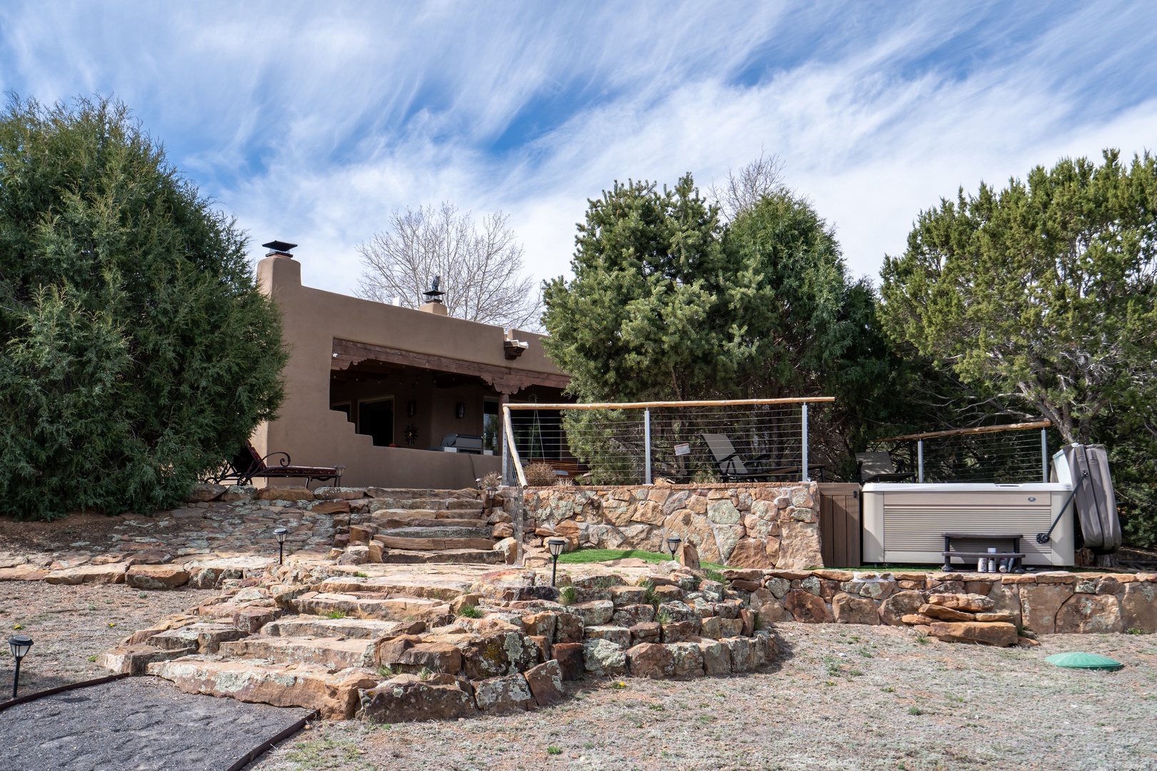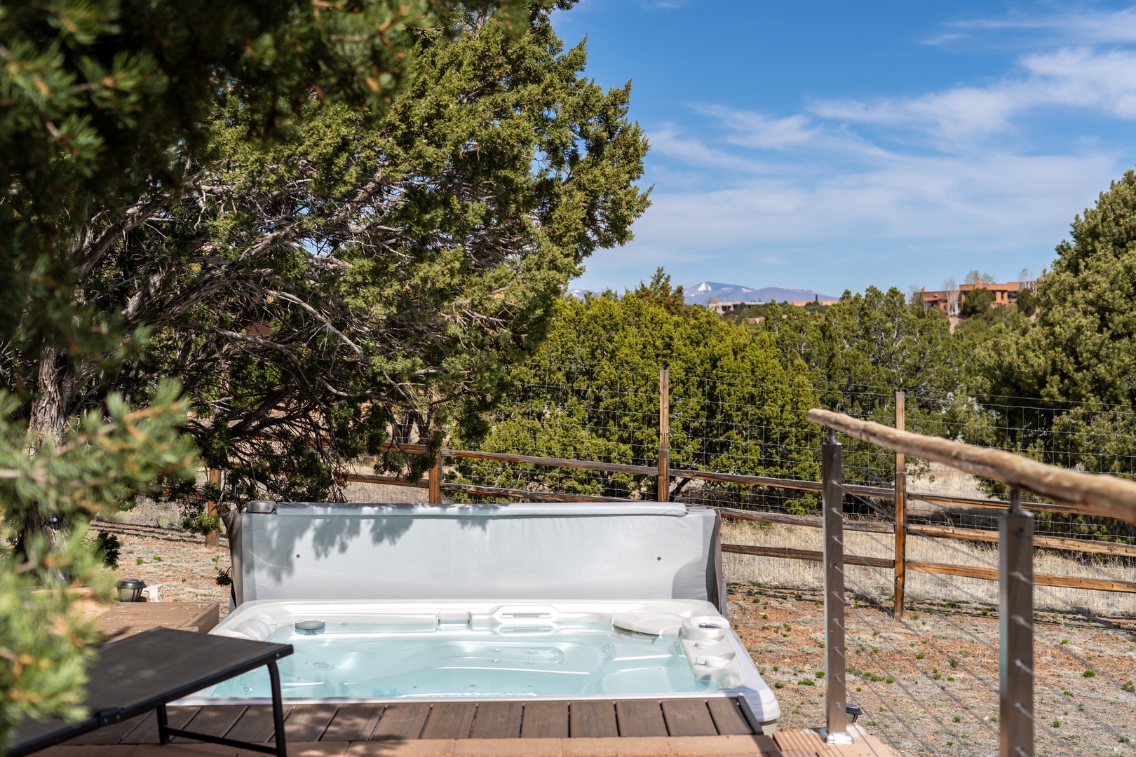 Experience unparalleled luxury and privacy in this secluded mountain retreat with an expansive porch and hot tub.