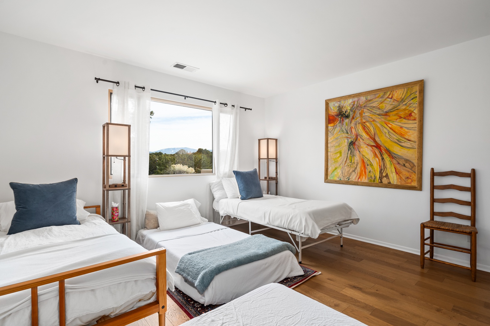 Montano Vista Retreat Montano Vista Retreat Living room Backyard Front Exterior Living room abundant seating and large TV Spacious dining room Open Gallery Living room Backyard Front Exterior Living room abundant seating and large TV Spacious dining room Secure front entry Front entry Back patio Back view exterior Secure private gate Entry way Mountain views from backyard Wood burning kiva on back patio Exterior Hallway decor Spacious bathroom King bedroom Mountain views from back patio Santa Fe decor Bathroom King bed in Master bedroom Driveway Kitchen Guest bedroom with king and twins beds Guest bedroom Living room seating Kitchen table Study and office Exterior view of back patio Guest bathroom Laundry room with full size washer and dryer Shower Exterior Study/Office Wood burning kiva in living room Bathtub Kitchen Exterior Laundry room Living room view Exterior Guest bedroom Guest bedroom Kitchen table Back patio Dining room view with doors to back patio Front exterior Spacious kitchen with island Kitchen Back patio kiva Living room art Dining room Kitchen bar Exterior Shower _DSC5212-Edit Gallery View Santa Fe, NM 3 Bedrooms 2 full Baths 8 Guests 3200 sq. ft. Pets OK Description Rooms Amenities Reviews Calendar Location Peaceful and modern 3 bedroom home with expansive mountain views Amenities Bathroom Body Soap Cleaning Products Conditioner Hair Dryer Hot Water Shampoo Shower Gel Bathtub Bedroom & Laundry Bed Linens Dryer - Private Essentials Extra Pillows & Blankets Iron & Ironing Board Towels Wardrobe or Closet Washer - Private Hangers Cleanliness & Safety Carbon Monoxide Detector Common Surfaces Disinfected Deadbolt Lock Disinfectant Used While Cleaning Fire Extinguisher First Aid Kit Self Check-In & Check-Out Smoke Detector Entertainment Smart TV TV Internet & Office Wifi - Free Desk Desk Chair Laptop Friendly Workspace Office Wifi - Speed 500mbps Kitchen & Dining Baking Sheet Blender Coffee Coffee Maker Dining table Dishes & Silverware Dishwasher Freezer Ice Maker Kitchen Microwave Oven Refrigerator Spices Stove Toaster Wine Glasses Kitchen Island Location & Attractions Car - Recommended Downtown Historic Themed Mountain Town View - City View - Mountain Museums Other Building, Complex Or Neighborhood Amenities Hospital Other Property Amenities Air Conditioning Heating Living Room Portable Fans Ceiling Fan Courtyard - Private Fireplace - Wood or Wood Stove Ground Floor Pets - Allowed Single Level Home Parking & Facilities Parking - Free Parking - On Site Free Parking - Street Garage Services Groceries - On Request Chef - Fee Cleaning During Stay - Fee Dry Cleaning - On Request Groceries - Fee Laundry - Fee Sports, Leisure & Adventure Antiquing Bird Watching Fishing Gambling Golf Hiking Horseback Riding Ice Skating Mountain Biking Mountain Climbing Outlet Shopping Rafting Shopping Skiing Sledding Snowboarding Whitewater Rafting Cross Country Skiing Fishing - Fly Fishing - Freshwater Hunting Mountaineering Rock Climbing Wildlife Viewing Outdoor BBQ Grill - Gas Fenced Yard Outdoor Seating & Furniture See All Amenities + Reviews Write A Review Thank you for submitting your review. It will be processed shortly! We value your privacy. Your email address will not be shared publicly. SUBMIT We are sorry, there are no reviews for this unit. Be the first to leave a review! Availability Select your travel dates to view a detailed quote. Location Choose dates to calculate quote Check-in: Check-out: Number of Guests Adults: 1 Adults 2 Adults 3 Adults 4 Adults 5 Adults 6 Adults 7 Adults 8 Adults Children: 0 Children 1 Children 2 Children 3 Children 4 Children 5 Children 6 Children 7 Children 8 Children Pets: Pets 0 Pets 1 Pet 2 Pets Okay Share Your Name: Your Email: Recipients Email: Enter one or more recipient email addresses separated by comma Message: Add to Favorites Favorites Print Inquire Inquiry Form - Property Details Page Inquiry form for property pages. FullName(Required) First Last Email(Required) Phone(Required)Arrival(Required) MM slash DD slash YYYY Departure(Required) MM slash DD slash YYYY Comment Δ Inquire XClose Montano Vista Retreat schedule-calendar Check Availability