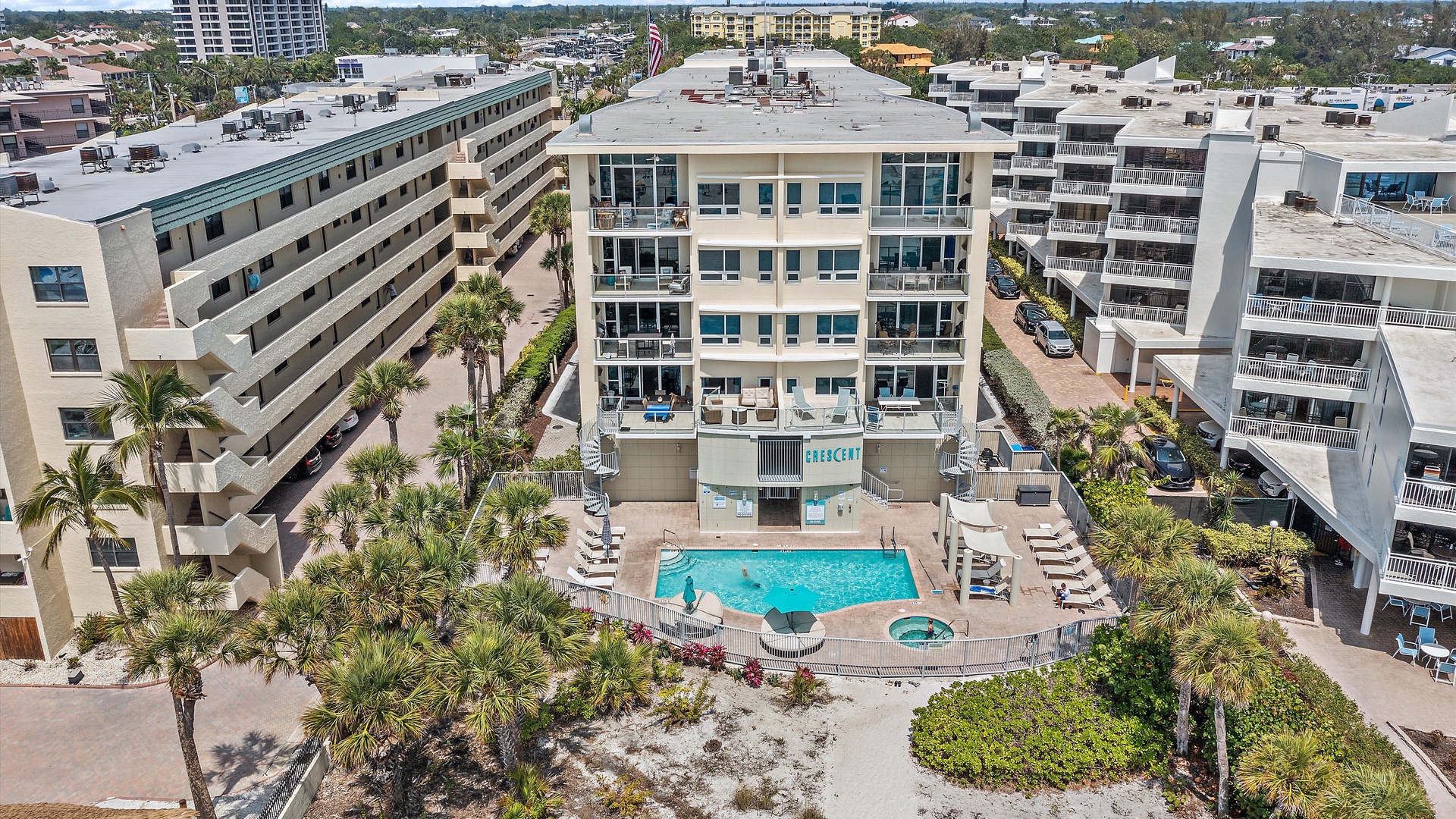 Crescent Siesta Key Charmer Crescent Siesta Key Charmer Gorgeous views of Siesta Key Beach from the private balcony in an unbeatable location. Modern kitchen with granite countertops, a double sink, and built-in appliances. Sunlit with large windows and pendant lights. Open to dining and main living space. A spacious balcony with a glass-top table and six chairs overlooks Siesta Key. Outdoor pool area with sun loungers, umbrellas, and a hot tub. A sandy path flanked by green vegetation and palm trees leads to Siesta Key Beach for convenient and private beach access. Open Gallery Gorgeous views of Siesta Key Beach from the private balcony in an unbeatable location. Modern kitchen with granite countertops, a double sink, and built-in appliances. Sunlit with large windows and pendant lights. Open to dining and main living space. A spacious balcony with a glass-top table and six chairs overlooks Siesta Key. Outdoor pool area with sun loungers, umbrellas, and a hot tub. A sandy path flanked by green vegetation and palm trees leads to Siesta Key Beach for convenient and private beach access. Modern condominium on Siesta Key with private pool and private beach access and loungers. Private pool with lounge chairs and umbrellas, hot tub, surrounded by tropical foliage.. Primary bedroom with King bed, two nightstands, lamps, a dresser for storage with a mirror. Stainless steel outdoor gas grill available for use. Primary bedroom with King bed and plush linens, two nightstands, lamps, a dresser for storage with a mirror. Primary bedroom with King bed and plush linens, with patio and balcony access Large soaking tub and walk-in shower in primary bathroom. Large soaking tub and walk-in shower in primary bathroom stocked with fresh plush towels. Large bathtub and walk-in shower in primary bathroom stocked with fresh plush towels. Double sink vanity featuring granite countertops, a large wall mirror, and modern fixtures. To the left, there is a walk-in shower and a freestanding bathtub and plush bath towels. Secondary bedroom with two full beds, a nightstand with a lamp, a ceiling fan, and a sliding glass door leading to a balcony with an outdoor view. Secondary bedroom with two comfortable full beds with plush linens, nightstand with a lamp. Two full beds, a dresser with a TV, and sliding glass doors leading to an exterior view with balconies. Bathroom with a glass-enclosed walk-in shower, fresh towels, and toiletries. Bunk bedroom with twin beds, a nightstand with a lamp. There is a door on one side and a sliding glass door leading to a balcony. Bunk beds, seating, and large glass doors leading to a balcony with additional seating and views. Bunk bed room with two twin beds with patio access. Laundry room with washer and dryer, and plenty of beach essentials. Large balcony with lounge chairs, and unobstructed view of the ocean and Siesta Key Beach. Great views of Siesta Key Beach perfect for a morning cup of coffee or watching the ocean sunset. Aerial view of beachfront condominium with private swimming pool, surrounded by tropical foliage. Private balcony with a glass table and seating for six, featuring sliding glass doors leading inside. A modern kitchen with granite countertops, additional bar stool seating at island. Hanging pendant lights illuminate the counter area. Dining area with plenty of seating perfect for family meals and gatherings. A modern, well-lit kitchen and dining area with high ceilings, and large windows. The space includes a dining table with chairs, bar stools at the kitchen counter for additional seating. Modern kitchen overlooks the spacious living area. Kitchen packed with cooking essentials perfect for cooking at home. All the kitchen essentials you need for your stay for easy meal preparation at home. Spacious living room with a high ceiling, scenic views, large windows providing natural light. Living room with Smart TV perfect for streaming your favorite shows for a family movie night. Plenty of seating in the spacious living area with balcony access. Spacious living area with natural light open to the kitchen and dining area creating an environment perfect for gatherings and socializing with friends and family at Siesta Key Beach. Loungers available on the outdoor private balcony patio with perfect views of Siesta Key Beach. Private balcony overlooking Siesta Key perfect for a morning coffee or tranquil evening sunset. Direct views of the ocean and beach from the condo. Perfect for a Siesta Key Beach get-away with friends or family. Private pool and private beach access with loungers available. Patio access from various rooms with unobstructed views of the beach and ocean. Sliding glass sliding doors, a table with seating for six, and a built-in outdoor grill. Gorgeous balcony views of the area and beach from the condo. Entryway foyer with sand-resistant Turkish beach towels provided for your convenience. Storage available for guest use. Private pool and hot tub with pool loungers and beach access, Modern beachfront condominium with private pool and access to Siesta Key Beach. Private walkway to Siesta Key Beach. Aerial view of condominium and Siesta Key Beach. Aerial view of condominium and private beach access to Siesta Key Beach. Aerial view of beach front condominium and Siesta Key Beach. Private beach access with beach chairs and essentials available. Aerial view of beachfront condos with palm trees, a swimming pool, and the ocean. Gallery View Siesta Key, FL 3 Bedrooms 2 full Baths 6 Guests 1763 sq. ft. (4.9) Description Rooms Amenities Reviews Calendar Location Stay in one of Siesta Key’s newest beachfront complexes with breathtaking gulf views and high-end amenities. Perfect for a group of 6! This gated, luxury building with only 26 units offers 2 pools, hot tub, fitness room, lush gardens, and private beach access with lounge chairs. What You’ll Love: -Spacious 3-bedroom, 2-bath condo with open layout and tons of natural light -Main balcony (access from li