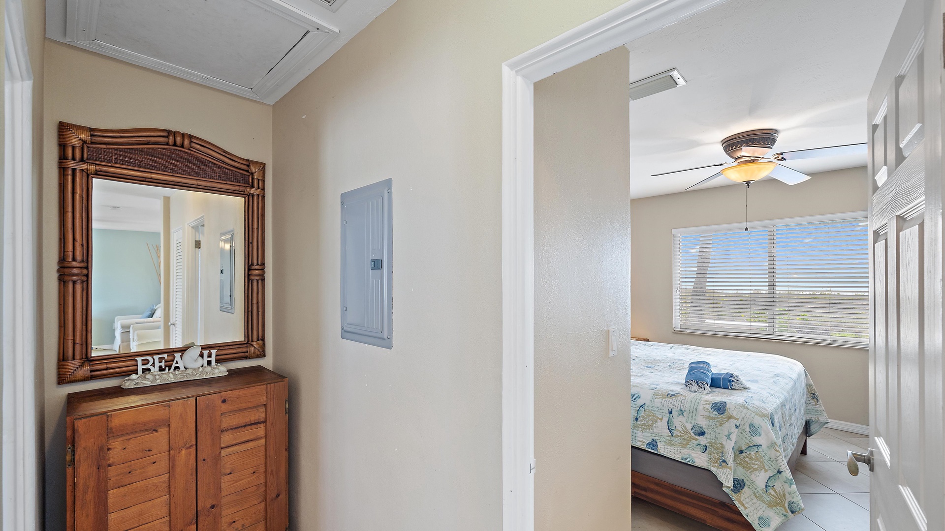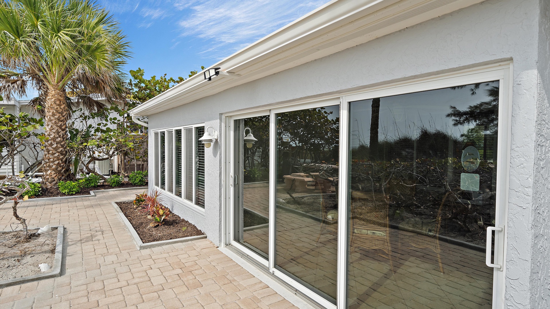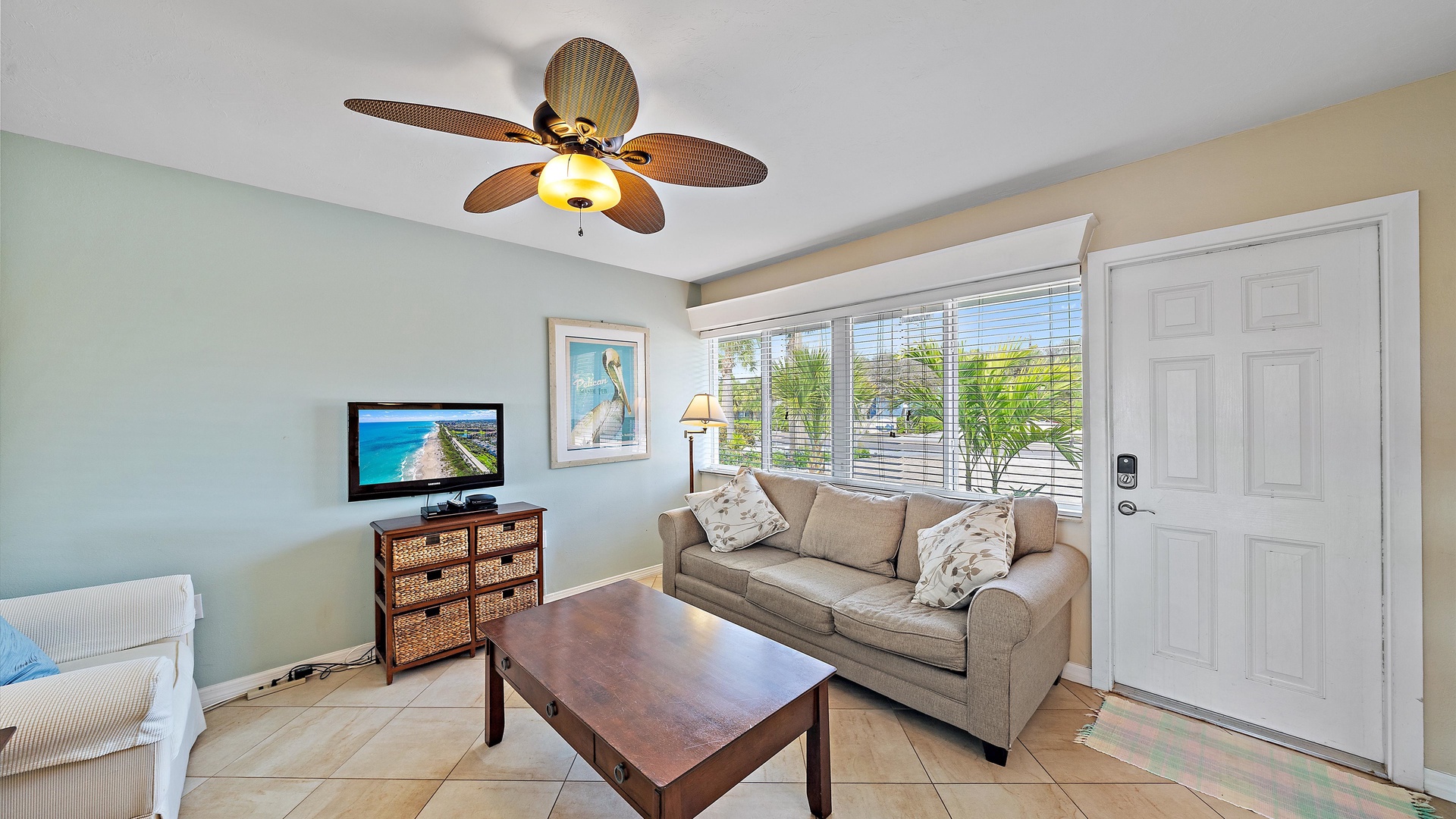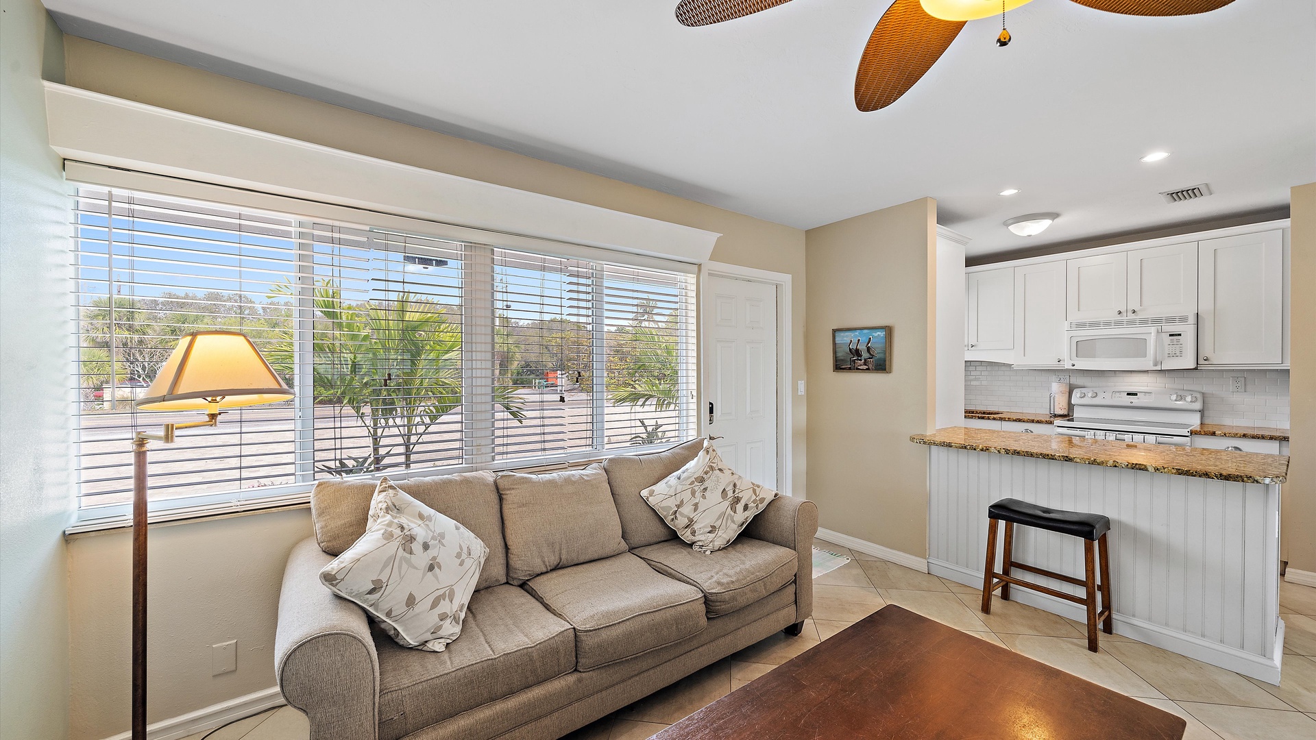 Las Hermanas 3 Home Florida Sarasota Las Hermanas 3 Las Hermanas 3 A cozy living room with a ceiling fan, two white armchairs, a beige sofa, a wooden coffee table, and a TV on a wicker stand. There's a large window and a door leading to a well-lit hallway. A bedroom with a large bed covered in a patterned duvet, a ceiling fan, a window with blinds, framed artwork, a bedside table with a lamp, a chair, and a dresser. A compact kitchen with white cabinets, granite countertops, an electric stove, microwave, refrigerator, and a small sink beneath a window with blinds. A small dining area with a round glass table and four wicker chairs, situated next to large sliding glass doors that open to a patio and garden view. A ceiling fan is mounted above the table. A modern bathroom with a granite countertop, single sink vanity, white bathtub with curtain, white tiled walls, and a window with shutters. There is a towel bar, overhead light, and round mirror. Open Gallery A cozy living room with a ceiling fan, two white armchairs, a beige sofa, a wooden coffee table, and a TV on a wicker stand. There's a large window and a door leading to a well-lit hallway. A bedroom with a large bed covered in a patterned duvet, a ceiling fan, a window with blinds, framed artwork, a bedside table with a lamp, a chair, and a dresser. A compact kitchen with white cabinets, granite countertops, an electric stove, microwave, refrigerator, and a small sink beneath a window with blinds. A small dining area with a round glass table and four wicker chairs, situated next to large sliding glass doors that open to a patio and garden view. A ceiling fan is mounted above the table. A modern bathroom with a granite countertop, single sink vanity, white bathtub with curtain, white tiled walls, and a window with shutters. There is a towel bar, overhead light, and round mirror. Oceanfront property with a sandy beach, a blue ocean, and a clear sky. The house has a driveway with a single car and is surrounded by trees and greenery. White plastic lounge chairs are scattered across a sandy beach area surrounded by tall grass and trees, with several single-story buildings in the background under a partly cloudy sky. A cozy living room with a beige couch, a wooden coffee table, a wall-mounted TV showing a beach scene, and a window letting in natural light. A ceiling fan with wooden blades is above. A cozy living room with beige walls, tiled floor, and a ceiling fan. It features a couch, armchair, coffee table, and a table lamp. An open kitchen with white cabinets is visible in the background. A cozy living room featuring two sofas, a coffee table, a ceiling fan, a small flat-screen TV, framed artwork, and large windows with blinds. A cozy living space with a beige sofa, two patterned pillows, and a lamp by a window with blinds. The room connects to a kitchen area with a bar stool, white cabinets, and a microwave. A cozy living room with a ceiling fan, a beige sofa, a wooden coffee table, a small TV, and a window with blinds. The door is next to the sofa with light streaming in through the window. A cozy living room with two white armchairs, a brown coffee table, and a ceiling fan. A kitchen area with white cabinets is visible in the background. Large windows show an outdoor view. A modern living room with a TV, wicker cabinet, beige sofa, and wall art. A granite countertop with white cabinetry is in the foreground. Windows with blinds bring in natural light. A compact kitchen with white cabinets, granite countertops, an electric stove, a microwave, and a small window with white blinds, offering a view of greenery outside. A compact kitchen with white cabinets, beige walls, granite countertops, an electric stove, a microwave, a small sink, and a window with white blinds offering a view of greenery outside. A kitchen with white cabinets, granite countertops, an electric stovetop, and a white microwave above it. A small door leads to another room in the background. A kitchen with beige walls and tile flooring features white cabinets, a white stove, a microwave, and a granite countertop. There's a framed picture on the wall and a hallway with a louvered door on the right. A cozy living room with a ceiling fan, white furniture, a wooden coffee table, and a TV displaying a scenic view. Large windows with blinds allow natural light. A kitchen countertop is in the foreground. A cozy living room features two white armchairs, a wooden coffee table, a wicker TV stand with a flat-screen TV, and a ceiling fan. The room opens to a sunroom with large windows and a table lamp. A cozy living area with white furniture and blue pillows, a wooden side table with a lit lamp, a window with blinds, and an open door leading to a bright, tiled sunroom. A sunlit room with light beige walls featuring a glass-top dining table and four wicker and wood chairs, a ceiling fan above, and large windows with a view into another room. A sunlit room with tiled flooring features a glass-topped table surrounded by wicker chairs, a ceiling fan above, large windows with an outdoor view, and an open door leading to another room. A sunroom with a glass table and four wicker chairs, a cushioned lounge chair, tiled floor, ceiling fan with light, and large sliding glass doors leading to an outdoor patio area. View through a glass sliding door to a patio with a grill, chairs, table, and greenery. Beyond the patio, there are trees, bushes, and a view of the sky and ocean. A sunroom with a ceiling fan, round glass table, four wicker chairs, and tiled floors. The room has large windows and an open doorway leading to an adjacent area. A sunroom with a wicker chair, a small table holding a microwave and fruit basket, large windows with blinds, and a glass-paneled door leading into the room. Bedroom with King bed Bedroom with King bed Bedroom with King bed A hallway leads to a bedroom; a wooden mirror and cabinet stand on the left with a "BEACH" sign, and a blue floral bedspread is visible t