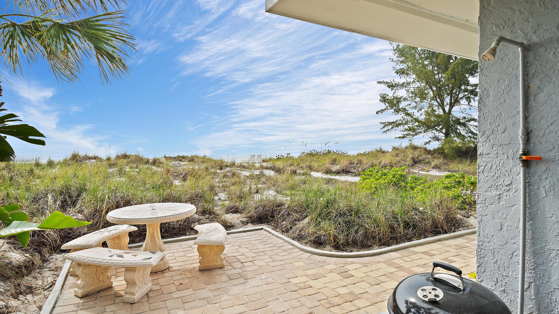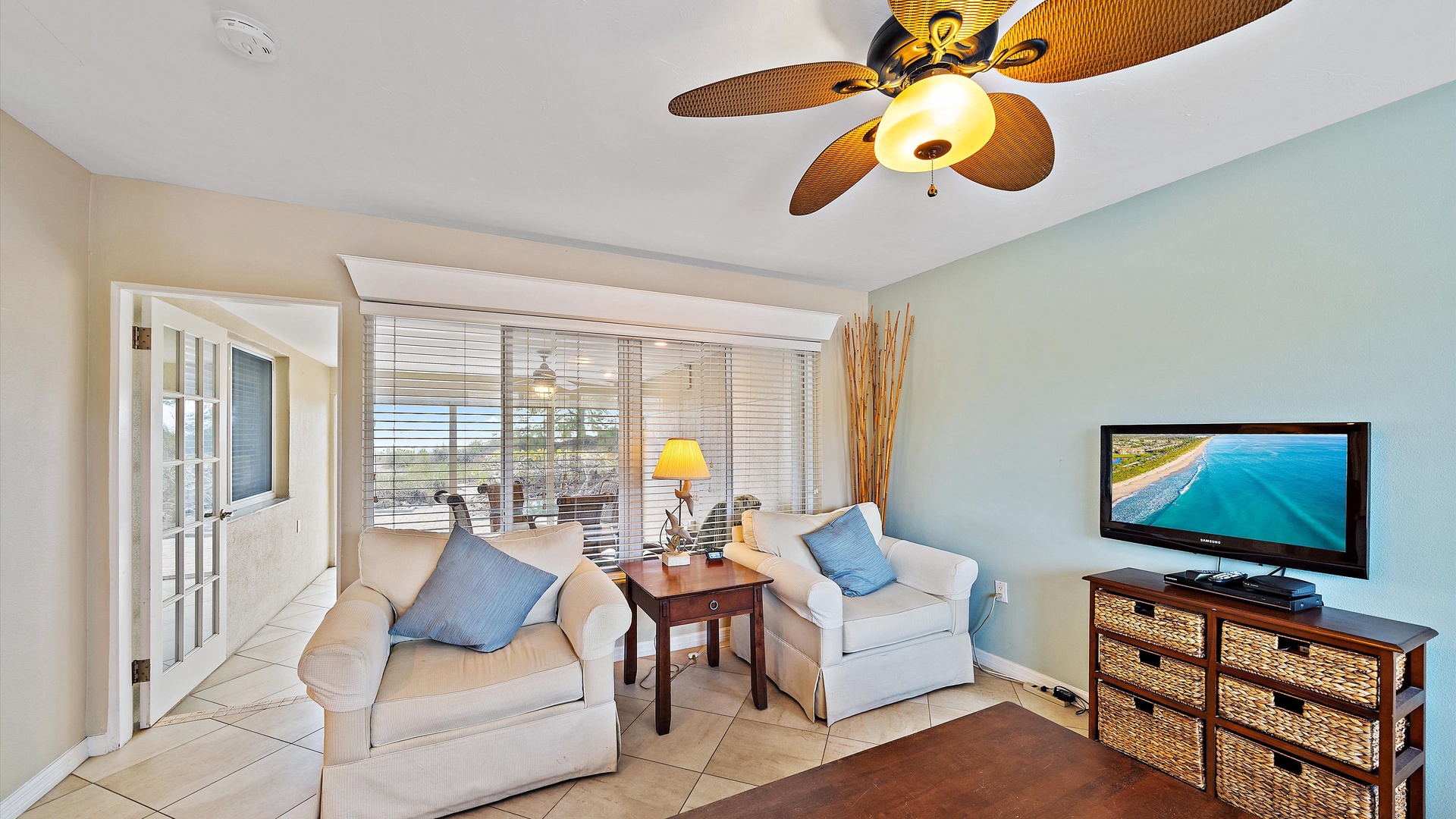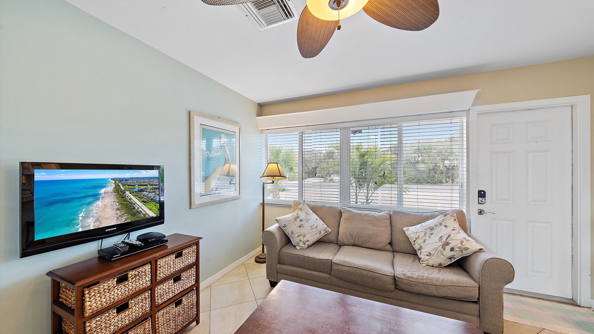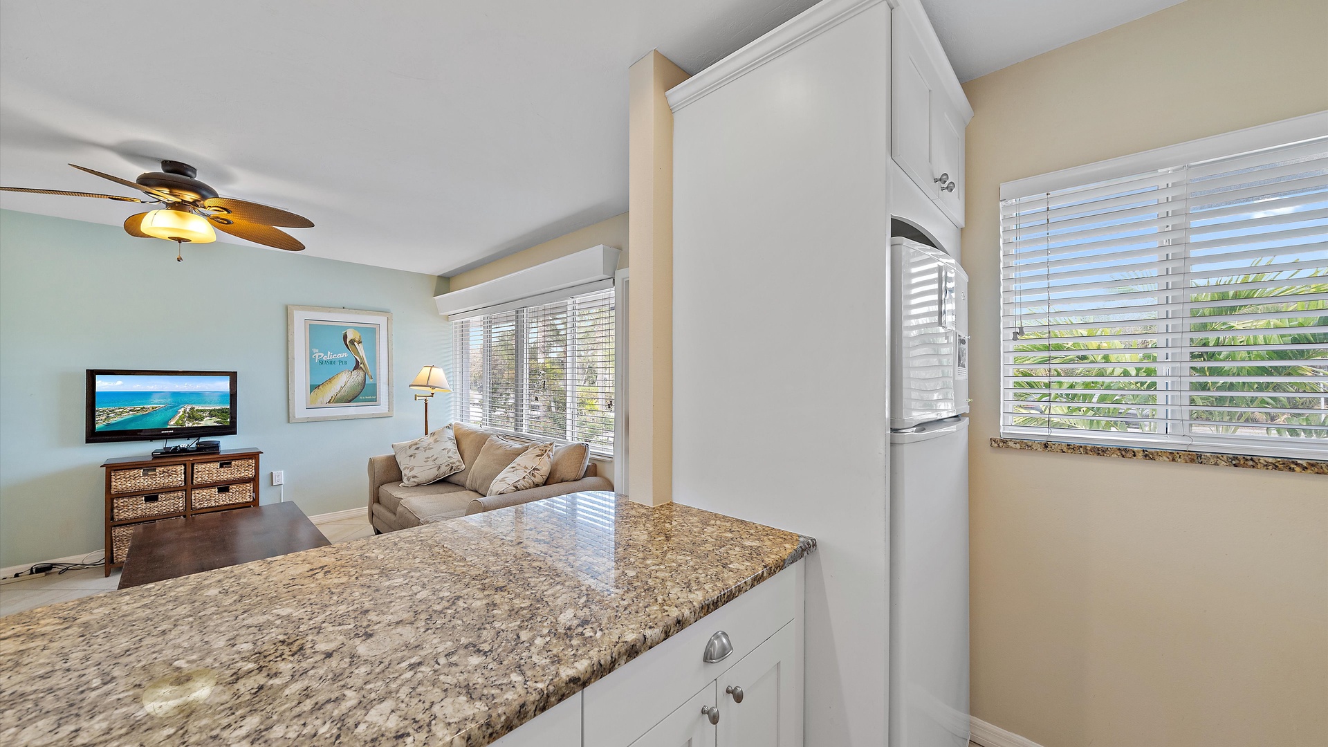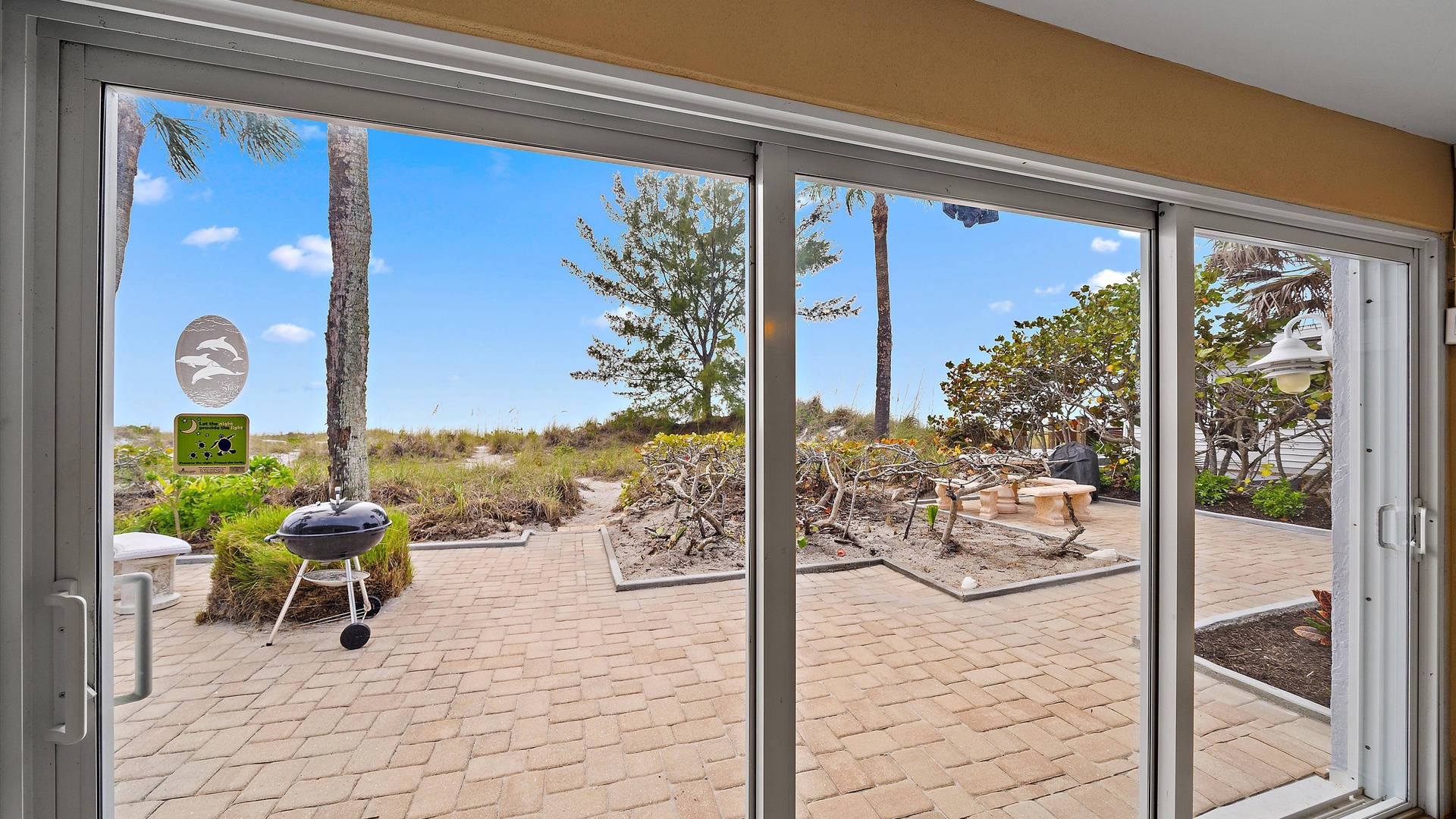 Las Hermanas 3 Home Florida Sarasota Las Hermanas 3 Las Hermanas 3 A cozy living room with a ceiling fan, two white armchairs, a beige sofa, a wooden coffee table, and a TV on a wicker stand. There's a large window and a door leading to a well-lit hallway. A bedroom with a large bed covered in a patterned duvet, a ceiling fan, a window with blinds, framed artwork, a bedside table with a lamp, a chair, and a dresser. A compact kitchen with white cabinets, granite countertops, an electric stove, microwave, refrigerator, and a small sink beneath a window with blinds. A small dining area with a round glass table and four wicker chairs, situated next to large sliding glass doors that open to a patio and garden view. A ceiling fan is mounted above the table. A modern bathroom with a granite countertop, single sink vanity, white bathtub with curtain, white tiled walls, and a window with shutters. There is a towel bar, overhead light, and round mirror. Open Gallery A cozy living room with a ceiling fan, two white armchairs, a beige sofa, a wooden coffee table, and a TV on a wicker stand. There's a large window and a door leading to a well-lit hallway. A bedroom with a large bed covered in a patterned duvet, a ceiling fan, a window with blinds, framed artwork, a bedside table with a lamp, a chair, and a dresser. A compact kitchen with white cabinets, granite countertops, an electric stove, microwave, refrigerator, and a small sink beneath a window with blinds. A small dining area with a round glass table and four wicker chairs, situated next to large sliding glass doors that open to a patio and garden view. A ceiling fan is mounted above the table. A modern bathroom with a granite countertop, single sink vanity, white bathtub with curtain, white tiled walls, and a window with shutters. There is a towel bar, overhead light, and round mirror. Oceanfront property with a sandy beach, a blue ocean, and a clear sky. The house has a driveway with a single car and is surrounded by trees and greenery. White plastic lounge chairs are scattered across a sandy beach area surrounded by tall grass and trees, with several single-story buildings in the background under a partly cloudy sky. A cozy living room with a beige couch, a wooden coffee table, a wall-mounted TV showing a beach scene, and a window letting in natural light. A ceiling fan with wooden blades is above. A cozy living room with beige walls, tiled floor, and a ceiling fan. It features a couch, armchair, coffee table, and a table lamp. An open kitchen with white cabinets is visible in the background. A cozy living room featuring two sofas, a coffee table, a ceiling fan, a small flat-screen TV, framed artwork, and large windows with blinds. A cozy living space with a beige sofa, two patterned pillows, and a lamp by a window with blinds. The room connects to a kitchen area with a bar stool, white cabinets, and a microwave. A cozy living room with a ceiling fan, a beige sofa, a wooden coffee table, a small TV, and a window with blinds. The door is next to the sofa with light streaming in through the window. A cozy living room with two white armchairs, a brown coffee table, and a ceiling fan. A kitchen area with white cabinets is visible in the background. Large windows show an outdoor view. A modern living room with a TV, wicker cabinet, beige sofa, and wall art. A granite countertop with white cabinetry is in the foreground. Windows with blinds bring in natural light. A compact kitchen with white cabinets, granite countertops, an electric stove, a microwave, and a small window with white blinds, offering a view of greenery outside. A compact kitchen with white cabinets, beige walls, granite countertops, an electric stove, a microwave, a small sink, and a window with white blinds offering a view of greenery outside. A kitchen with white cabinets, granite countertops, an electric stovetop, and a white microwave above it. A small door leads to another room in the background. A kitchen with beige walls and tile flooring features white cabinets, a white stove, a microwave, and a granite countertop. There's a framed picture on the wall and a hallway with a louvered door on the right. A cozy living room with a ceiling fan, white furniture, a wooden coffee table, and a TV displaying a scenic view. Large windows with blinds allow natural light. A kitchen countertop is in the foreground. A cozy living room features two white armchairs, a wooden coffee table, a wicker TV stand with a flat-screen TV, and a ceiling fan. The room opens to a sunroom with large windows and a table lamp. A cozy living area with white furniture and blue pillows, a wooden side table with a lit lamp, a window with blinds, and an open door leading to a bright, tiled sunroom. A sunlit room with light beige walls featuring a glass-top dining table and four wicker and wood chairs, a ceiling fan above, and large windows with a view into another room. A sunlit room with tiled flooring features a glass-topped table surrounded by wicker chairs, a ceiling fan above, large windows with an outdoor view, and an open door leading to another room. A sunroom with a glass table and four wicker chairs, a cushioned lounge chair, tiled floor, ceiling fan with light, and large sliding glass doors leading to an outdoor patio area. View through a glass sliding door to a patio with a grill, chairs, table, and greenery. Beyond the patio, there are trees, bushes, and a view of the sky and ocean. A sunroom with a ceiling fan, round glass table, four wicker chairs, and tiled floors. The room has large windows and an open doorway leading to an adjacent area. A sunroom with a wicker chair, a small table holding a microwave and fruit basket, large windows with blinds, and a glass-paneled door leading into the room. Bedroom with King bed Bedroom with King bed Bedroom with King bed A hallway leads to a bedroom; a wooden mirror and cabinet stand on the left with a "BEACH" sign, and a blue floral bedspread is visible t
