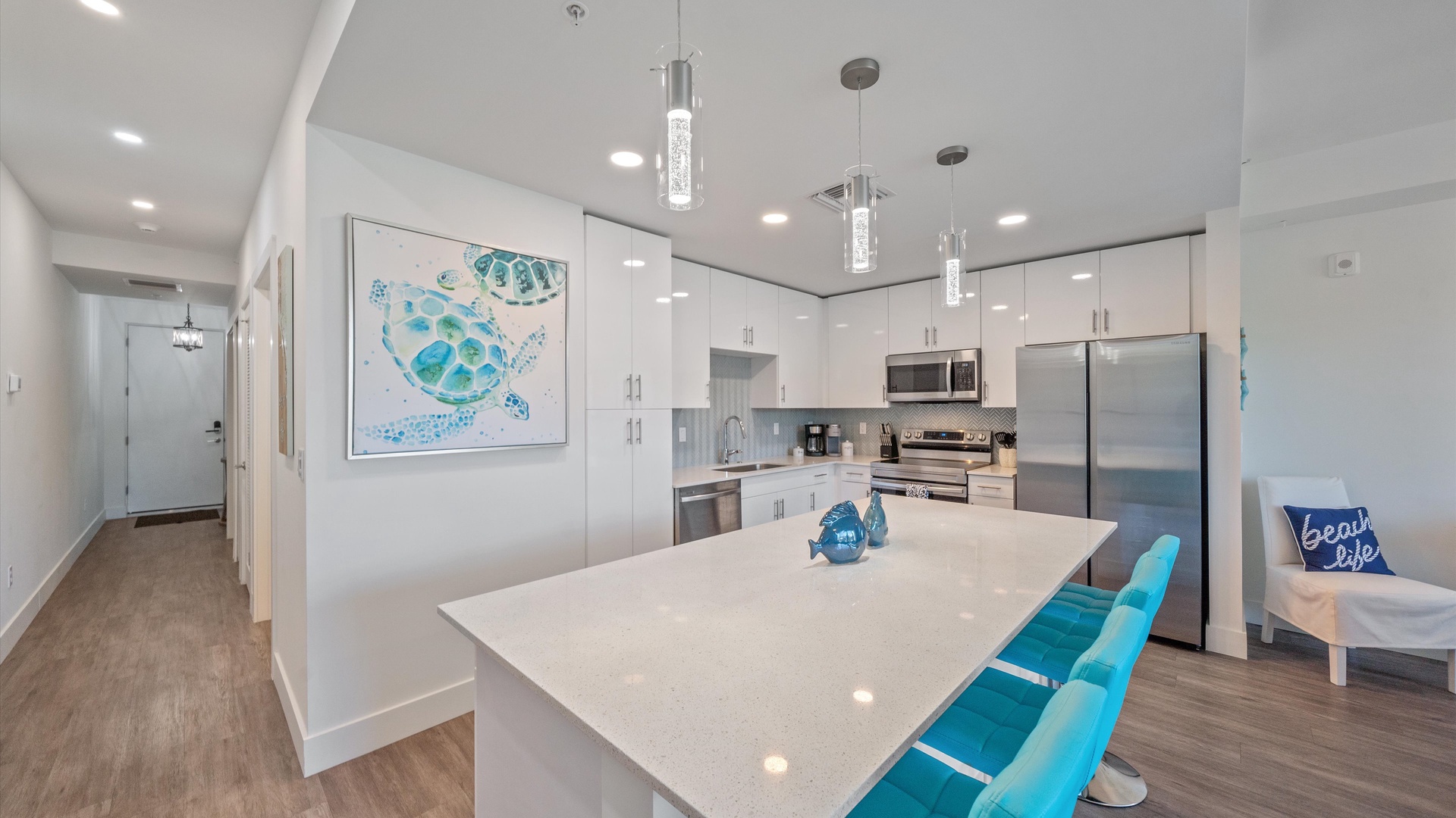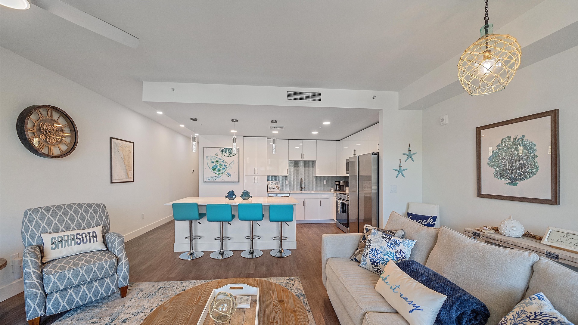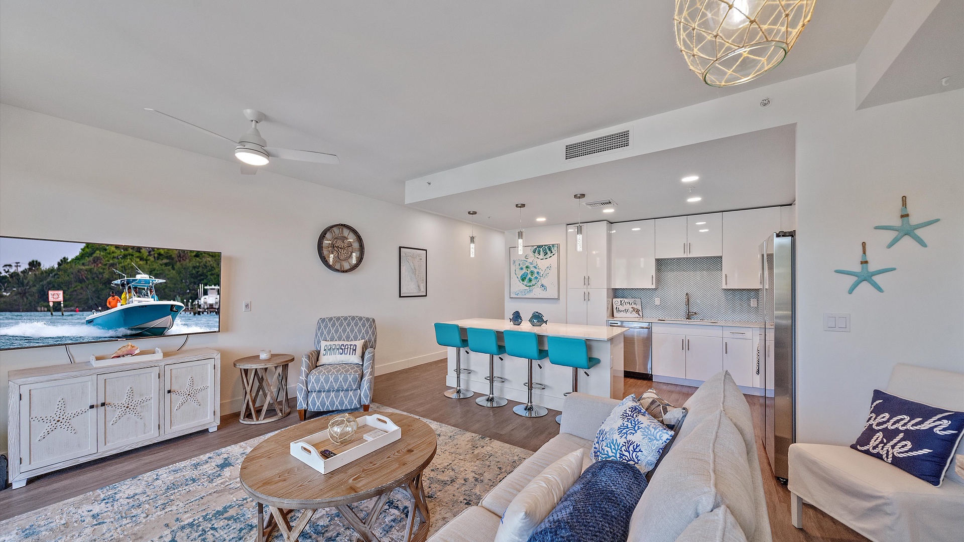 Sunsets at The Strand Home Sarasota Sunsets at The Strand Sunsets at The Strand Unwind in the beautifully decorated coastal living room, featuring a comfortable sofa, large Smart TV, and direct access to your scenic balcony. This expansive, open-concept living area is perfectly appointed with coastal decor and offers a beautiful, seamless flow right into the gourmet kitchen. Relax in this serene coastal-inspired bedroom featuring a plush Queen bed, modern décor, and an en-suite bath for your comfort. Relax outdoors by the cozy firepit overlooking the pool and grill area with gorgeous sunset views. Enjoy resort-style living with a pool and hot tub, perfectly situated next to the on-site fitness center and amenity building. Open Gallery Unwind in the beautifully decorated coastal living room, featuring a comfortable sofa, large Smart TV, and direct access to your scenic balcony. This expansive, open-concept living area is perfectly appointed with coastal decor and offers a beautiful, seamless flow right into the gourmet kitchen. Relax in this serene coastal-inspired bedroom featuring a plush Queen bed, modern décor, and an en-suite bath for your comfort. Relax outdoors by the cozy firepit overlooking the pool and grill area with gorgeous sunset views. Enjoy resort-style living with a pool and hot tub, perfectly situated next to the on-site fitness center and amenity building. Your private view overlooks the stunning canal waters and docks, offering a serene setting ideal for fishing and manatee watching in Sarasota. Make the most of the canal waters with easy access to the community kayak and paddleboard racks, perfect for a day of exploring near the Sarasota bay and beaches. Cook with ease in the modern kitchen, complete with stainless-steel appliances, a large island with four seating, and vibrant coastal accents. This welcoming and beautifully decorated space, featuring eye-catching coastal decor and a view of the modern kitchen, creates the perfect home base for your Sarasota getaway. Enjoy your Sarasota vacation in this beautifully decorated living area, where large sliding doors open up to a private balcony with scenic views. This open-concept kitchen and living space features sleek stainless-steel appliances, a spacious island, and coastal-inspired décor with views of swaying palms. This beautifully decorated coastal living space, featuring a Smart TV and a view of the breakfast bar, is the ideal retreat after a day on the Sarasota beaches. This cozy coastal-themed living room provides a relaxing space to watch the Smart TV and enjoy the natural light pouring in from the private balcony. Relax in this bright, open-concept living space, featuring coastal decor and a Smart TV that flows seamlessly onto a private balcony. This beautifully decorated coastal space, featuring charming nautical accents and a functional fold-out table, is a bright, inviting area to dine. Your private balcony is the perfect spot to enjoy the beautiful Sarasota weather and watch the boats go by with relaxing waterfront views. Unwind on your spacious, private balcony with comfortable seating, enjoying the stunning water views and the sunny Sarasota weather. Gorgeous relaxing canal views and gentle coastal breezes on the private balcony. Dine al fresco on the balcony, a perfect spot to enjoy a morning coffee with relaxing water views and a gentle coastal breeze. This modern, fully-equipped kitchen, featuring a four-seating sparkling quartz island and vibrant coastal decor, is perfect for preparing meals after a fun day at the top beaches. Gather around the oversized quartz island, complete with vibrant seating and charming coastal decor, making it the heart of your Sarasota vacation. The fully-equipped coastal kitchen boasts sleek, white cabinetry and a beautiful blue glass backsplash, perfect for preparing meals between trips to the Sarasota beaches. Enjoy a convenient cooking experience with stainless steel appliances and kitchen essentials. Modern kitchen, with stainless steel appliances and plenty of kitchen essentials for at-home meals. Start your mornings right with both a traditional drip and Keurig coffee maker. Appreciate the thoughtful coastal decor, and marine art, set against the sleek quartz countertop of the modern kitchen. Wake up refreshed in this bright and airy bedroom with coastal artwork, stylish furnishings, and a private en-suite bathroom. This inviting bedroom offers a spacious layout with a plush bed, ample storage, and easy access to the en-suite bathroom. Coastal touches and soft natural light create a peaceful retreat, complete with a Queen bed and dresser for your convenience. The sleek en-suite bathroom features modern finishes, a spacious vanity, and a shower-tub combo for added comfort. Unwind after a day at Sarasota’s beaches in the clean, modern shower-tub combo with fresh, hotel-style linens. Enjoy the convenience of an in-unit washer and dryer. Sand-resistant Turkish beach towels provided. A bright half-bath with fun coastal starfish décor adds charm and convenience to your Sarasota stay. Welcome to your Sarasota retreat, where the delightful coastal decor in the entryway instantly sets the mood for a relaxing beach vacation. Enjoy a fun cookout using the outdoor community grills and dining area, located conveniently next to the sparkling community pool. Follow the sign for the convenient Kayak Launch, providing easy access to the canal waters for paddling, fishing, and manatee watching right in Sarasota. Direct water access from the community dock makes it easy to launch kayaks, go fishing, or simply enjoy the Sarasota canal waterfront. Settle onto the waterside bench and enjoy the expansive, unobstructed canal water views, a peaceful spot perfect for manatee watching and soaking up the Sarasota sun. This breathtaking aerial view highlights your property's direct canal waterfront access, featuring private boat slips and a quick path to the stunning open waters of Saraso