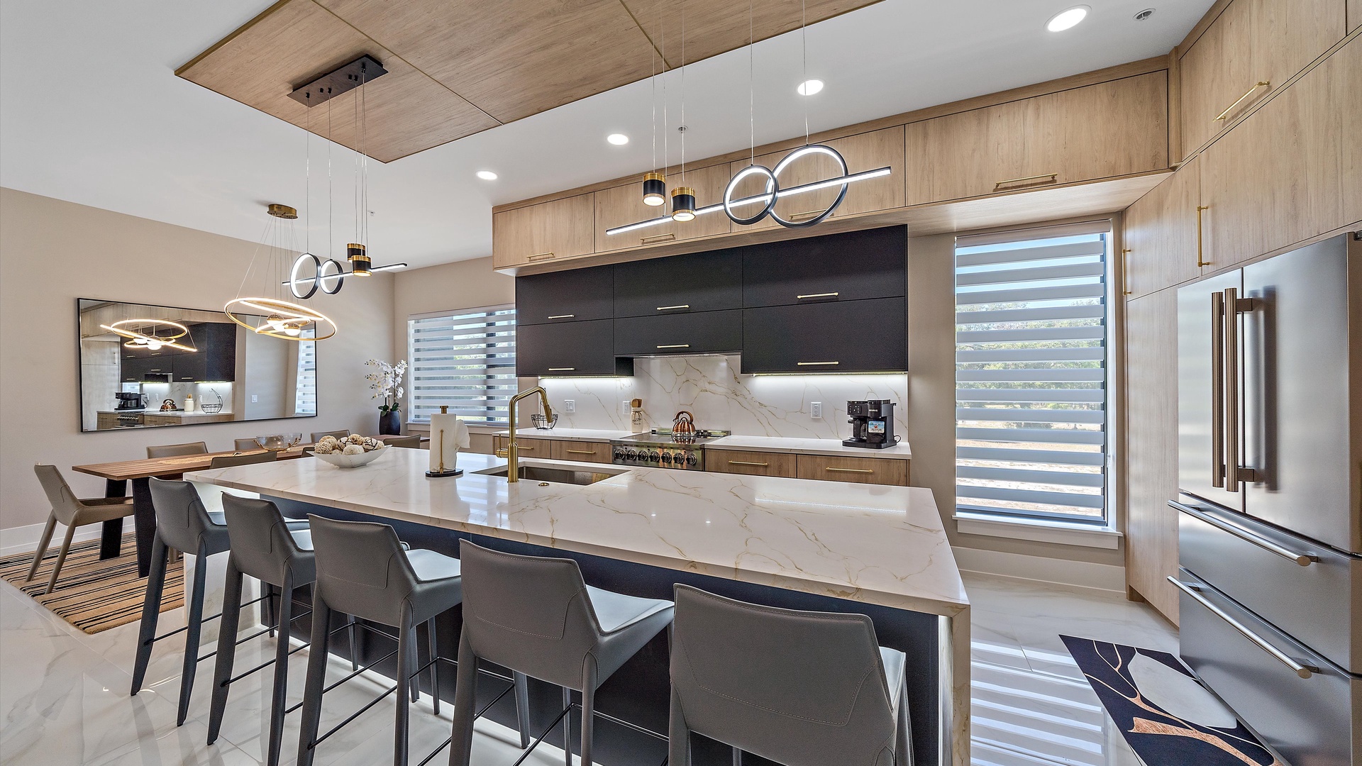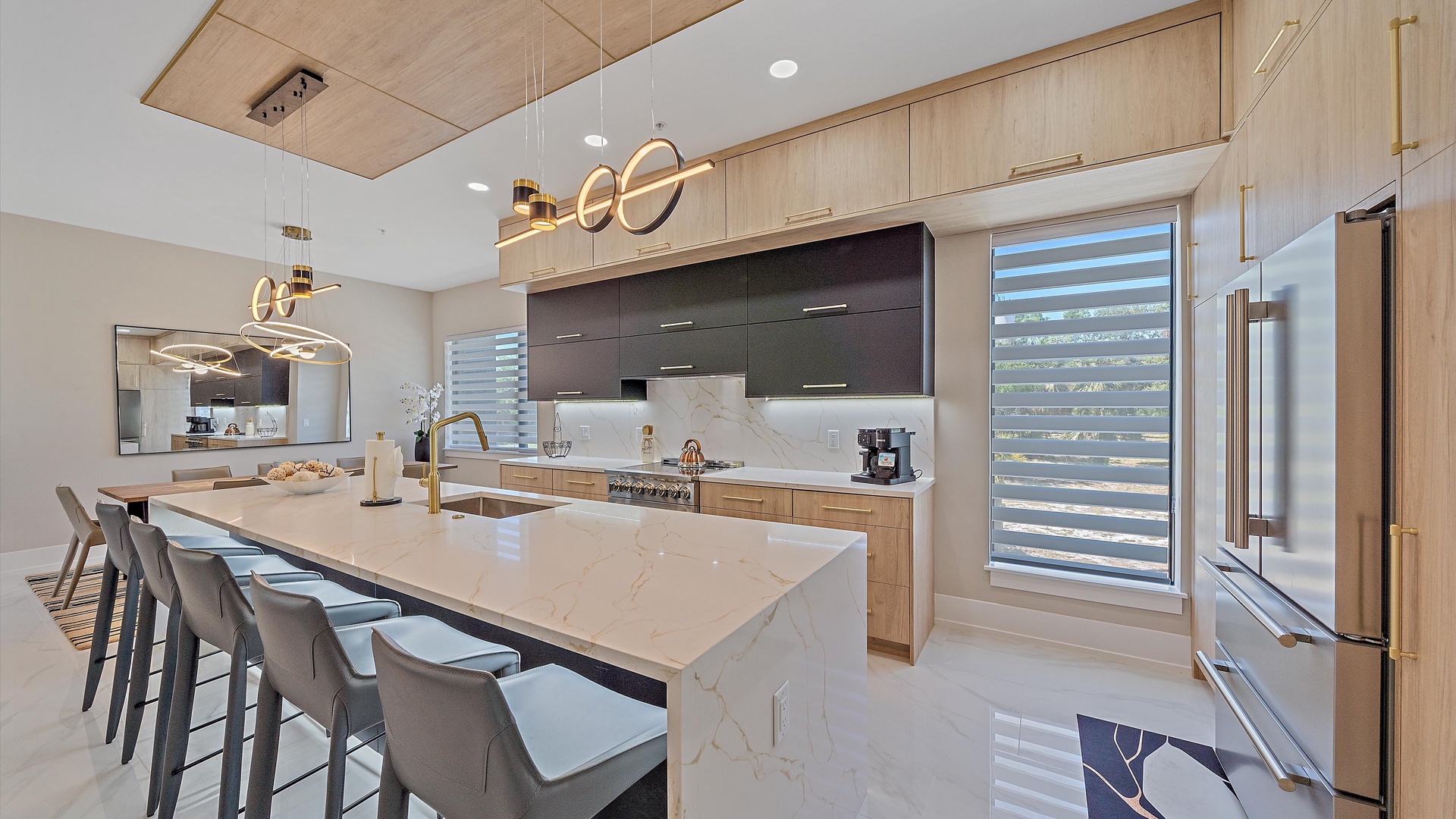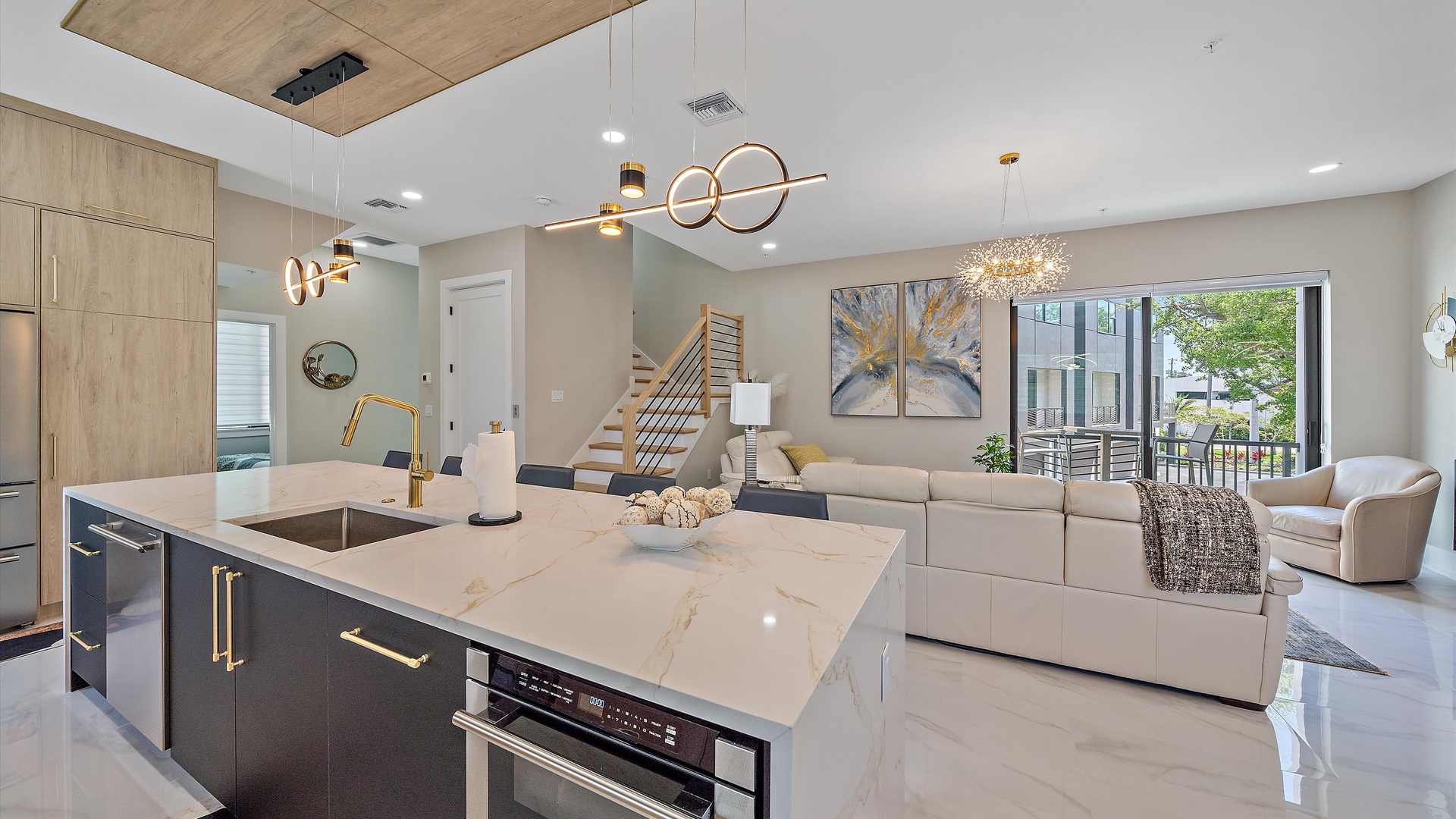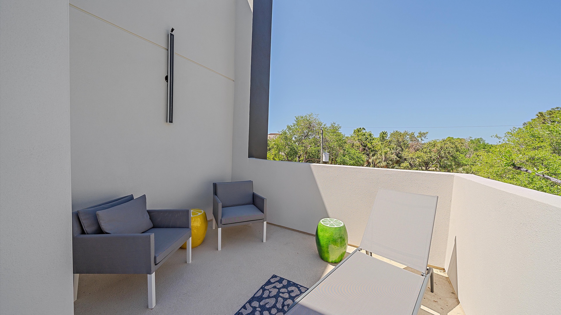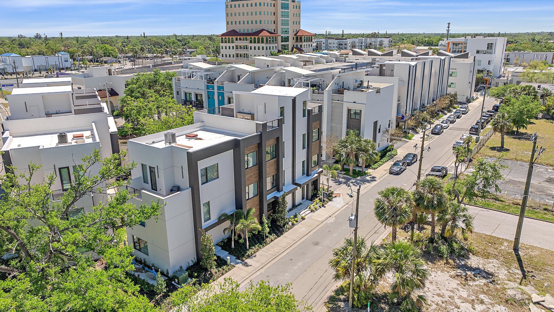 Uptown Oasis Uptown Oasis Relax and entertain in the open-concept living space, featuring a comfortable sectional, a sleek electric fireplace, and a Smart TV for a perfect movie night. Soak up the natural light in the living room, which opens directly to a private balcony for seamless indoor-outdoor living. Create memorable meals in the stunning gourmet kitchen, featuring a massive waterfall island and state-of-the-art appliances. Host family and friends at the elegant dining table, perfectly situated between the gourmet kitchen and cozy living room. Soak in the incredible aerial view of your stylish townhome complex, highlighting the convenient urban location and modern architecture. Open Gallery Relax and entertain in the open-concept living space, featuring a comfortable sectional, a sleek electric fireplace, and a Smart TV for a perfect movie night. Soak up the natural light in the living room, which opens directly to a private balcony for seamless indoor-outdoor living. Create memorable meals in the stunning gourmet kitchen, featuring a massive waterfall island and state-of-the-art appliances. Host family and friends at the elegant dining table, perfectly situated between the gourmet kitchen and cozy living room. Soak in the incredible aerial view of your stylish townhome complex, highlighting the convenient urban location and modern architecture. Sink into the comfortable queen bed in this elegant bedroom, featuring serene coastal decor and a private ensuite bathroom. Drift off to sleep in this tranquil bedroom, beautifully decorated with coastal accents and a comfy queen bed for a perfect night's rest. Step into the luxurious primary bedroom suite, featuring a king-sized bed, a stunning accent wall, and a Smart TV for late-night streaming. Step out onto your private balcony, complete with a high-top dining set and a gas grill for enjoying al fresco meals. Be greeted by a bright and welcoming entryway, with access to the living spaces and the convenient downstairs bedroom. Step into a beautifully styled entryway with a grand art piece, leading to the main living areas and a convenient staircase to the upper levels. An inviting bird's-eye view of the stunning open-concept living space, showcasing the seamless flow between the living room, dining area, and kitchen. An alternate view of the spacious open-concept floor plan, showcasing the seamless flow between the living room, dining area, and gourmet kitchen. Find a perfect blend of comfort and style in the living area, featuring a cozy fireplace, a large Smart TV, and direct access to the private balcony. Enjoy a quiet morning coffee or a sunset cocktail on the private balcony, offering a comfortable high-top table for two. From the top of the stairs, this view showcases the beautifully designed open-concept living, dining, and kitchen areas. Entertain with ease from the oversized kitchen island, which provides ample seating and a direct view into the spacious living area. Find inspiration in this chef-style kitchen, boasting sleek modern appliances, a large island with bar seating, and beautiful lighting. Host your dinner parties and family meals in this state-of-the-art kitchen, featuring a spacious island with bar seating and an adjacent dining area. Entertain in this beautifully designed kitchen, where a striking blend of modern and natural materials creates an inviting atmosphere for any gathering. Create delicious meals with ease on the sleek electric range, surrounded by a stunning white marble backsplash and modern cabinetry. Find every convenience in this fully-stocked kitchen, from the large island to the full-size refrigerator and coffee maker. Dine in style at the modern dining table, perfectly lit by a chic pendant fixture and large windows for a bright, inviting meal. Effortlessly move between floors with the convenience of a private elevator, located right next to the elegant staircase. Conveniently located on the main floor, this stylish half-bath features a modern vanity, elegant coastal art, and a lighted mirror. Keep your vacation wardrobe fresh with the convenience of a full-size washer and dryer right in the unit. Explore the light-filled upper hallway, which leads to the private bedroom suites and provides easy access to all levels of the home. Escape to the primary bedroom suite, a tranquil retreat with a king-sized bed, a stunning wood-paneled accent wall, and a private ensuite bathroom. Rest comfortably in the luxurious primary bedroom, complete with a large Smart TV, walk-in closet, and a private full bathroom for ultimate convenience. Settle in for the night in the master bedroom, which offers a king-sized bed, plenty of natural light, and a Smart TV for all your streaming needs. Stay productive in the dedicated office space, which includes a queen Murphy bed for a flexible sleeping arrangement and a desk for a comfortable workspace. Pack everything you need for your trip with ease, thanks to this spacious walk-in closet featuring built-in shelves and plenty of hanging space. Lounge in the Florida sun on your private rooftop terrace, perfect for soaking up the rays on the comfortable chaise lounge. Lounge and unwind on the private rooftop deck, a tranquil space with a chaise lounge chair for soaking up the Sarasota sun. Step onto the rooftop deck to enjoy comfortable outdoor seating, perfect for a quiet chat or reading a book under the Sarasota sun. Relax in the luxurious primary bathroom, featuring a stunning double vanity, a soaking tub, and a separate glass-enclosed shower. Unwind after a day at the beach in the luxurious master bathroom, featuring a glass-enclosed walk-in shower and a separate modern soaking tub. Step into this tranquil guest bedroom, decorated with soft coastal colors and a cozy queen bed for a restful night's sleep. Unwind in the inviting guest bedroom, which offers a spacious closet and a convenient private bathroom just steps away. Unwind in the beautifully appointed guest bathroom