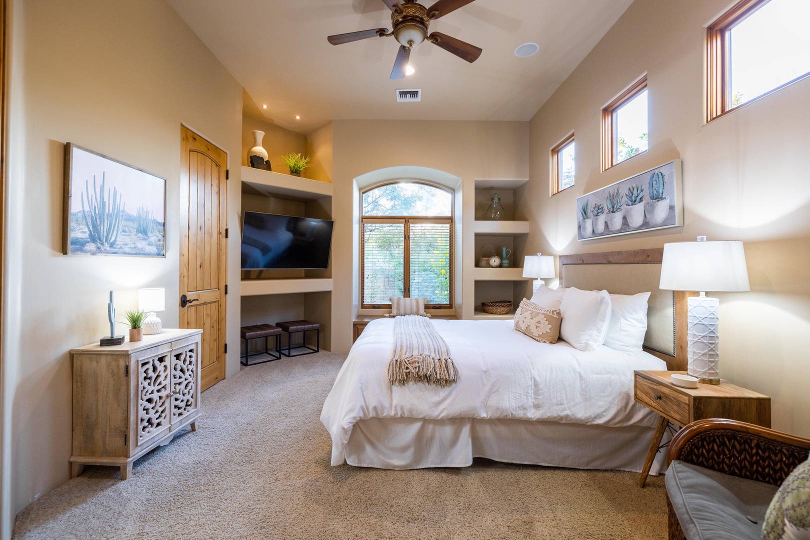 Our family of five stays in home rentals frequently, and while there are many places we love and enjoy, there are few places we find ourselves wanting to come back to again. This was one of those places - we absolutely loved the peacefulness, surrounding beauty, quiet area, beautiful sunrises, and the amenities of the home. We instantly fell in love with how comfortable we were, how everyone had their own space, and how the outdoor area was a place for our family to relax and rejuvenate. We did not use the separate attached casita area, but just the 3 bedrooms within the home. Everyone had comfortable beds, with plenty of blankets and pillows. We had groceries delivered through Instacart upon arrival since the town is about 15-20 min away. The home had everything (paper towels, sample sized shampoo/conditioner/wash, dishwasher tablets, garbage bags, etc.). Hiking in the area was beautiful, and we even drove to Sedona for a day. Great golf nearby as well. Loved our stay!