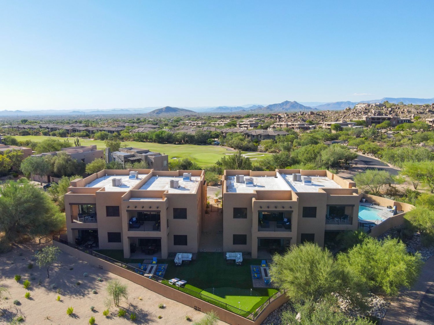 Villas 1 & 2: The Villas At Troon North Home Arizona Scottsdale Villas 1 & 2: The Villas At Troon North Villas 1 & 2: The Villas At Troon North Drone View 2 identical firepits in the backyard Shared pool and hot tub Open Gallery Drone View 2 identical firepits in the backyard Shared pool and hot tub Heated pool Hot Tub Practice your putting in the backyard Each Villa has a fully equipped kitchen Each Villa has a fully equipped kitchen Each Villa has a fully equipped kitchen Each Villa has a fully equipped kitchen Complimentary starter k-cups Each Villa has its own massage chair Each villa has a patio table and a BBQ Each villa has a patio table and a BBQ Each bedroom has a TV Each bedroom has a TV Lux Villas 2 and 3 have a poker table and a shuffleboard Villas 2 and 3 have a poker table and a shuffleboard Villas 2 and 3 have a poker table and a shuffleboard Villas 2 and 3 have a poker table and a shuffleboard Villas 1 and 4 have a pool table Villas 1 and 4 have a pool table Villas 1 and 4 have a pool table Villas 1 and 4 have a pool table No need to go downstairs. The upstairs has a counter with a full size fridge for your drinks 39No need to go downstairs. The upstairs has a counter with a full size fridge for your drinks Lux Each villa has its own washer and dryer All 4 villas pictured Each villa has a 2 car garage What else can I say about Arizona sunsets? Gallery View Scottsdale, AZ 6 Bedrooms 6 full, 2 half Baths 20 Guests 5000 sq. ft. Description Rooms Amenities Reviews Calendar Location The Villas at Troon North is a luxury enclave of four separate units, just 0.1 miles from Troon North Golf Club. Each villa features 3 bedrooms, 3.5 baths, a kitchen, living area, game room, patio, and comfortably sleeps 10 guests. This listing is for 2 adjacent Villas (1 and 2) accommodating up to 20 guests. Property may be shared with guests staying in other Villas. Ideal for golf groups or families staying and playing together, who still want the privacy of separate units. TPT License 21529620 Scottsdale License 2030083 2035536 Rooms Master Bedroom 1 1 King Master Bedroom 2 1 King Bedroom 3 2 Queen Bedroom 4 2 Queen Bedroom 5 2 Queen Bedroom 6 2 Queen Amenities Bedroom & Laundry Dryer - Community Washer - Private Bed Linens Essentials Hangers Iron & Ironing Board Towels Wardrobe or Closet Extra Pillows & Blankets Room Darkening Shades Entertainment Mini Golf TV Smart TV Books Game Console Game Room Games Pool Table Satellite or Cable Location & Attractions On the Golf Course Car - Recommended Mountain Family Themed Health Beauty Spa Laundromat Nearby Museums Romantic Themed Rural Theme Parks Town View - Golf Course View - Mountain Water Parks Zoo Outdoor BBQ Grill - Gas BBQ Grill - Private Fire Pit Outdoor Dining Sun Loungers Outdoor Seating & Furniture BBQ Grill Area Fenced Yard Garden or Backyard Patio or Balcony Veranda Parking & Facilities Garage Parking - Free Parking - On Site Free Parking - Private Bathroom Conditioner Hair Dryer Hot Water Shampoo Shower Gel Cleanliness & Safety Carbon Monoxide Detector Common Surfaces Disinfected Fire Extinguisher First Aid Kit Self Check-In & Check-Out Smoke Detector Disinfectant Used While Cleaning Outdoor Lighting Family High Chair Pack & Play Travel Crib Crib Internet & Office Wifi Wifi - Free Wifi - Speed 500mbps Desk Desk Chair Ethernet Connection Laptop Friendly Workspace Kitchen & Dining Blender Coffee Coffee Maker Cooking Basics Dishes & Silverware Dishwasher Freezer Ice Maker Kitchen Microwave Oven Refrigerator Stove Toaster Wine Glasses Dining Area or Room Dining table BBQ Grill Utensils Baking Sheet Kitchen Island Other Property Amenities Air Conditioning Ceiling Fan Heating Living Room Pets - Not Allowed NoiseAware Fireplace - Gas Fireplace - Wood or Wood Stove Private Entrance Sports, Leisure & Adventure Gambling Golf Hiking Horseback Riding Mountain Climbing Outlet Shopping Shopping Swimming Water Tubing Antiquing Cycling Mountain Biking Mountaineering Rock Climbing Pool & Spa Pool - Heated Hot Tub Hot Tub - Community Pool Pool - Community Pool - Fenced Accessibility Path to Entrance Lit at Night Other Building, Complex Or Neighborhood Amenities Hospital Services Events or Weddings Allowed Long Term Stays Allowed See All Amenities + Reviews Write A Review Thank you for submitting your review. It will be processed shortly! We value your privacy. Your email address will not be shared publicly. SUBMIT We are sorry, there are no reviews for this unit. Be the first to leave a review! Availability Select your travel dates to view a detailed quote. Location Choose dates to calculate quote Check-in: Check-out: Number of Guests Adults: 1 Adults 2 Adults 3 Adults 4 Adults 5 Adults 6 Adults 7 Adults 8 Adults 9 Adults 10 Adults 11 Adults 12 Adults 13 Adults 14 Adults 15 Adults 16 Adults 17 Adults 18 Adults 19 Adults 20 Adults Children: 0 Children 1 Children 2 Children 3 Children 4 Children 5 Children 6 Children 7 Children 8 Children 9 Children 10 Children 11 Children 12 Children 13 Children 14 Children 15 Children 16 Children 17 Children 18 Children 19 Children 20 Children Okay Share Your Name: Your Email: Recipients Email: Enter one or more recipient email addresses separated by comma Message: Add to Favorites Favorites Print Inquire Inquiry Form - Property Details Page Inquiry form for property pages. FullName(Required) First Last Email(Required) Phone(Required)Arrival(Required) MM slash DD slash YYYY Departure(Required) MM slash DD slash YYYY Comment Δ Inquire XClose Villas 1 & 2: The Villas At Troon North schedule-calendar Check Availability