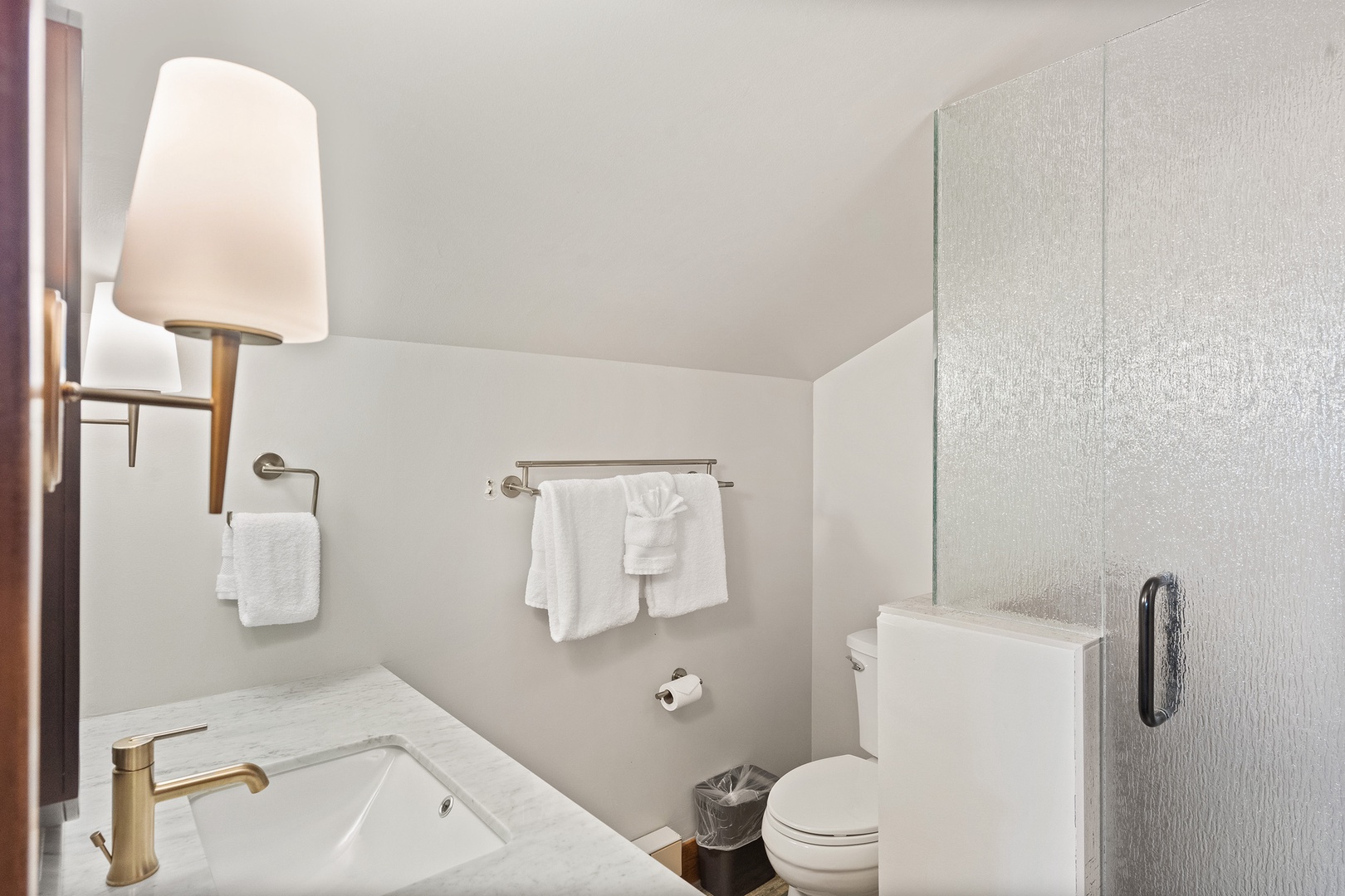 Welcome to Winterset 1! This beautifully remodeled condo has 4 bedrooms and 3.5 bathrooms that span across 3 levels. This spacious unit sleeps up to 10 people, giving everyone plenty of room to spread out. Upon entering, guests will immediately appreciate the striking open layout connecting the kitchen, dining room, and living room. The beautifully appointed kitchen has stainless steel appliances as well as all of the pots, pans and utensils you need to cook for the family. The dining room table will fit 8 with additional seating for 3 at the kitchen island. The living room is large and welcoming; you will want to escape here and relax after a busy day in Steamboat Springs. This room has plush furniture, a gas fireplace, and a large smart TV. There is also a convenient half bathroom located on this level. As you head up the stairs you will find all of the bedrooms. The primary bedroom is equipped with a king bed, TV, connected patio and ensuite bathroom. Down the hallway are the second & third bedrooms that are attached with a Jack and Jill bathroom. Each bedroom has a king bed, plenty of closet space, and its own sink/vanity area. Back in the hallway, you will find a ladder that will take you up to the loft bedroom. This room can sleep 4 with 2 sets of double-over-double bunk beds. This room also has its own attached ensuite bathroom.