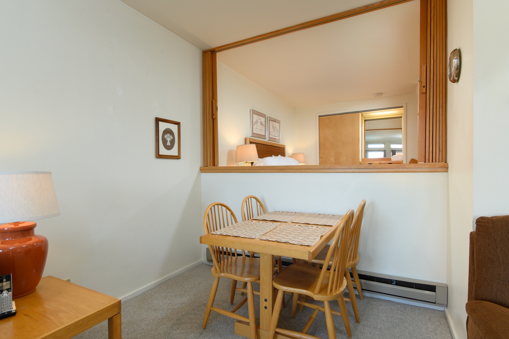 The condo features a convenient walk-through galley kitchen with all the basics for quick meals or morning coffee. The bright living area opens to a private balcony, where you’ll enjoy natural light and a cozy spot to relax after a day on the mountain.