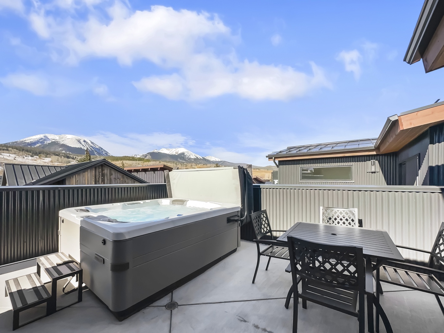541 Center Circle 3Br 3.5Ba Back to Search Results 541 Center Circle 3Br 3.5Ba Modern living room featuring a white sofa, two armchairs, a wooden coffee table, wall art, ceiling fan, and open view of the kitchen and dining area. Private hot tub on the rooftop offers beautiful mountain views. Beautiful modern townhome with great mountain views. Modern kitchen with stainless steel appliances, dark wood cabinets, and a large island with black stools. Pendant lights hang above the island, and the kitchen opens to a living area with large windows. Open Gallery Modern living room featuring a white sofa, two armchairs, a wooden coffee table, wall art, ceiling fan, and open view of the kitchen and dining area. Private hot tub on the rooftop offers beautiful mountain views. Beautiful modern townhome with great mountain views. Modern kitchen with stainless steel appliances, dark wood cabinets, and a large island with black stools. Pendant lights hang above the island, and the kitchen opens to a living area with large windows. Beautiful modern townhome A modern living room with a white sofa, two brown armchairs, a wooden coffee table, a large ceiling fan, and framed art on the walls. Large windows offer a views of outside. Modern living room with stone fireplace, wall-mounted TV, ceiling fan, and glass doors leading to a balcony with scenic views. Beige sofa with blankets and two brown armchairs surround a wooden table. Living room with a white sofa, two pillows, a beige armchair, a wooden coffee table with a golden tray and a notebook, and large windows facing an outdoor deck with trees and mountains visible. A modern living room with a stone accent wall featuring a mounted TV and fireplace. There are brown leather chairs, a wooden coffee table, and a kitchen with an island visible in the background. A modern living room featuring a stone fireplace, mounted TV, snowshoes on the wall, a drink cart, leather chairs, and large windows offering a view of trees. A white sofa against a white wall with two framed landscape photos above it, and two animal-themed pillows. Skis are propped near a large window on the left, overlooking an outdoor area with mountains. Outdoor balcony with a small round table and two chairs overlooking a quiet street and landscape with trees and distant buildings. Sunny day with a few clouds in the blue sky. A balcony with a small table and two chairs overlooks a suburban street with parked cars and mountains in the background. Pine trees are scattered around the area, and the sky is clear with few clouds. A modern dining room features a wooden table with six white chairs, a chandelier overhead, and three framed celestial-themed artworks on the white wall. A beige couch is visible in the adjacent room. A modern dining room with a wooden table, six white chairs, a chandelier, and three celestial-themed art pieces on the wall. A sliding barn door is partially visible in the background. Modern open-concept kitchen and dining area featuring dark cabinetry, stainless steel appliances, an island with barstools, a wooden dining table, and contemporary light fixtures. A modern kitchen with dark wood cabinets, white countertops, and an island with bar stools, adjacent to a dining area with a wooden table, white and black chairs, and a green patterned rug. Modern kitchen with a large island, black barstools, stainless steel appliances, and wooden cabinets. Three pendant lights hang above the island. Decor includes wall art and a small bar cart. Modern kitchen with stainless steel appliances, including a double-door refrigerator and a gas stove with range hood. Dark wood cabinets and white countertops are also visible. A modern kitchen with dark wood cabinets, white countertops, a central island with a sink, stainless steel appliances, pendant lighting, and a sliding barn door. Modern kitchen with white countertops, a central island with dark cabinets, stainless steel appliances, pendant lighting, and a barn door leading to another room. Artwork and decorative lighting visible. Modern open-concept kitchen and living area featuring a central island, contemporary furnishings, pendant lighting, a large window with a view, and framed artwork on the walls. Modern kitchen with stainless steel refrigerator, stove, and hood, brown cabinets, white countertops, and sink island. Living area with fireplace and large windows visible in the background. A modern kitchen with dark wooden cabinets, stainless steel appliances, a gas stove, a fridge, and a white countertop. A coffee maker sits on the counter, and framed artwork decorates the walls. A minimalist entryway features a dark wooden door, a black metal coat rack with a cushion, and three woven storage baskets, alongside a framed picture on a white wall. A small bathroom features a double-sink vanity, wall art, a rug, and a window. A pair of skis and a Colorado license plate decoration hang on the adjacent wall in the hallway. A modern bathroom with a white countertop, large mirror, gray cabinetry, framed art, a window, and towel racks. Modern bathroom with a glass-door shower featuring white subway tiles and a pebble floor, a white toilet, and a black wall shelf holding toiletries and books. An old Colorado license plate from 1958 mounted on wood and a pair of vintage skis hung on a white wall. A modern bedroom with a large bed, two round ottomans, side tables with lamps, a ceiling fan, a chair, and large windows overlooking a green landscape. A modern bedroom with a large bed, decorative pillows, a wooden headboard, and two bedside lamps. The room has two large windows with a view of trees and hills. A ceiling fan is visible above the bed. A modern bedroom with a large bed, decorative pillows, an overhead ceiling fan, a wall-mounted TV, a brown chair, and a window with a view of trees and mountains. A bedroom with a bed, two bedside tables with lamps, and a view of a bathroom through a sliding door. The room has white walls, a ceiling fan, and a g