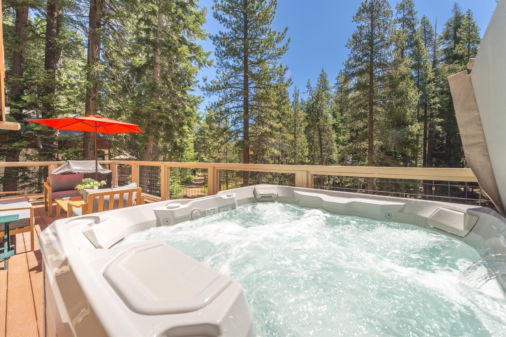 Step outside to the expansive deck, where you'll find comfortable seating arrangements perfect for soaking up the sun or engaging in outdoor conversations. Fire up the Weber Barbecue for a delicious grilled feast, or unwind in the brand-new hot tub as you take in the tranquil views of the towering pines and forest beyond. Right off the deck, you’ll be just steps away from trails that lead you to the stunning Tahoe Rim Trail or down to the shores of Lake Tahoe, providing endless opportunities for hiking, biking, and exploration for the adventure seekers in your group. We’re also proud to be pet-friendly, so feel free to bring your furry friends along for the adventure!