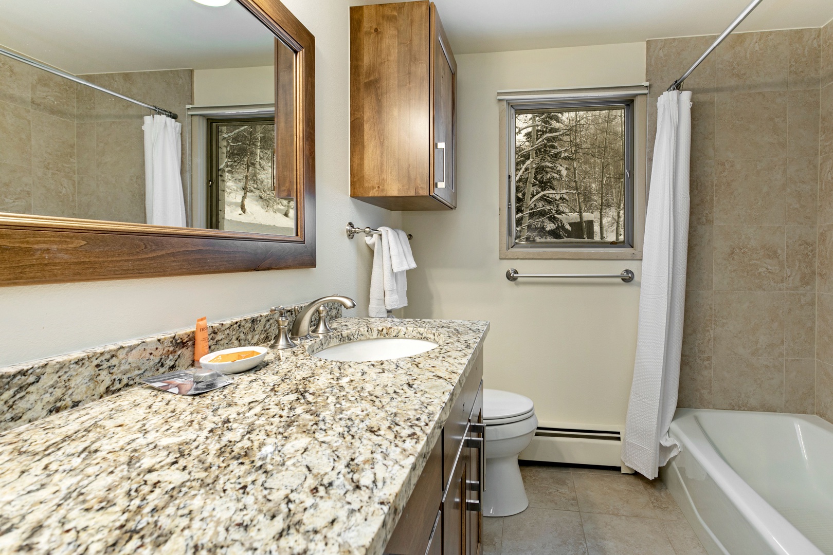With windows all around this floor, you will be able to capture the beautiful scenery and falling snow from every direction. The open, newly remodeled kitchen is connected to the dining area and adds a very welcoming touch to this entry level. The kitchen is fully stocked to accommodate all your cooking needs!